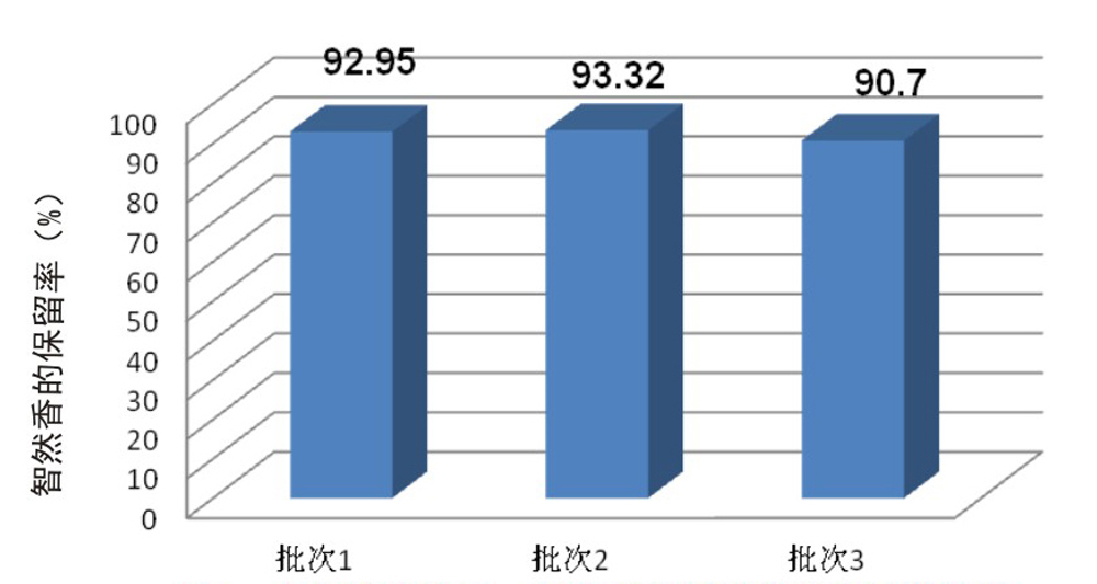 表1 “智然香”在自然条件下的储存不同时间段的保留率(%)(广州·花都,白天30℃)