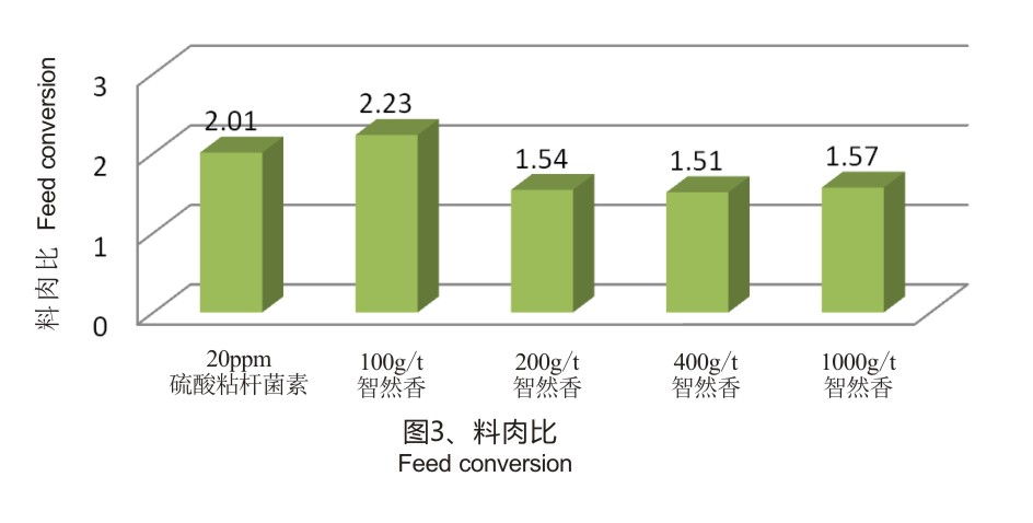 200 g/t智然香可有效替代仔猪日粮中20 ppm硫酸粘杆菌素,并改善仔猪的生产性能;智然香剂量与仔猪生产性能呈正相关,较高剂量智然香(≥400g/t)具有更强的抑菌、抗菌作用。