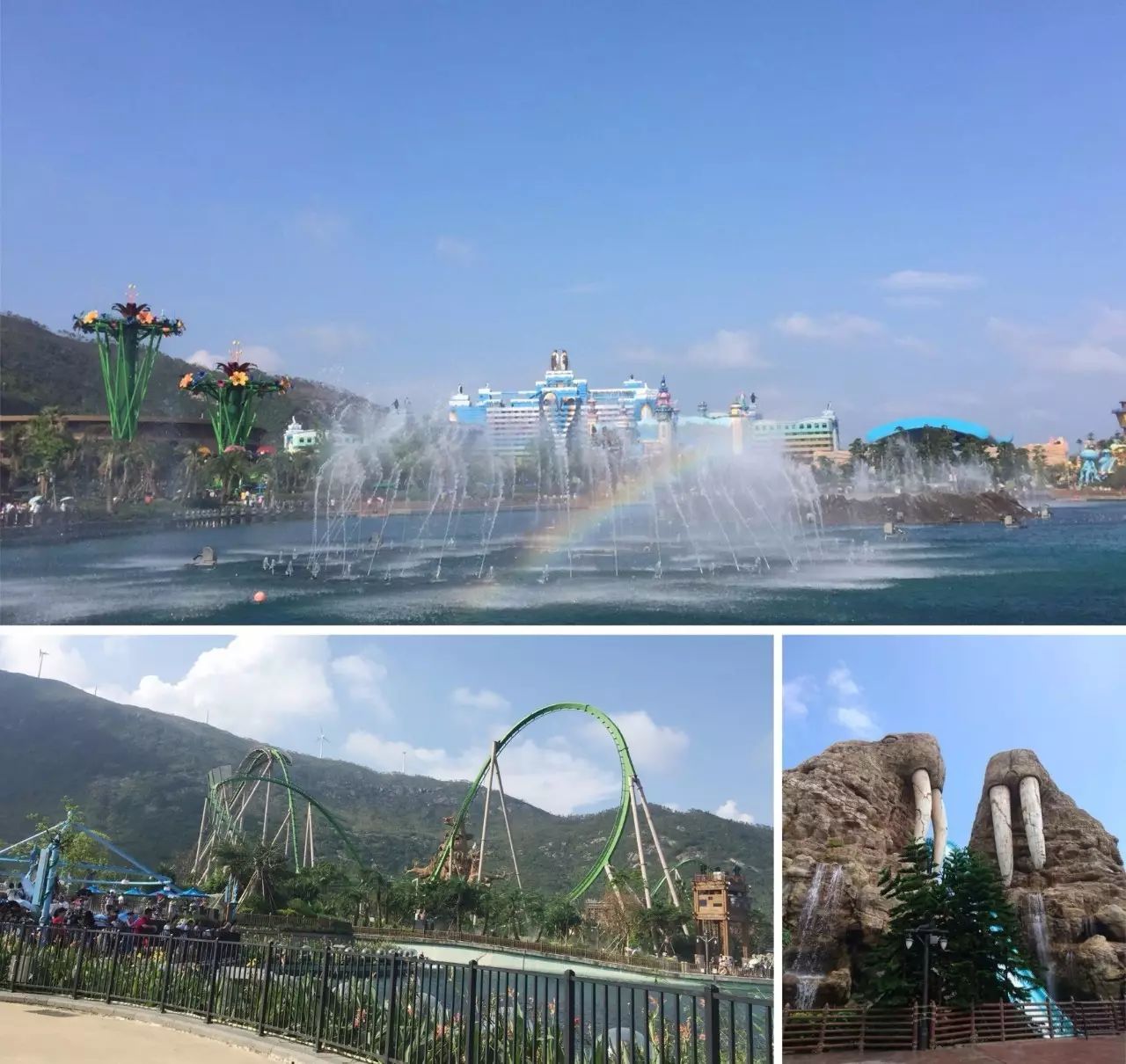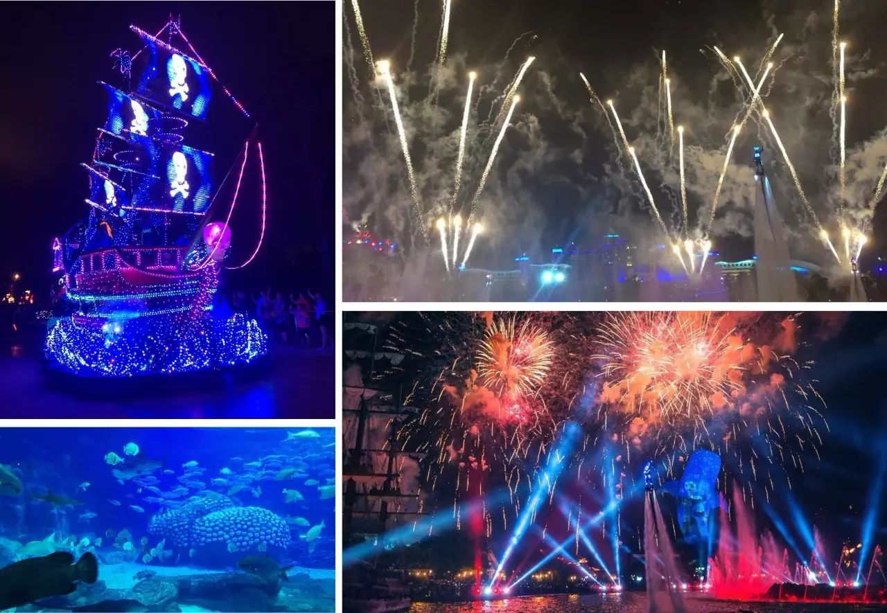 我们在园区正门的广场雕像前合影留念后,整队有序通过检票区,入园之后便三五成群自由游览。大家在事先组建好的微信群里互相分享着园区景观、表演时间提醒等信息,园内的5D影院、海豚剧场、海狮表演、白鲸表演,海洋大巡游、水上飞人等各种表演一个不漏。一些胆子比较大的同事还在过山车、升降塔、转转车等刺激机动项目上玩得不亦乐乎,个别同事光过山车一项就玩了三次,简直是贪玩到没朋友。园区压轴项目是在晚上8点进行的《海洋保卫战》,各式灯光、烟花及闪烁着彩灯的无人机随着背景音乐的节凑轮番上阵、交相辉映,震撼、绚丽、科技感十足。