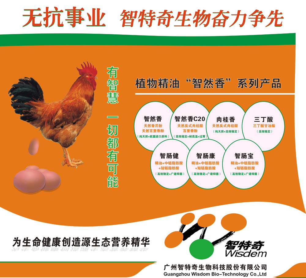 广州智特奇生物科技股份有限公司(以下简称智特奇生物)成立于1998年10月,是一家专业从事生物工程技术研究、天然产物提取与深加工开发的高新技术企业。公司以“有智慧,一切都有可能的”创业精神,先后自主研究开发出中国第一个饲用黄色素产品—金黄素、中国第一个饲用红色素产品—智特红,打破了国外产品在国内饲用色素市场20多年来的垄断。近来,由智特奇生物推出的新产品—“智然香”系列,对猪的促生长和腹泻控制明显,对肉鸡的成活率、增重和料肉比都有明显的改善,并且创造了月销量50%增长的奇迹。
