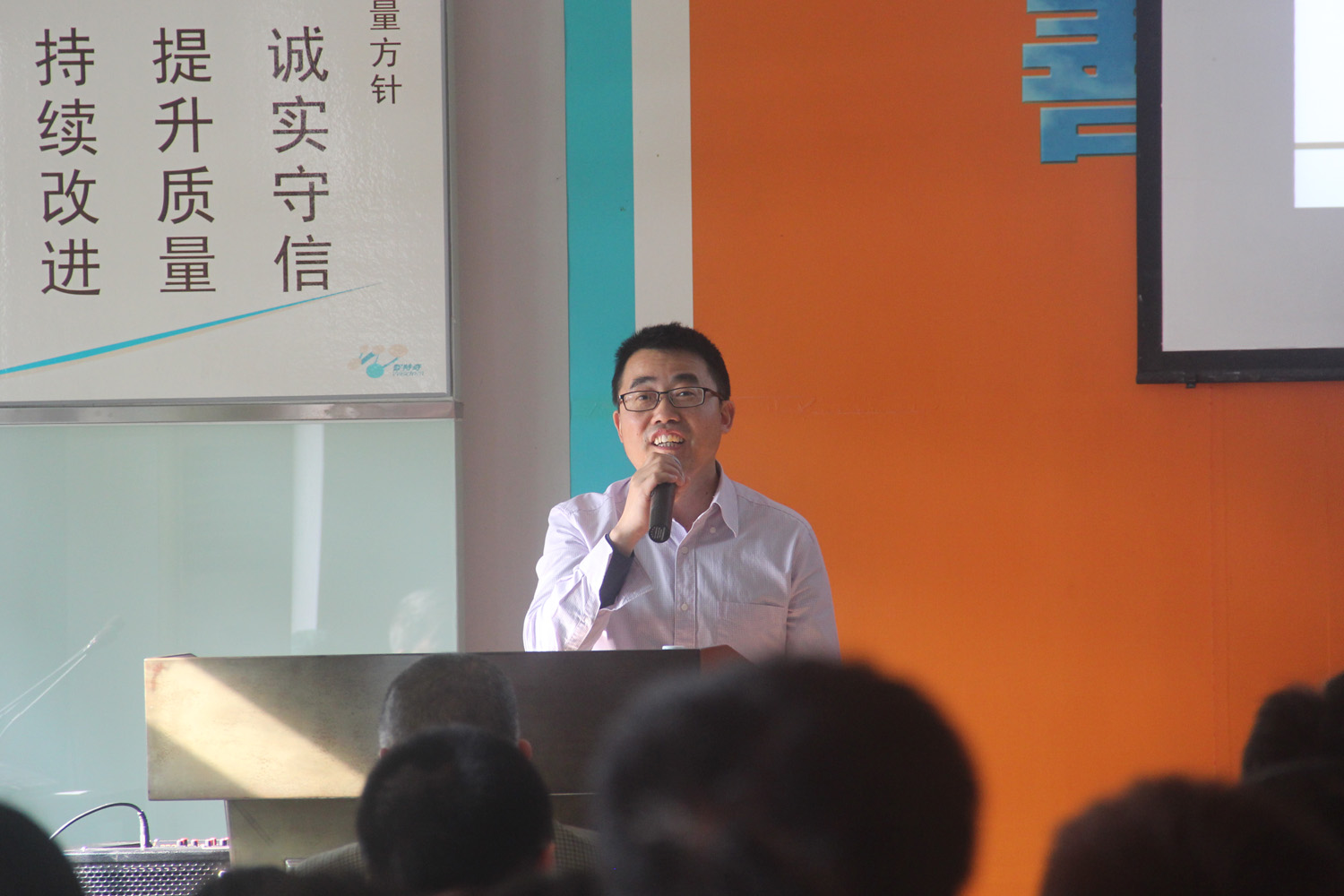 在总结会上,拓展部江经理作了《2017年度公司后勤工作情况总结》,市场总监王银东博士作了《2017年度公司销售工作完成情况总结》,叶家平副总经理作了《关于2017年度ISO9001及FAMI-QS质量安全体系执行情况总结》。最后,吴世林总经理作了《2017年公司生产经营总结及2018年工作部署》,吴总提到,2017年的我们基本实现了稳中求进的年度总基调,各项工作井然有序开展。对于2018年的工作,吴总作了详尽的部署。他提出:
