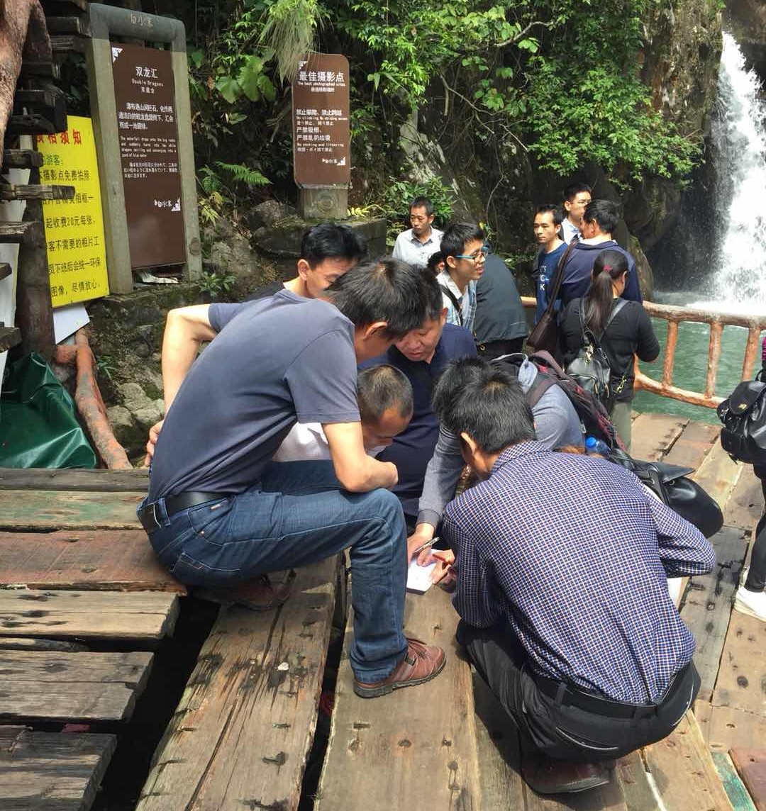 上午8点,办公室和工厂全体人员乘坐专车出发白水寨景区,路上我们清晰讲述本次活动的闯关规则及奖励设置,到达目的地后我们按照原先安排分成了9个闯关小组,闯关小组间相互竞争。