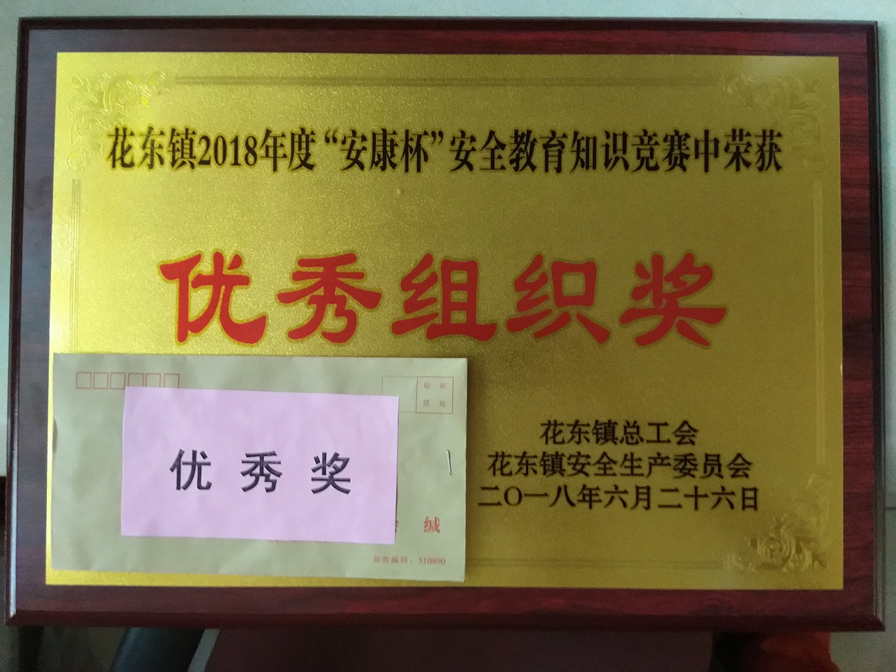 6月26日下午,公司安环工程部员工代表公司参加花东镇2018年度“安康杯”安全教育知识竞赛,荣获优秀组织奖。