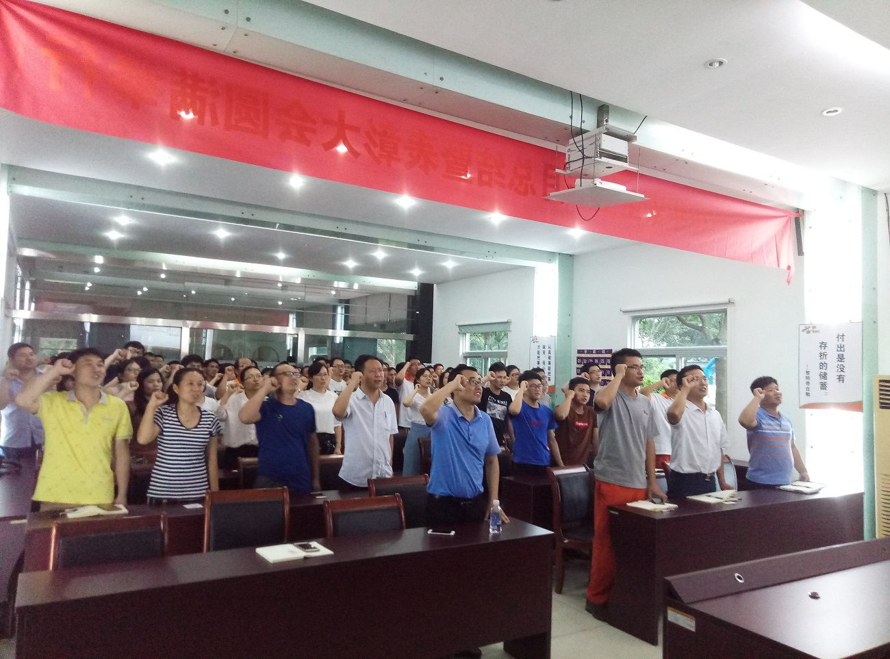 为了切实让每一位员工都将安全环保观牢记于心,生产副总叶家平还带领大家集体朗读公司安全环保观,并进行了安全宣誓。