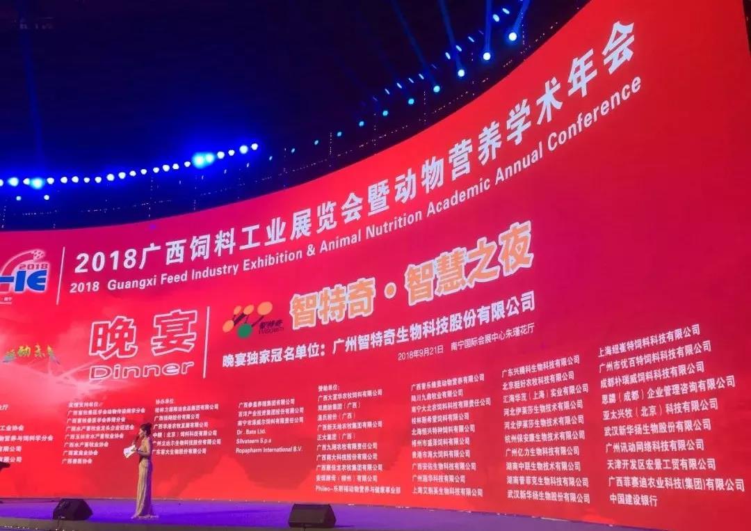 作为本次广西饲料工业展览会暨广西动物营养学术年会的晚宴独家冠名赞助单位,很荣幸在此行业盛会上宴请各位同行,智特奇生物衷心感谢这么多年来一直关心支持我们的行业同仁。 智特奇人将继续努力拼博,为我国无抗事业发展再立新功!为提高人民对食品安全的满意度贡献力量!