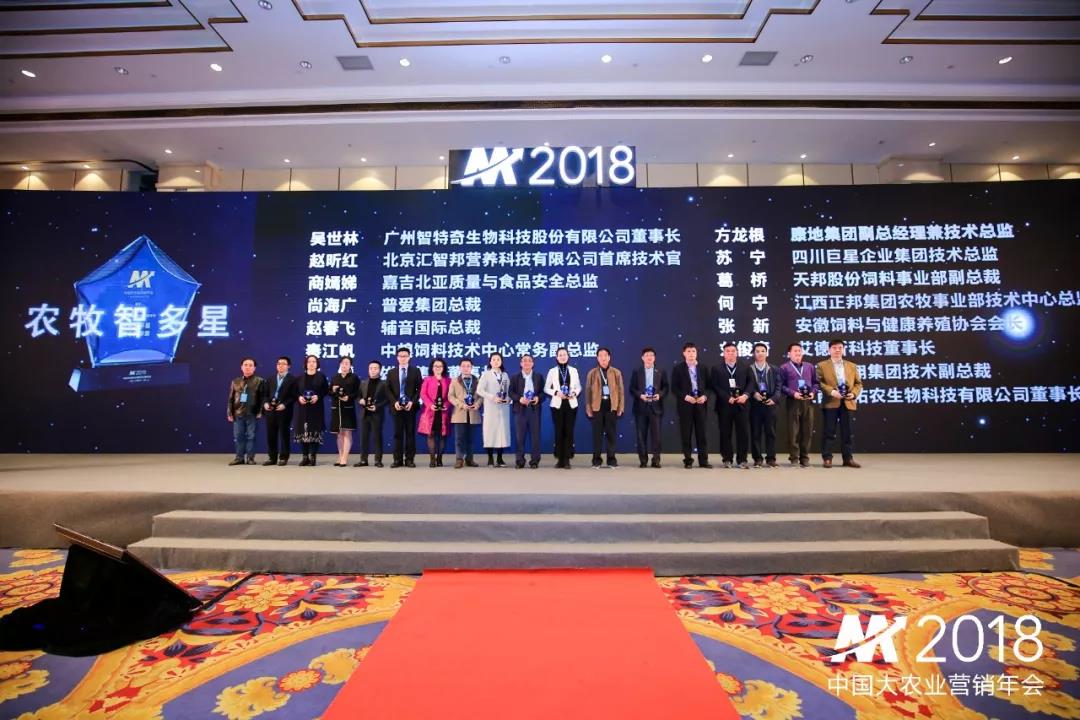 2018年11月23日20点,上海富悦大酒店,2018中国大农业营销年会之“农牧智多星嘉年华三十六华章”颁奖盛典隆重举行。