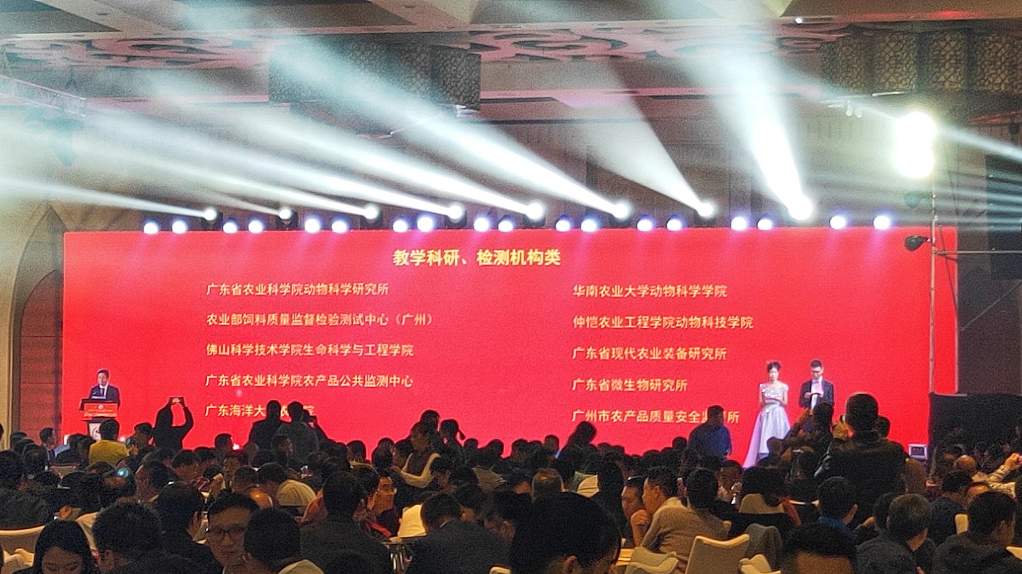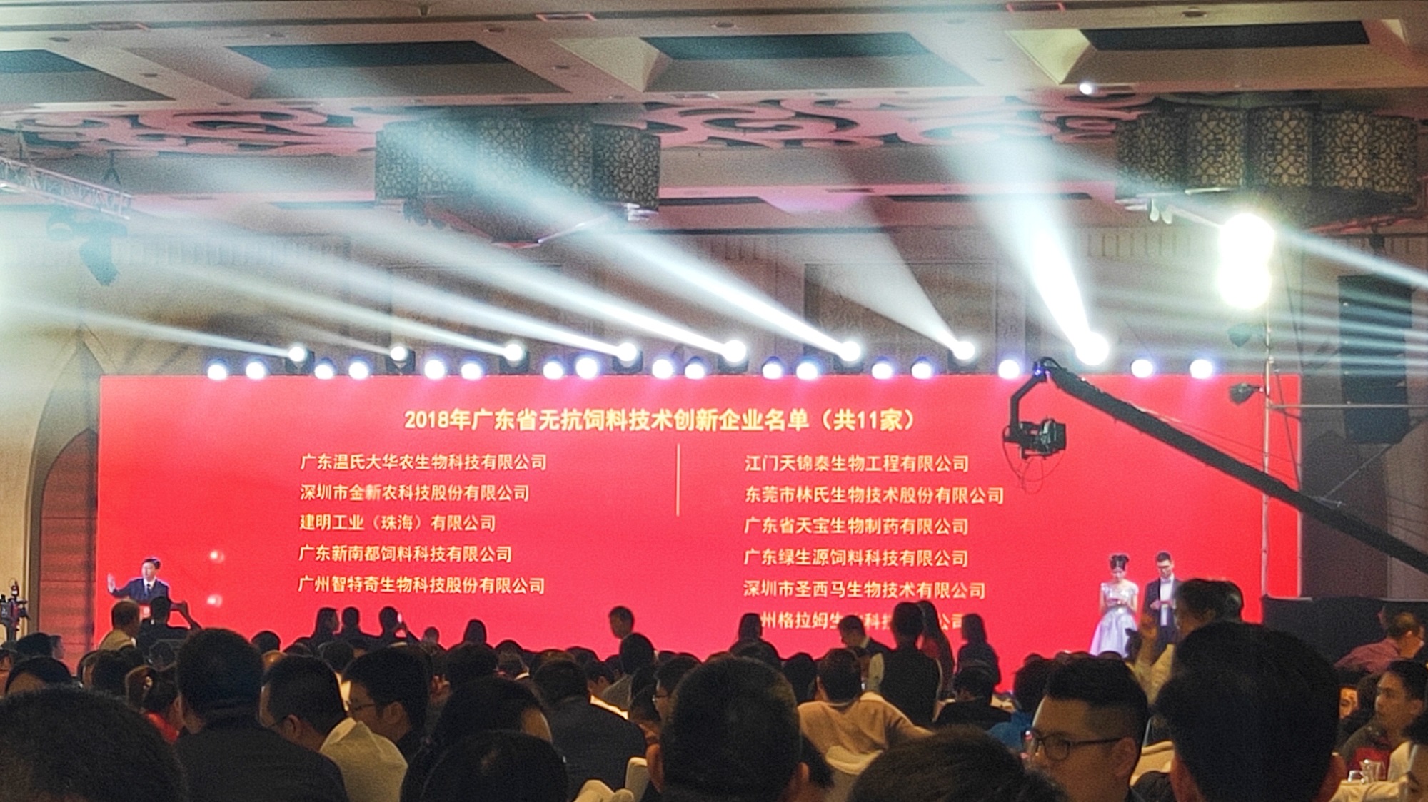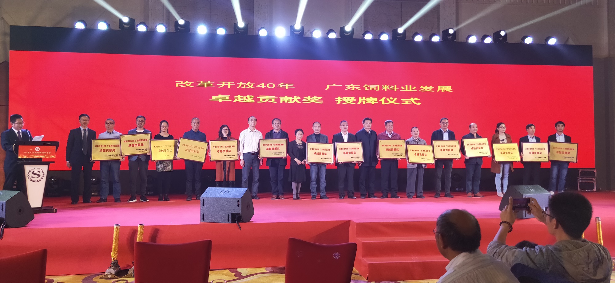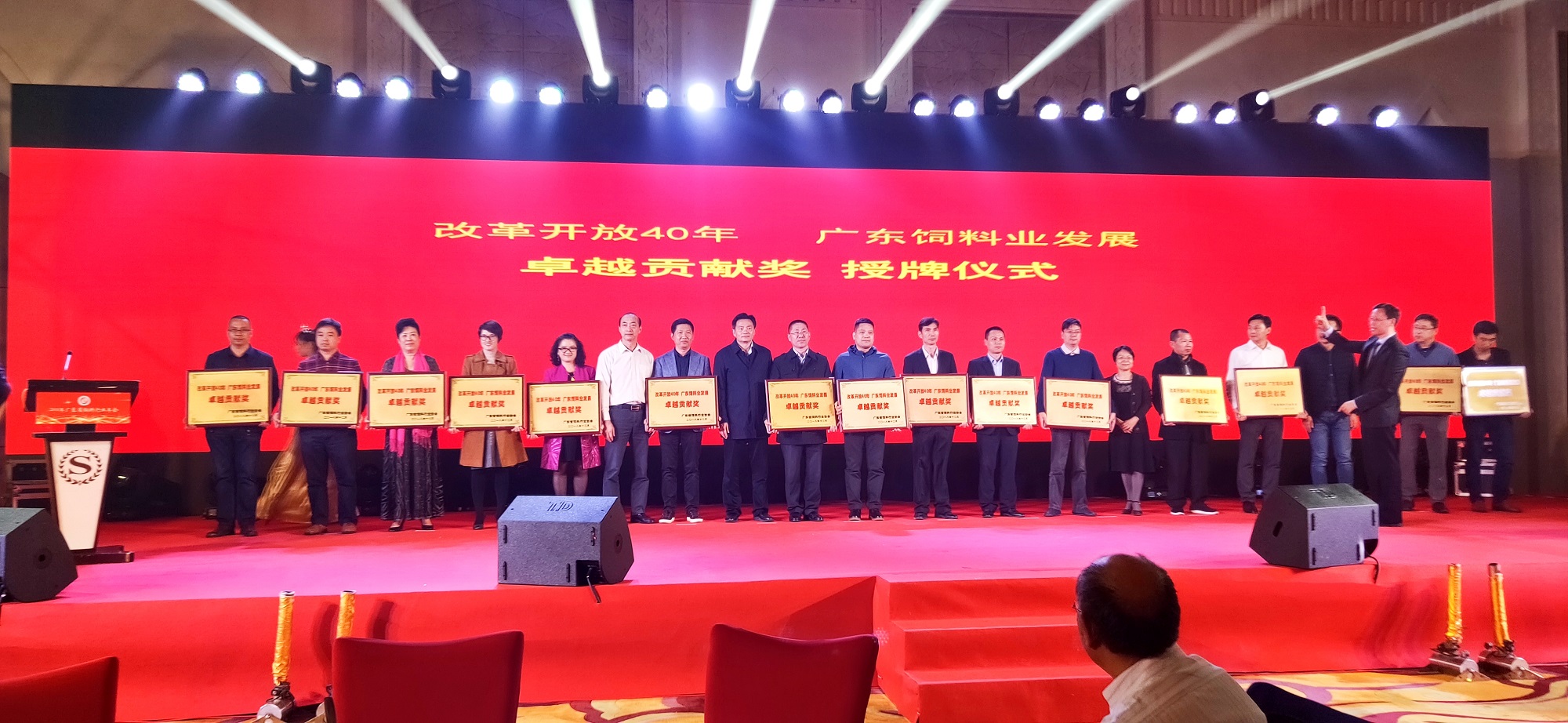 年会会期一天,主要内容有行业论坛、无抗饲料及环保技术产品展示、年会晚会等几个主要板块。年会晚会上特设了《无抗技术示范企业》授牌仪式、《改革开放40年 广东饲料业发展——卓越贡献奖》授牌仪式等奖项颁发仪式,表彰一批作出卓越贡献的企事业单位,智特奇生物荣获此两大殊荣!