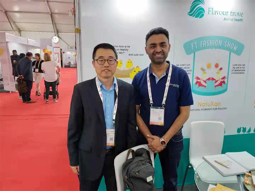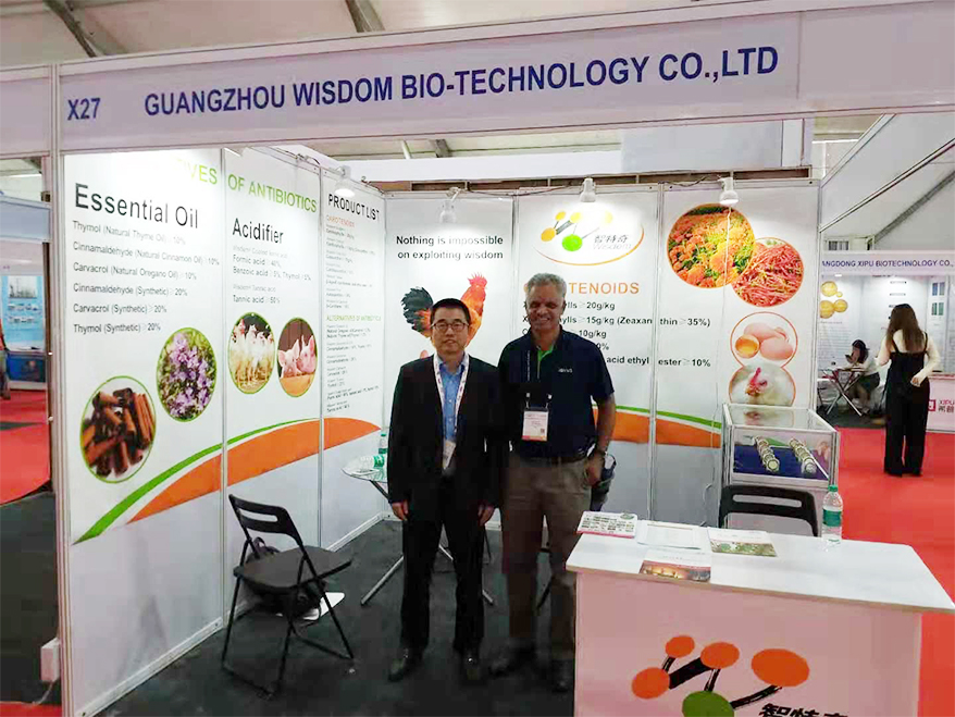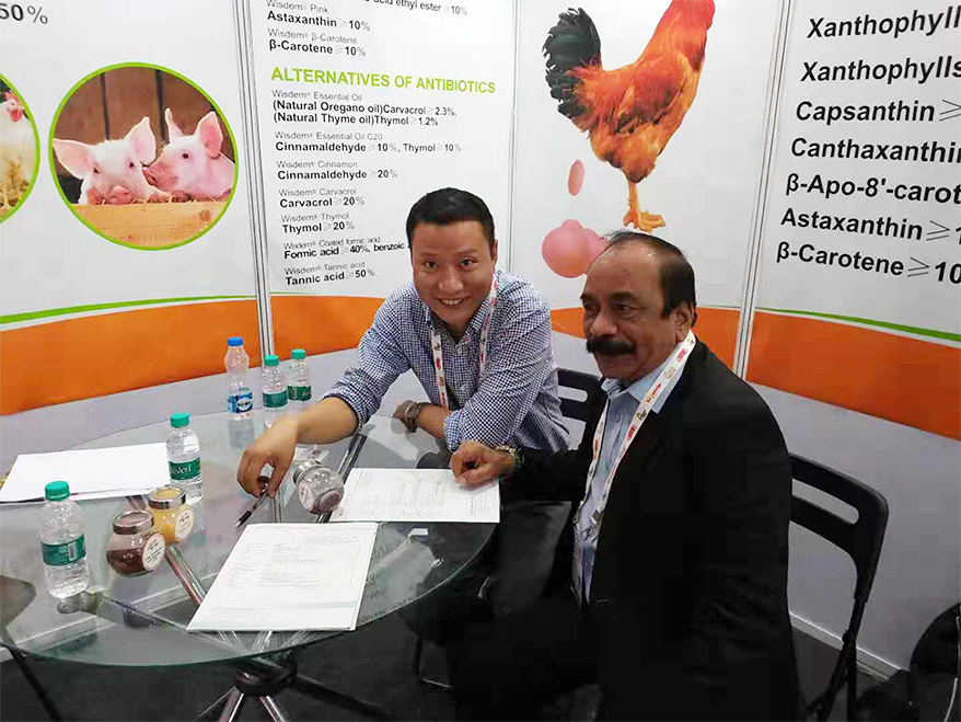 此次展会,我司主要结合印度目前的畜牧业现状,重点宣传介绍了我司的类胡萝卜素系列产品——“金黄素”、“智特红”,生理调节剂系列产品——天然生物乳化剂“智富能”及抗生素替代品系列产品——微胶囊包膜缓释植物精油“智然香”系列和酸化剂“智长健”系列。