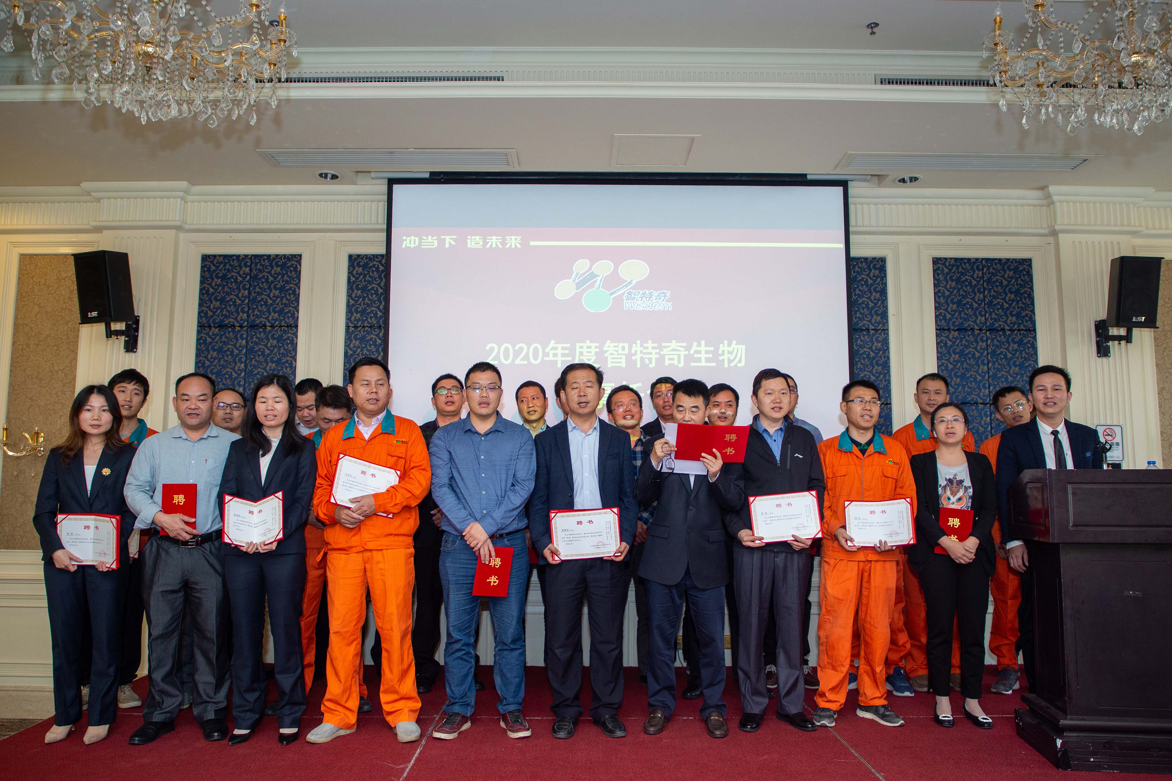 人事任命环节,年会主持人罗浩宣读了2020年度智特奇生物管理层人事任命书,被聘任人上台领取聘任书并作入职宣誓。