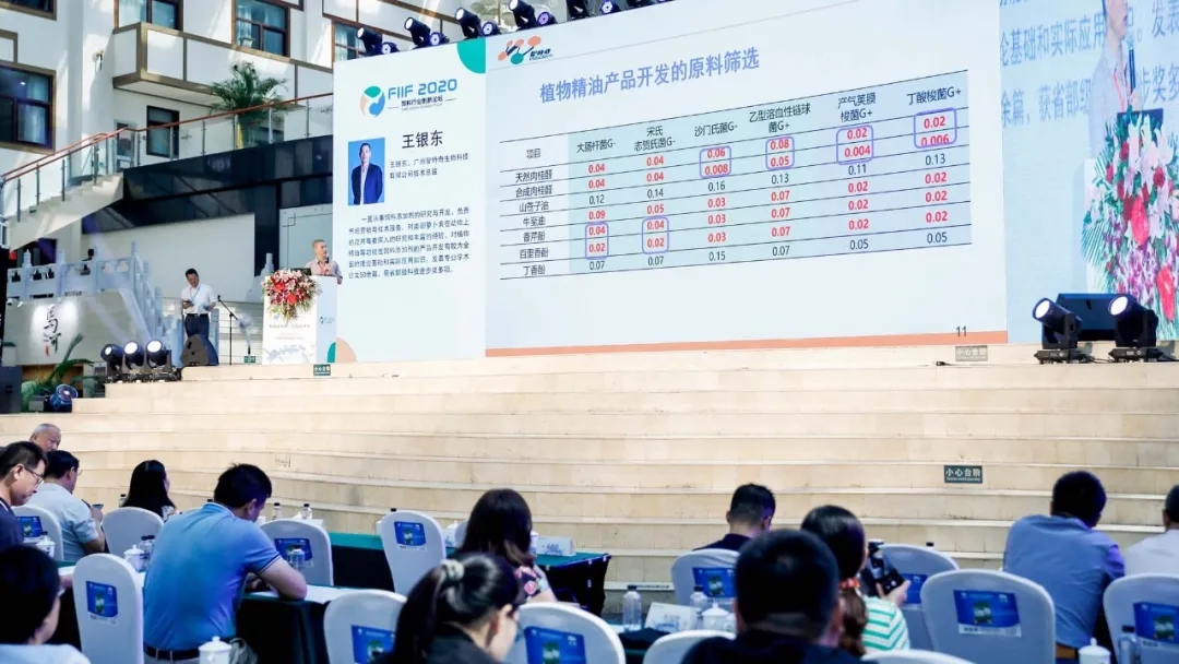 报告中,王银东博士主要从以下四个方面分享:植物精油的作用机理;智特奇生物植物精油产品的开发设计;精油产品质量的鉴别;无抗日粮中植物精油推荐使用方案。