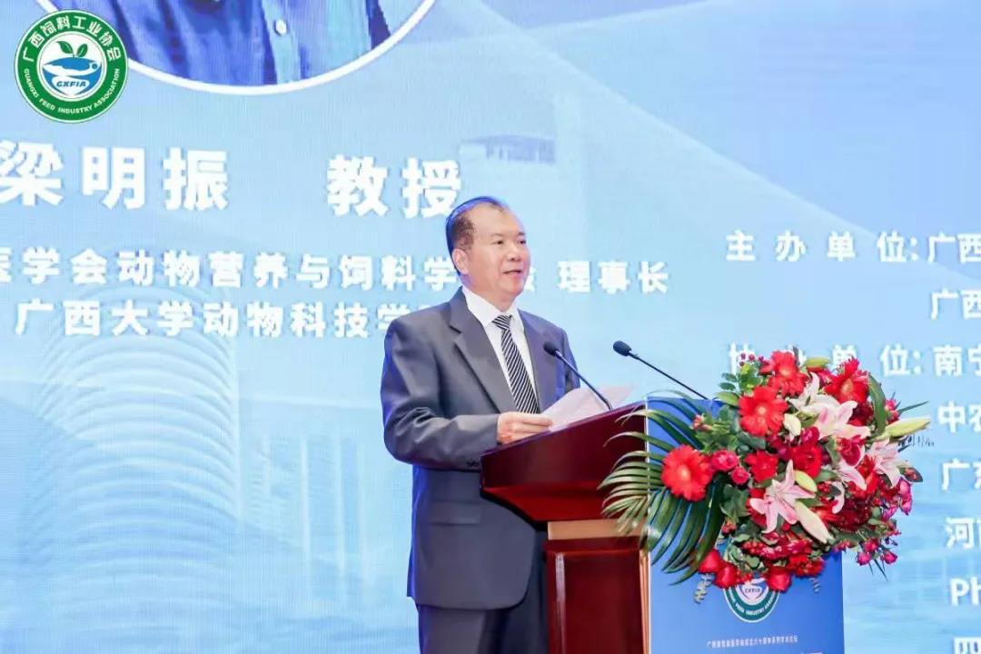 广西畜牧兽医学会动物营养与饲料学分会理事长、广西大学动物科技学院梁明振教授致欢迎辞并担任下午会议的主持人之一。在致辞中,梁教授表示在新冠疫情形势下能顺利召开年会实属不易,欢迎大家线上线下参与,感谢各位专家传经送宝,支持广西饲料与养殖业发展。