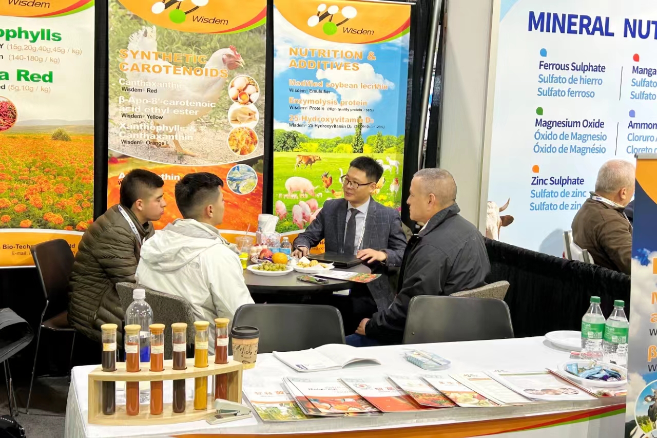 智特奇生物在展会现场重点宣传推广了类胡萝卜素系列产品,包括天然色素叶黄素和辣椒红,合成色素斑蝥黄,阿朴酯,虾青素及β-类胡萝卜素等。同时也展示了生理调节剂系列产品和维生素系列产品。另外我们带去的新产品25-羟基D3和蛋能素也备受关注,众多国际客户前来咨询交流。