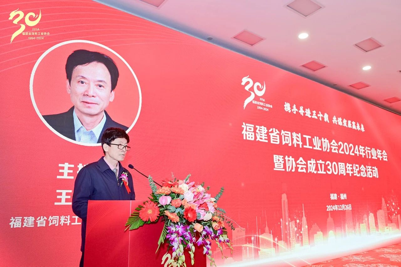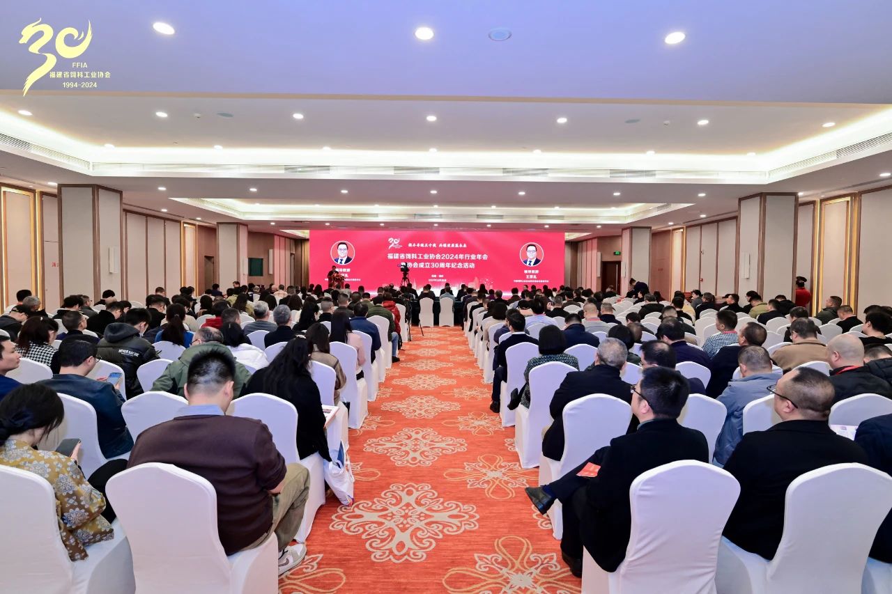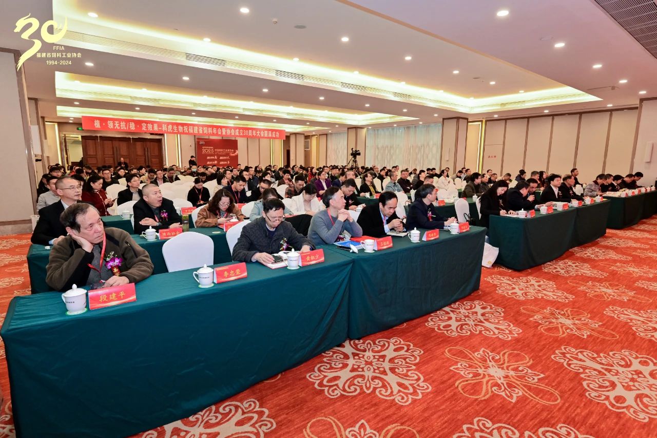 2024年12月26日,主题为“携手并进三十载,共谋发展赢未来”的福建省饲料工业协会2024年行业年会暨协会成立30周年纪念活动在福州西湖宾馆盛大举行。本次活动由福建省饲料工业协会主办,智特奇生物助力参与。汇聚了饲料行业的众多专家、企业领袖及精英,共同探讨行业发展趋势,分享创新成果,交流前沿技术。