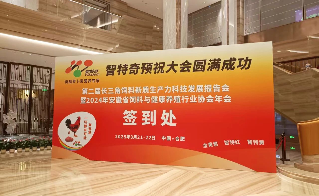 2025年3月21日-22日,由安徽省饲料与健康养殖行业协会主办、上海、江苏、浙江三省一市协会联办的“第二届长三角饲料新质生产力科技发展报告会暨2024年安徽省饲料与健康养殖行业协会年会”在合肥北尚世纪金源大饭店隆重召开,智特奇生物作为本次大会的赞助单位之一,倾情参与其中。本次年会特邀印遇龙院士、华中农业大学严建兵教授(校长)领衔主题报告,聚焦饲料行业科技前沿,行业领导、高校院所有关专家、长三角及各兄弟省份协会代表、协会会员、特邀嘉宾、皖籍企业家精英齐聚一堂。活动涵盖协会年会报告、科技报告会、皖籍企业家圆桌论坛、长三角饲料发展(协会)座谈会、答谢晚宴等多元环节,旨在为行业搭建产学研深度融合的交流平台。至此,一年一届的盛会圆满闭幕,作为类胡萝卜素营养专家的智特奇生物,为践行健康养殖、绿色发展理念,在新形势下,将继续秉承着“有智慧 一切都有可能”这一核心理念,致力为饲料养殖行业的高质量发展贡献更大的力量,继续与行业同仁们一道,共谋发展,赢得未来!