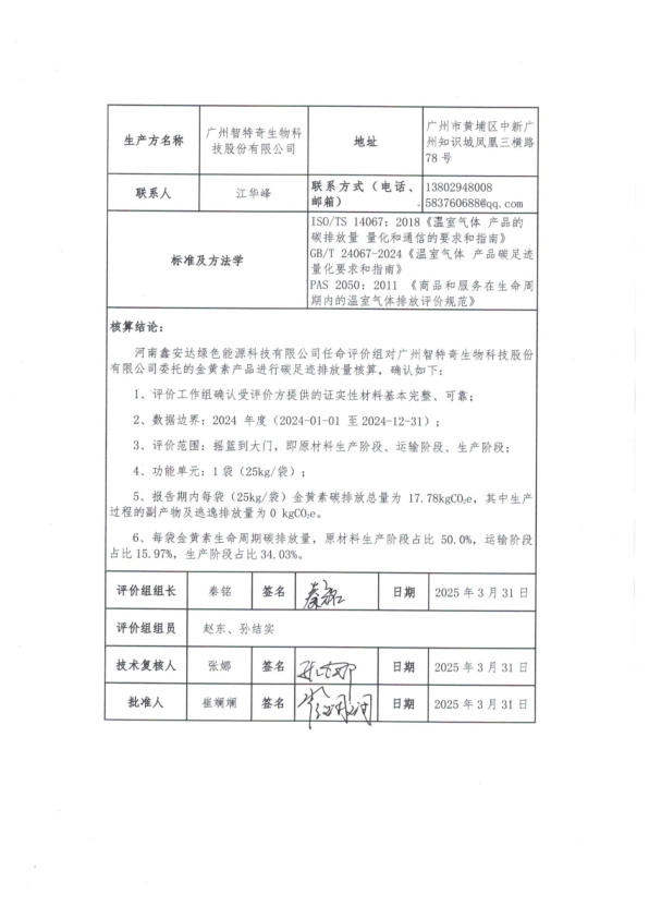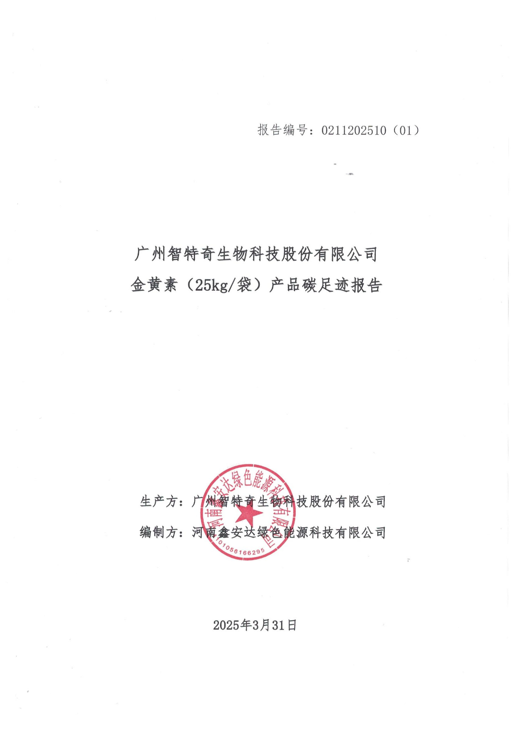 广州智特奇生物科技股份有限公司温室气体产品碳足迹报告公示