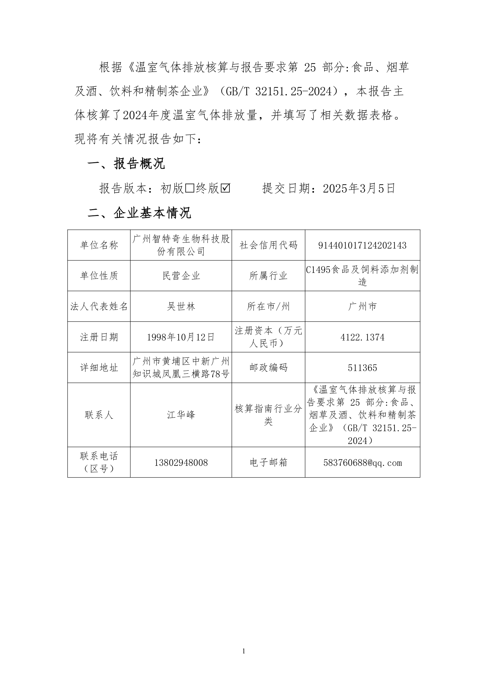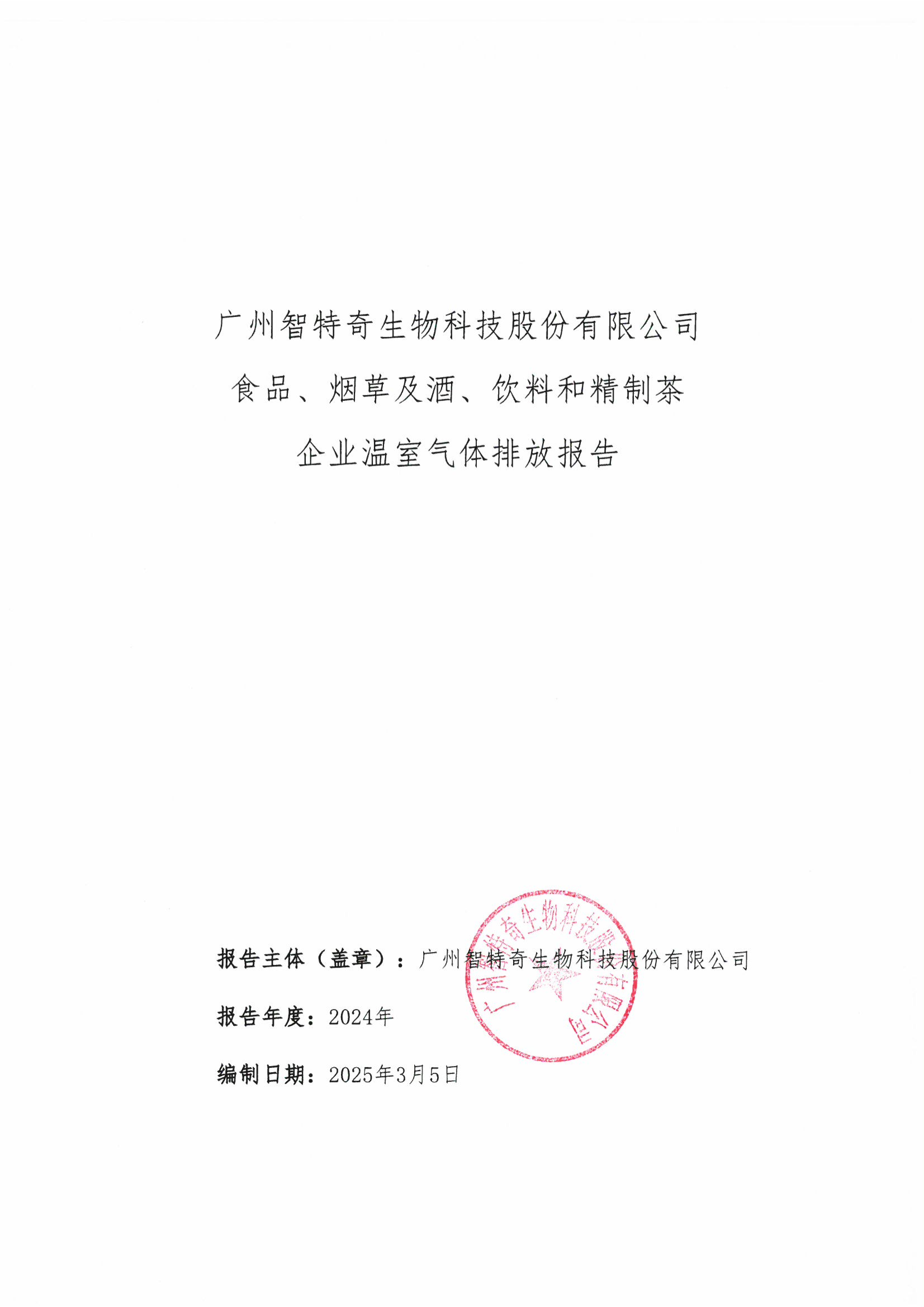 广州智特奇生物科技股份有限公司温室气体排放报告