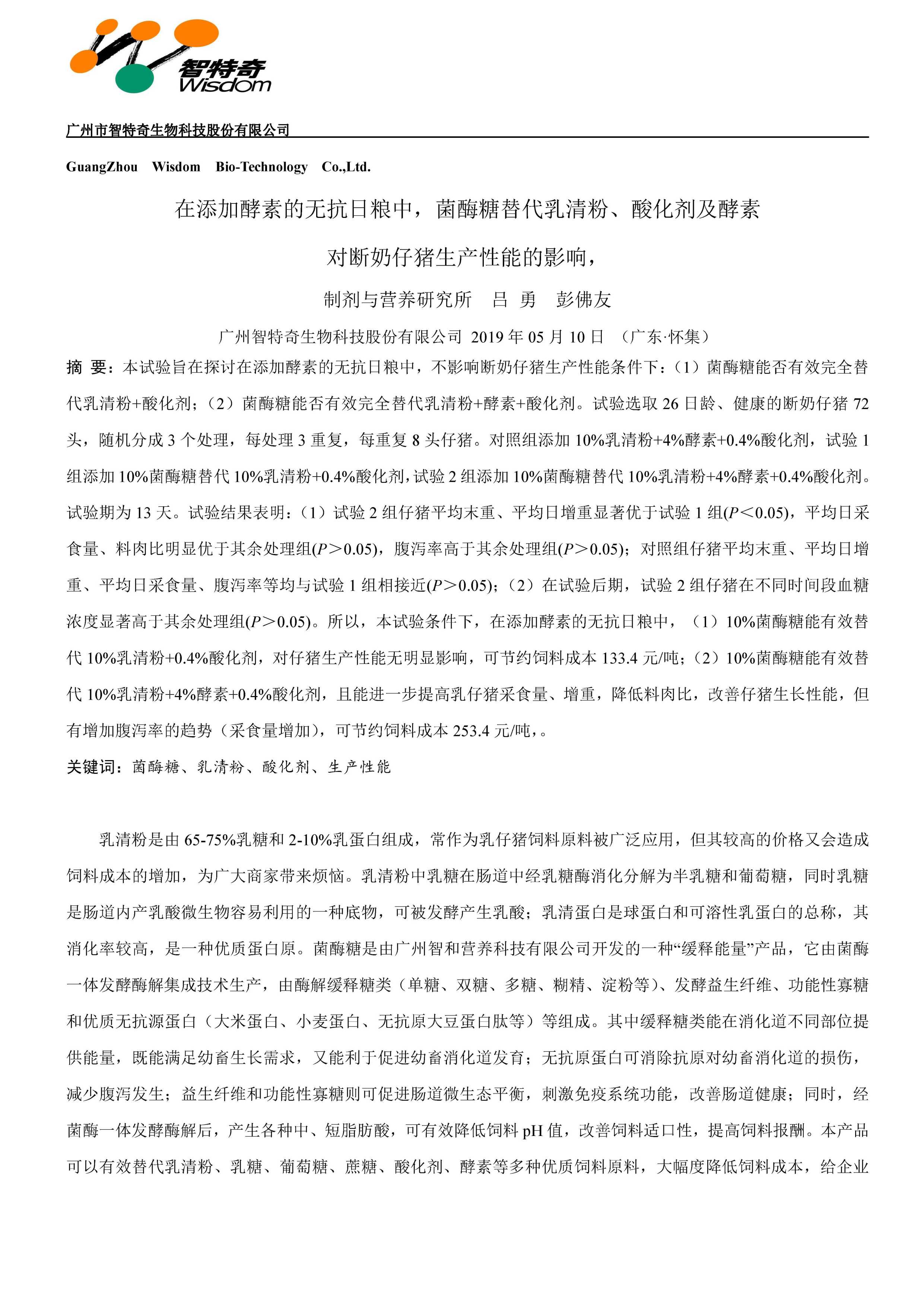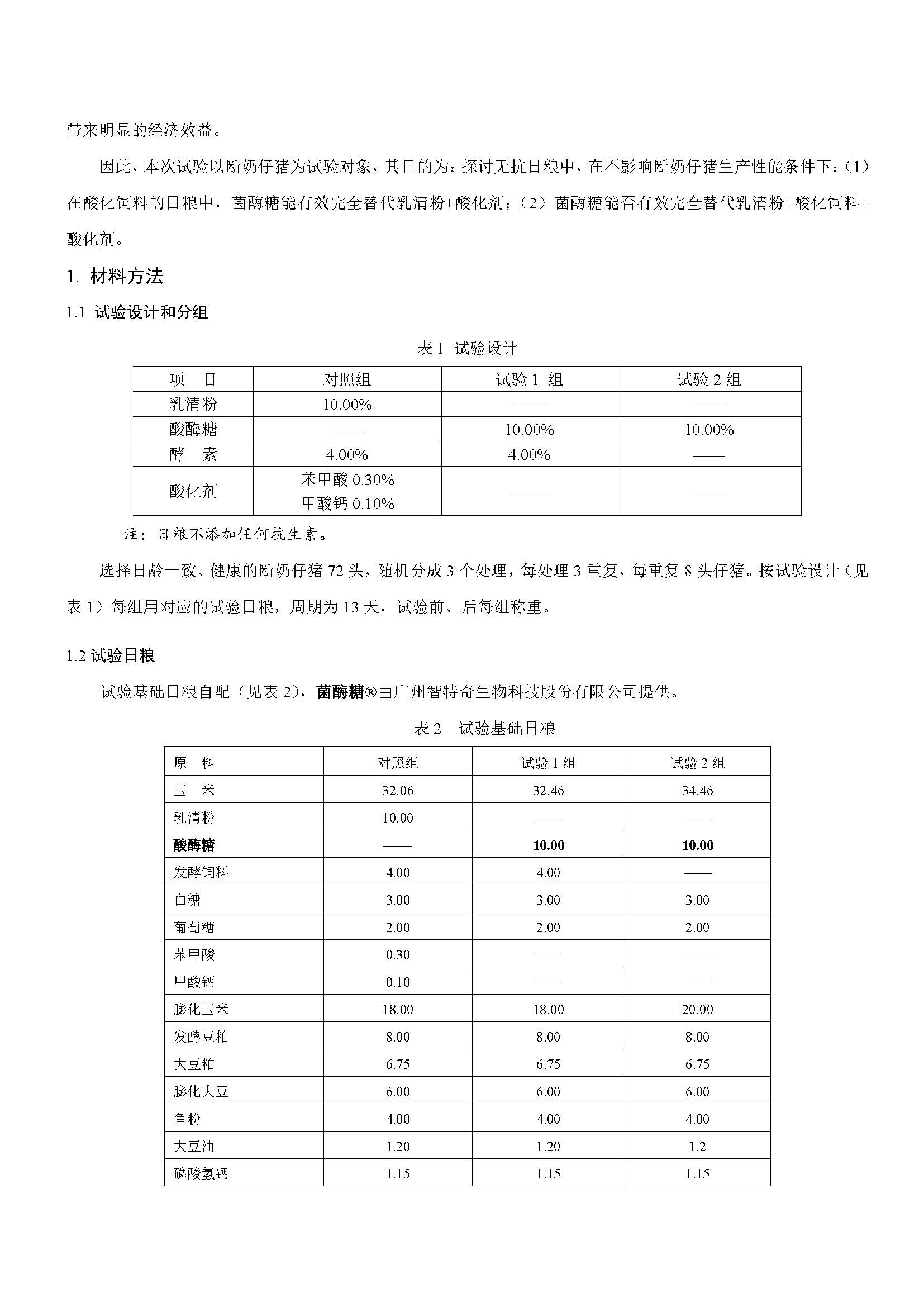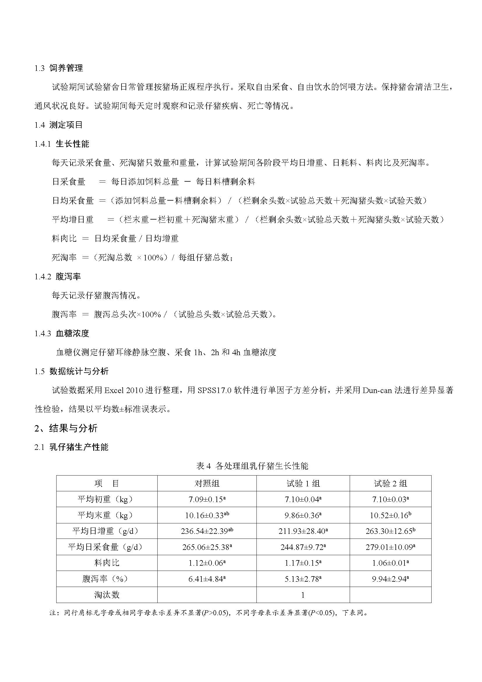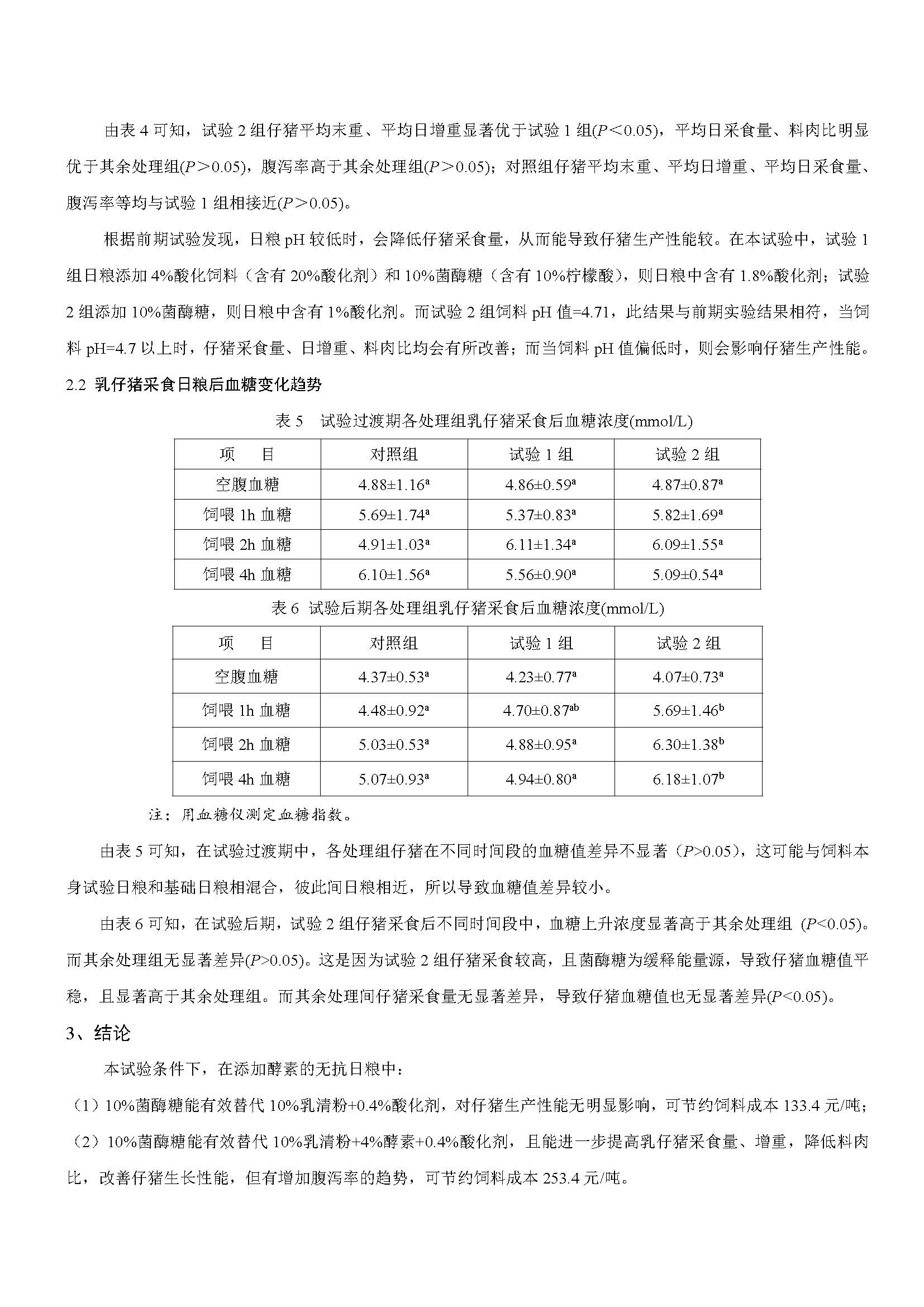 在常规日粮中,菌酶糖替代乳清粉、酸化剂对乳仔猪生产性能的影响