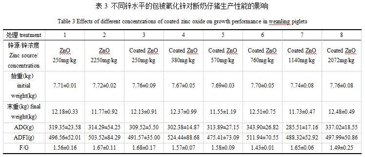 3.1包被氧化锌对断奶仔猪生长性能的影响
