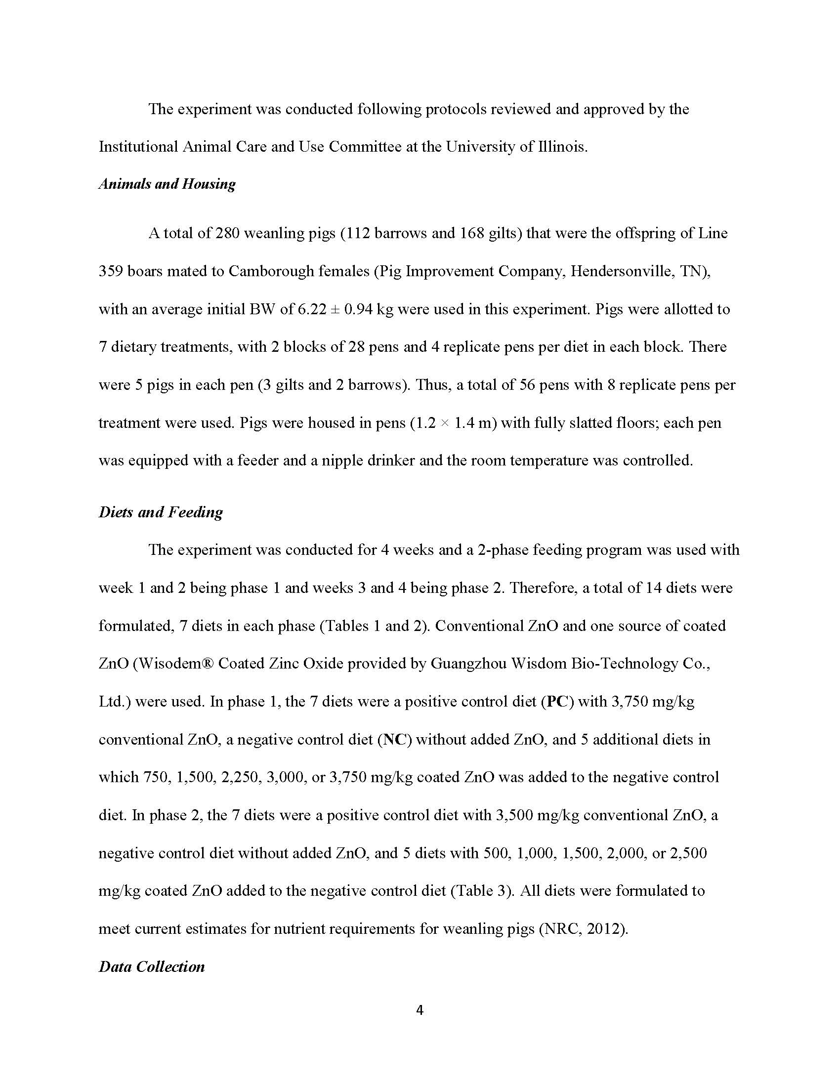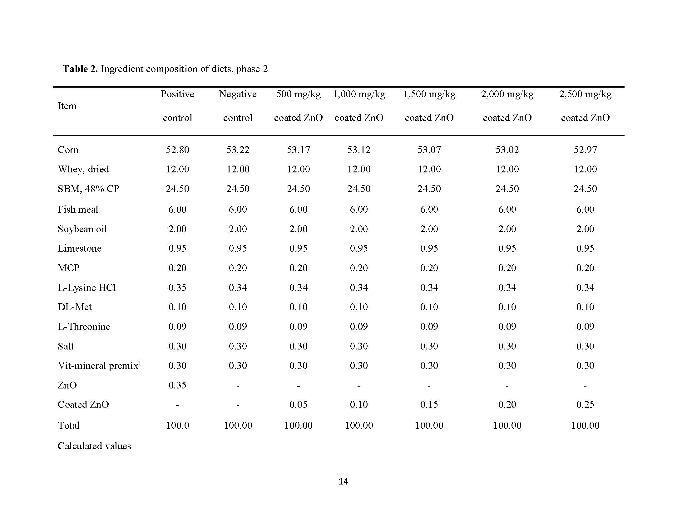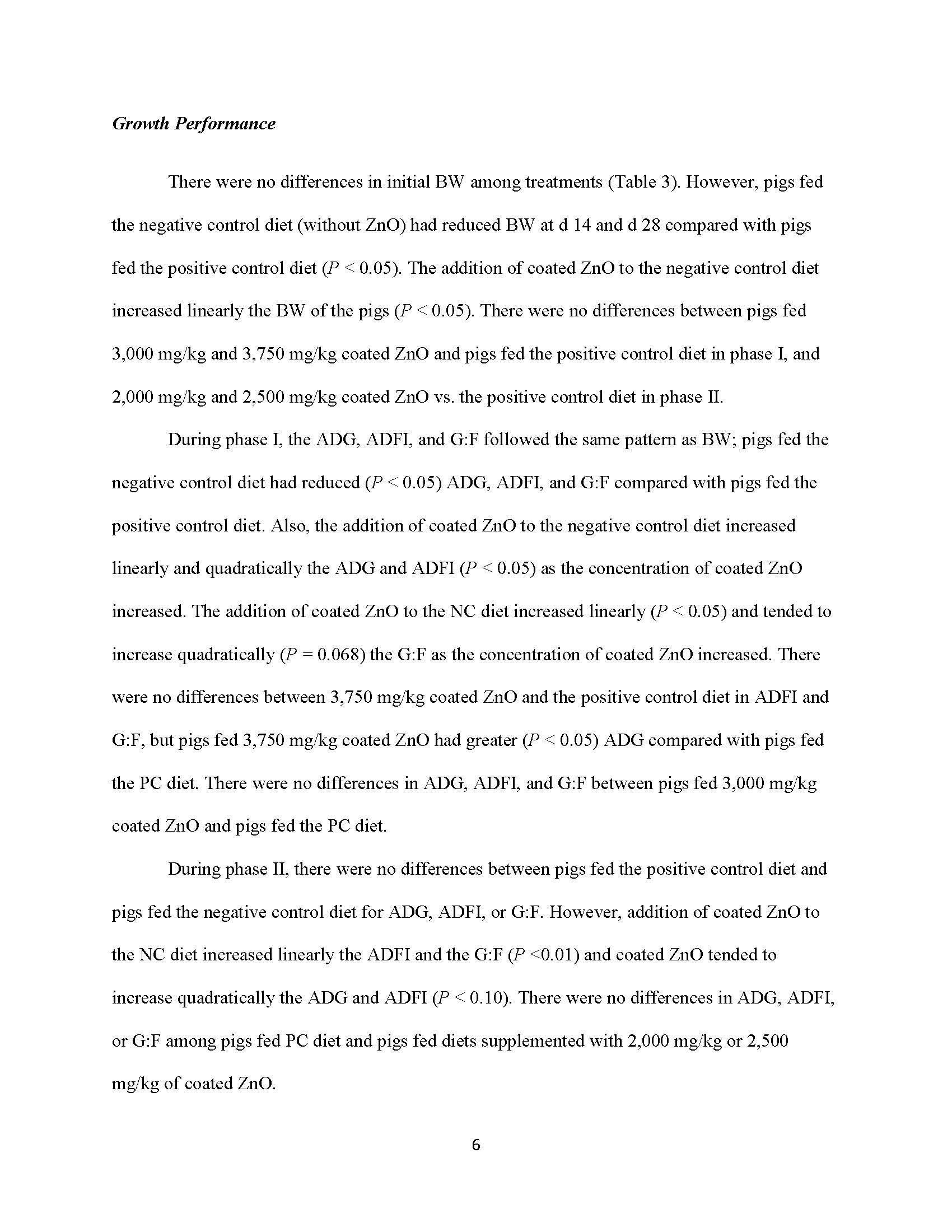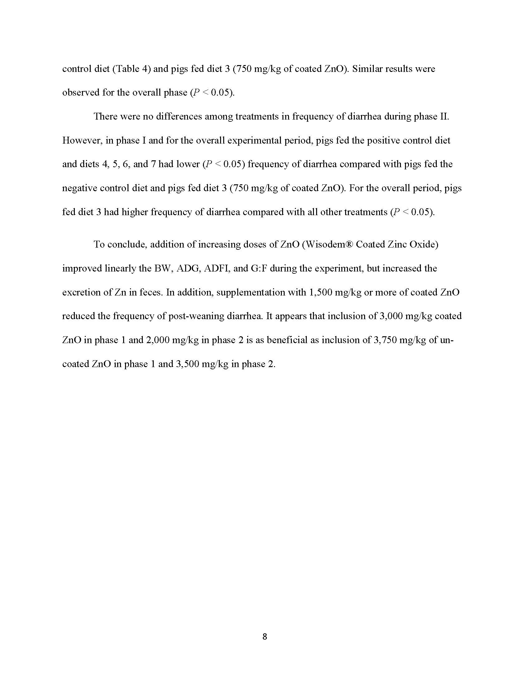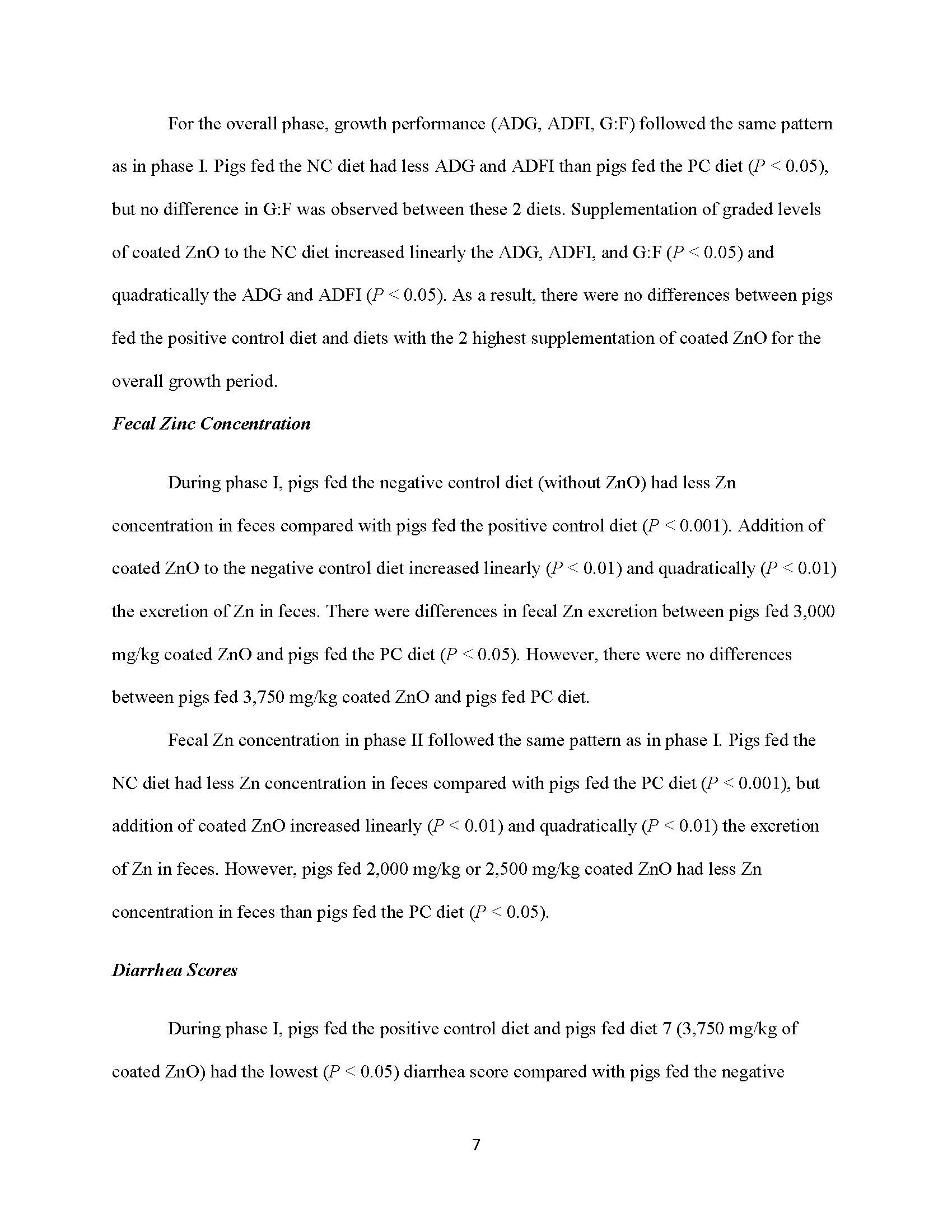 Effects of Graded Levels of Coated ZnO on Performance,Diarrhea Score, Concentrations of Fecal Zn in Weanling Pigs(University of Illinois)