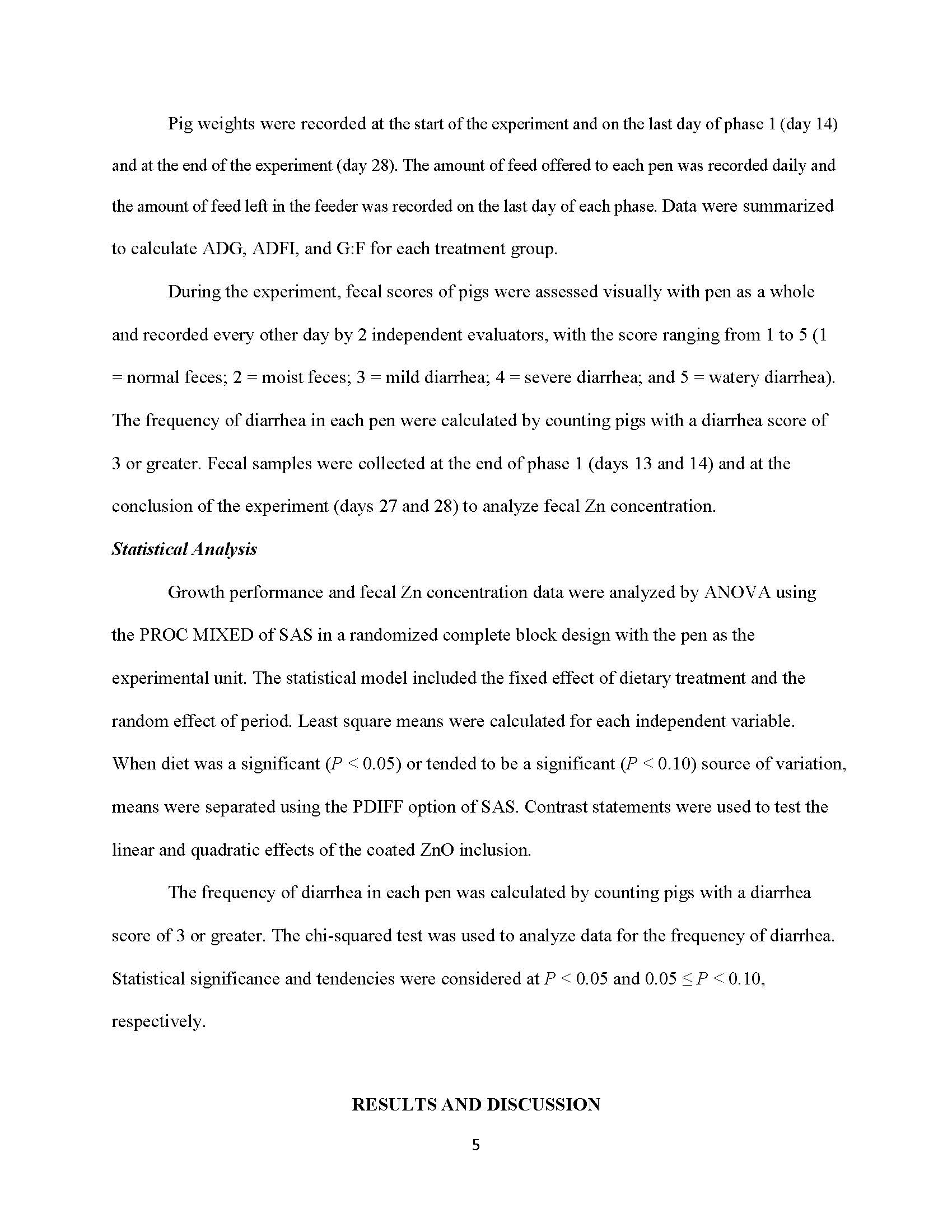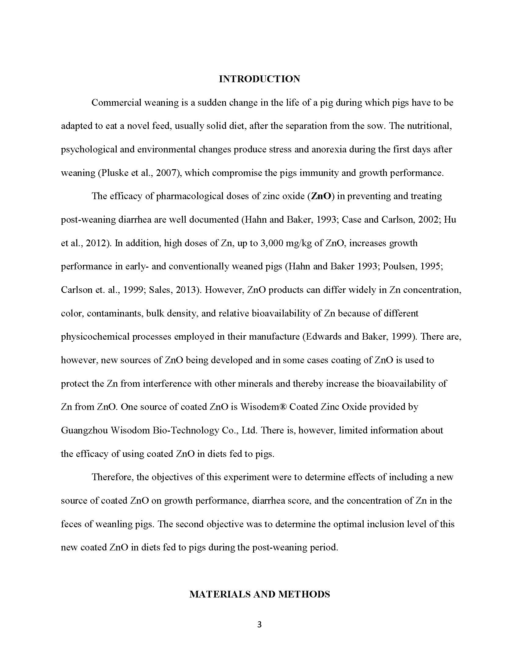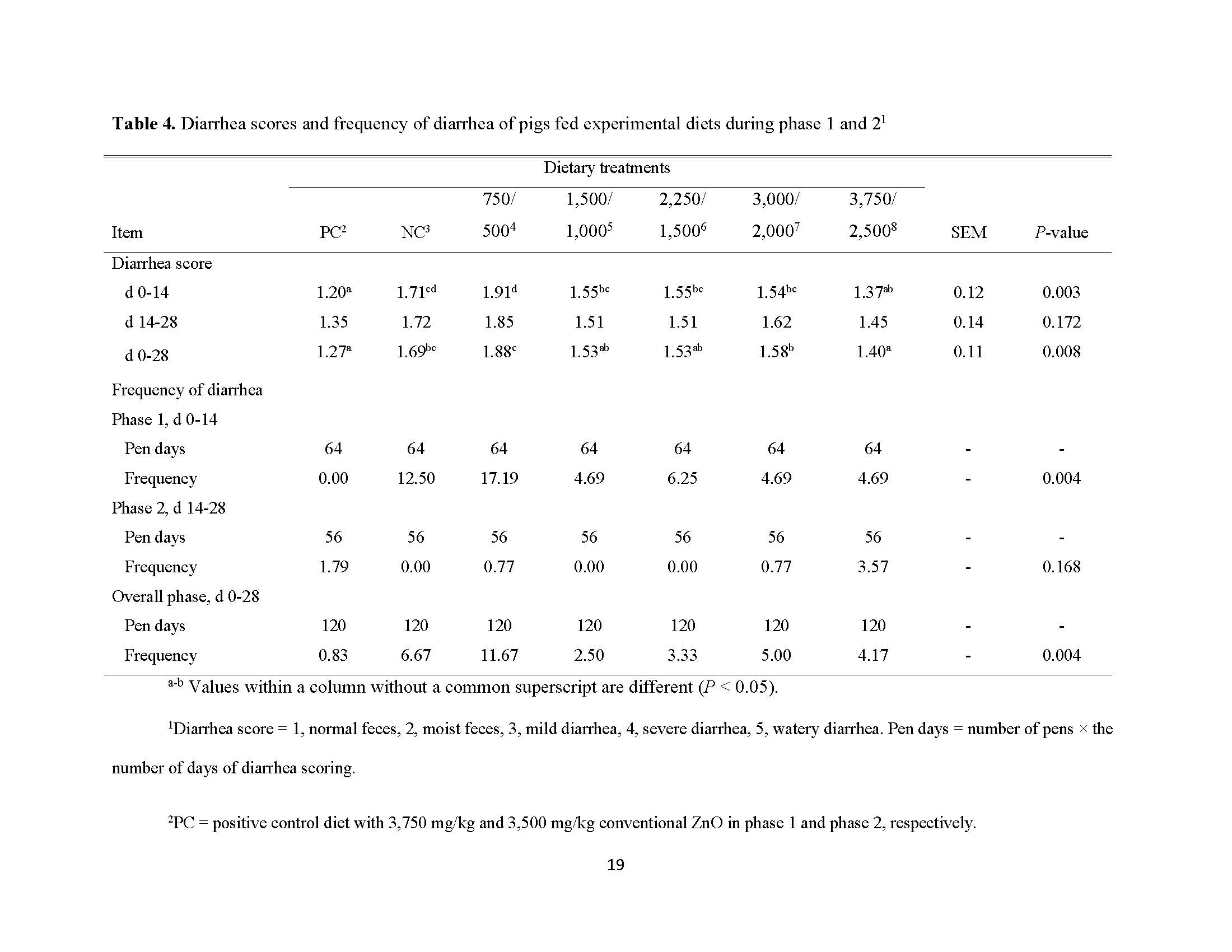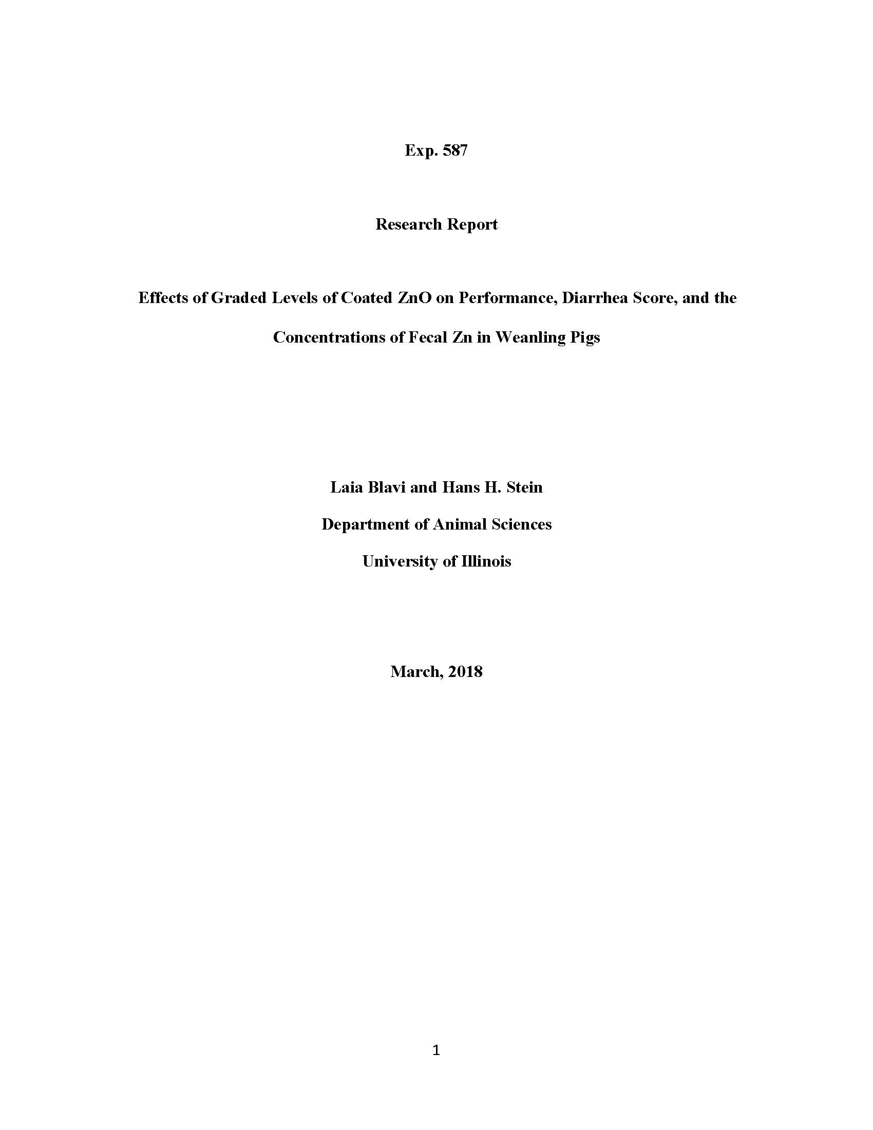 Effects of Graded Levels of Coated ZnO on Performance,Diarrhea Score, Concentrations of Fecal Zn in Weanling Pigs(University of Illinois)