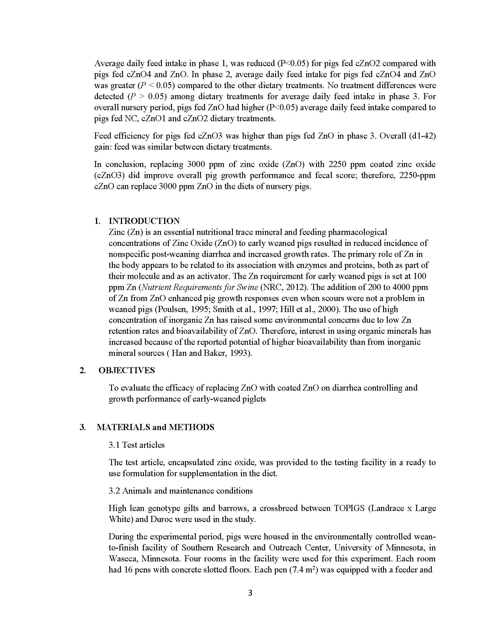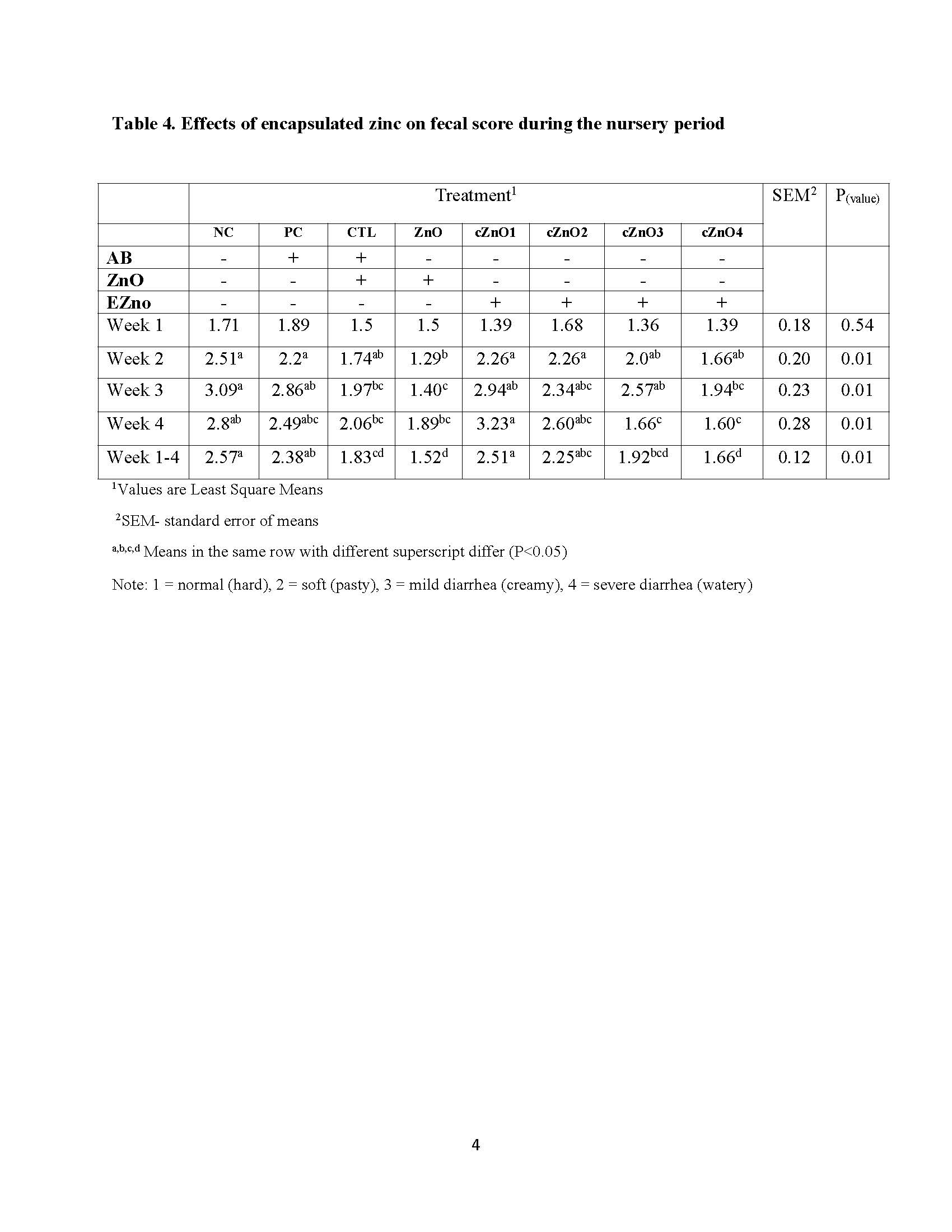 Replacement of Zinc Oxide with Coated Zinc Oxide on Fecal Scores and Growth Performance of Early-Weaned Piglets(University of Minnesota)