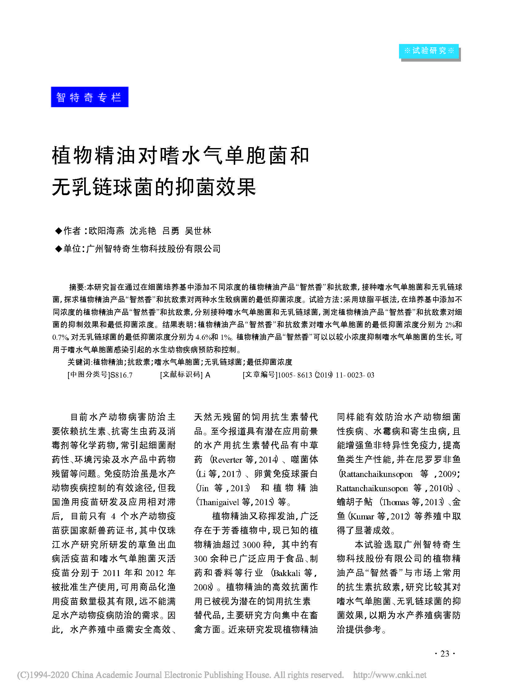 植物精油对嗜水气单胞菌和无乳链球菌的抑菌效果