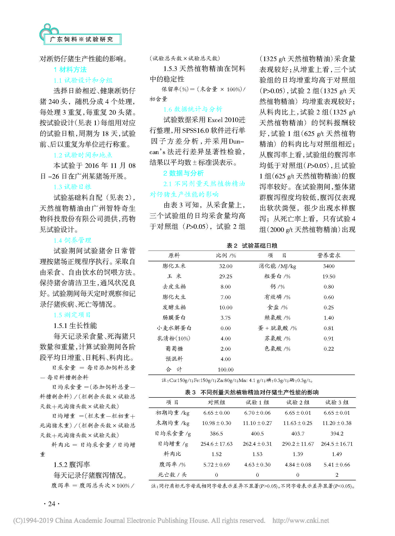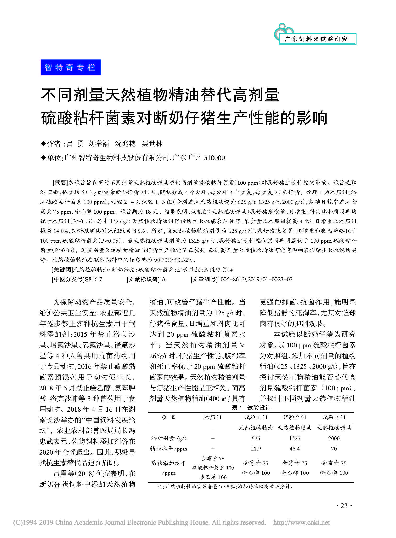 不同剂量天然植物精油(智然香)替代高剂量硫酸粘杆菌素对断奶仔猪生产性能的影响