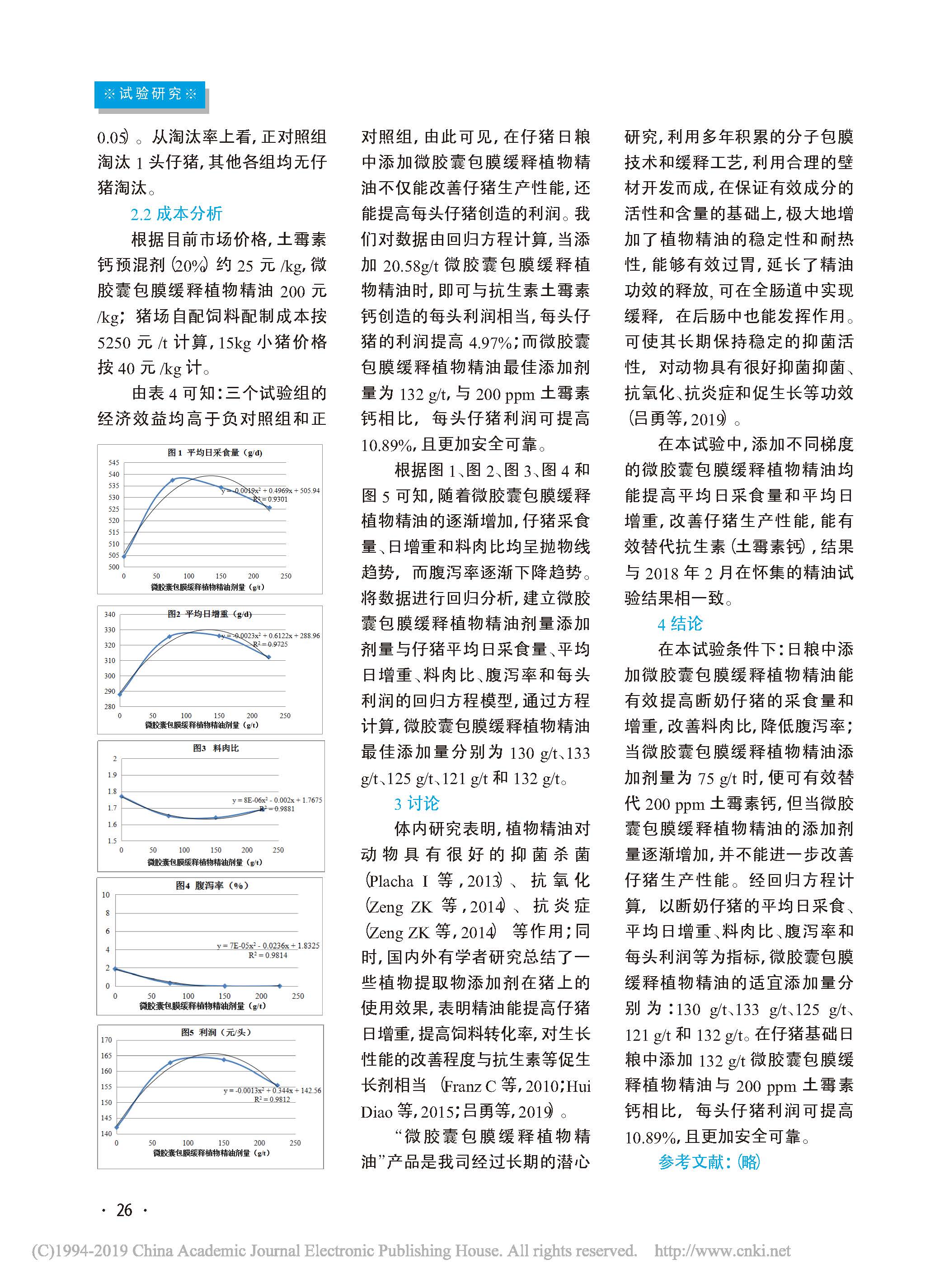 不同剂量微胶囊包膜植物精油(智然香C20)替代喹乙醇对保育仔猪生产性能的影响