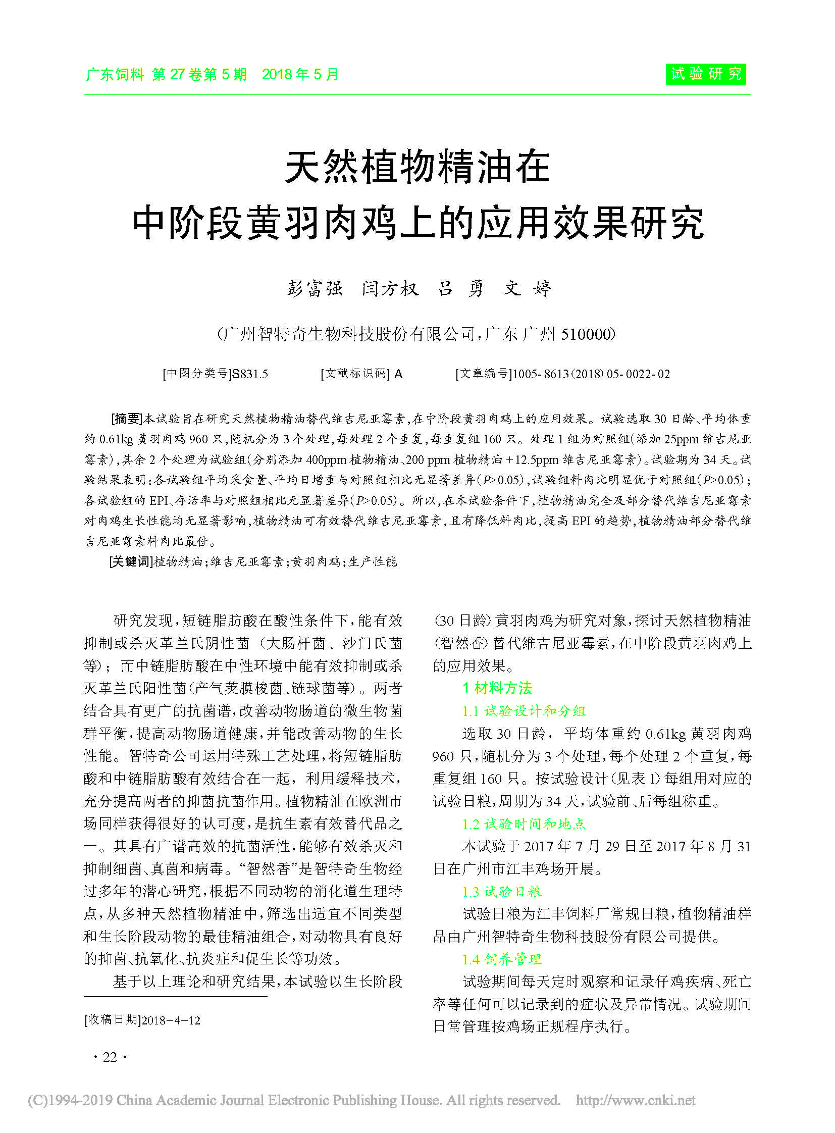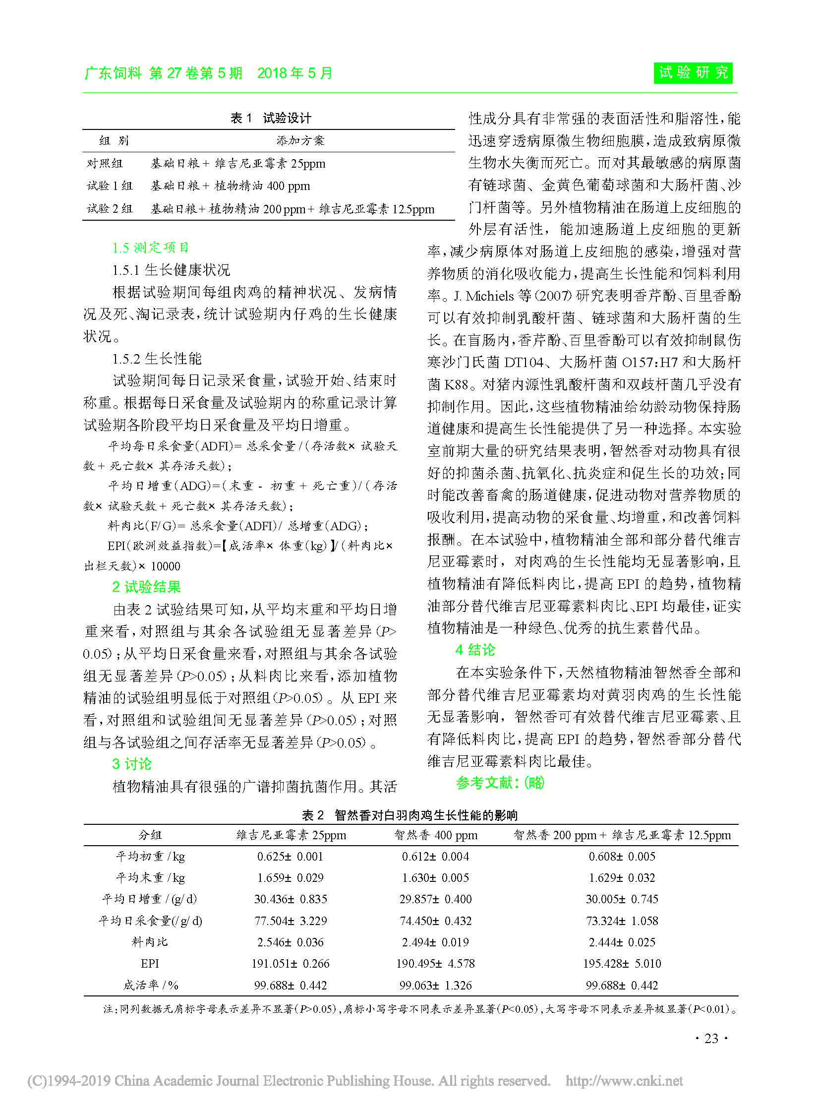 不同类型植物精油(智然香和智然香C20)对中阶段黄羽肉鸡生长性能的影响