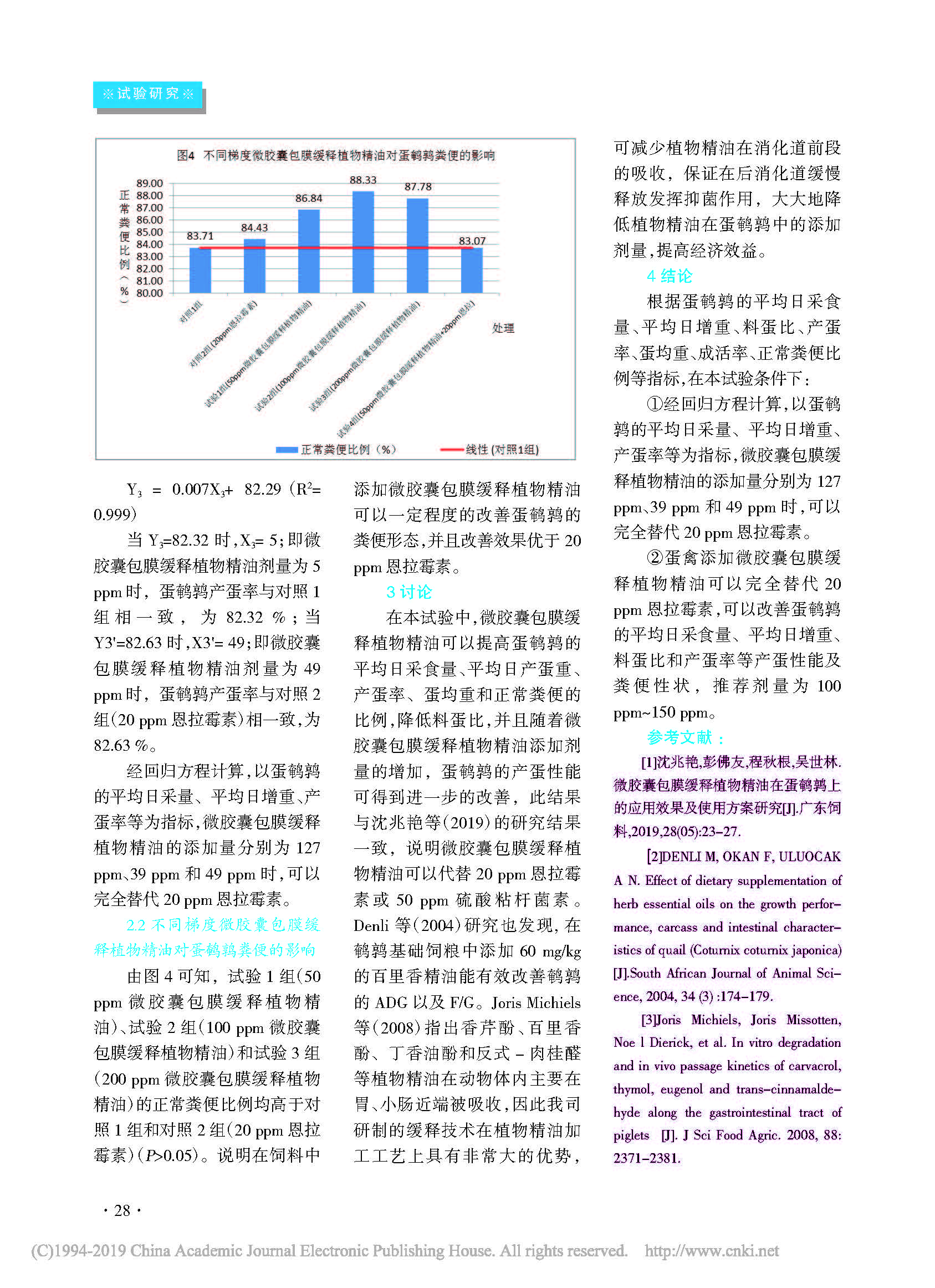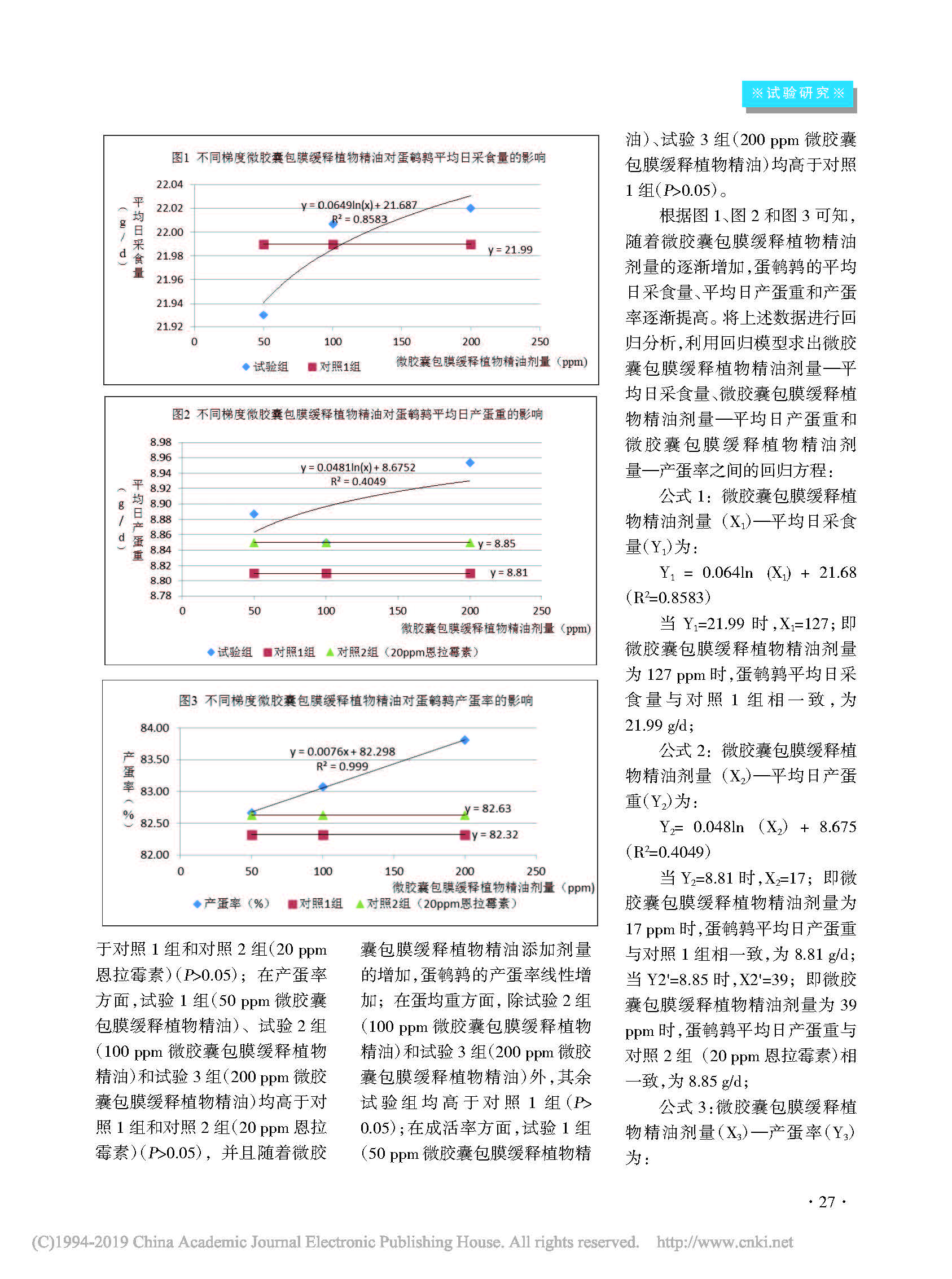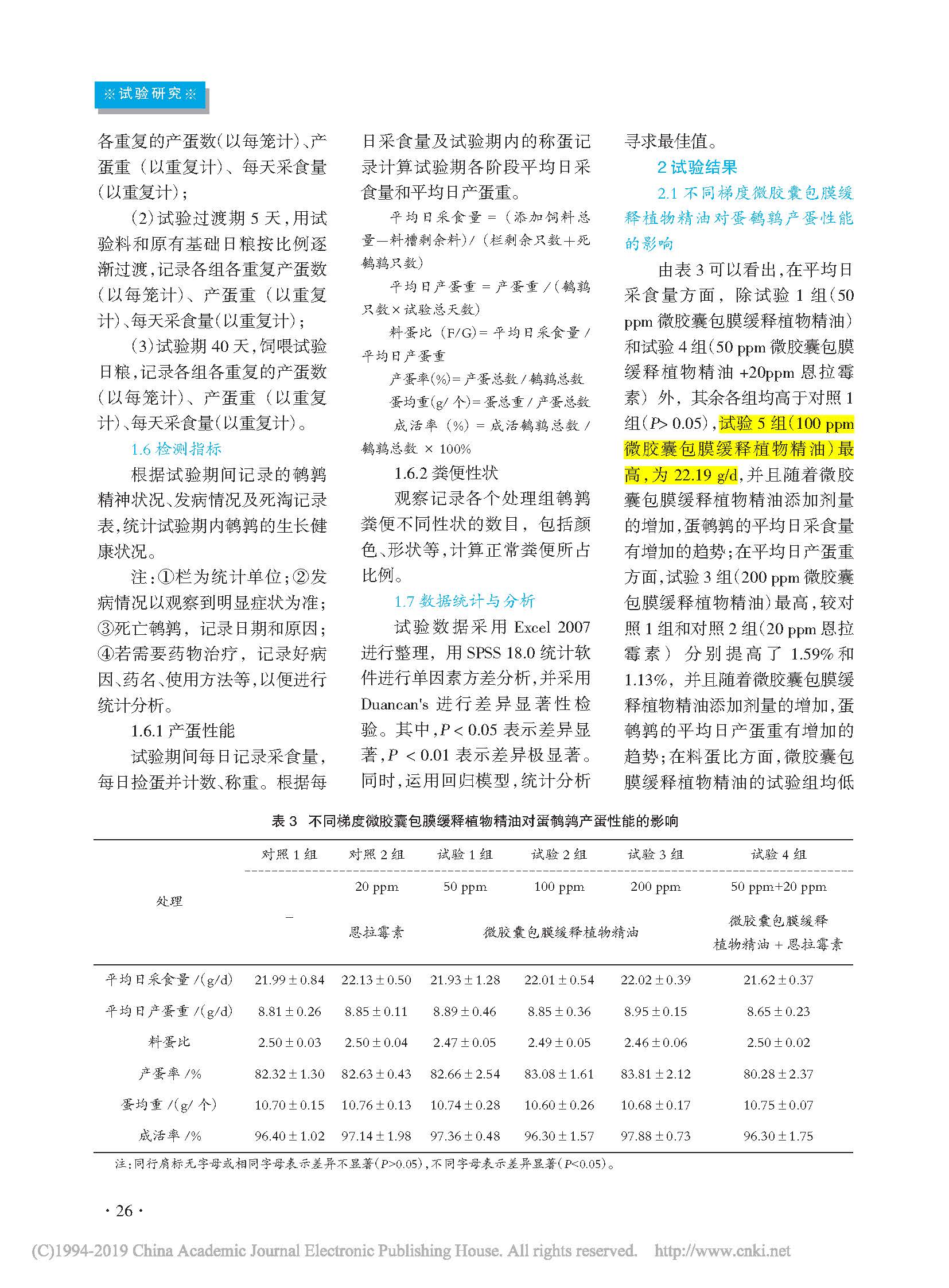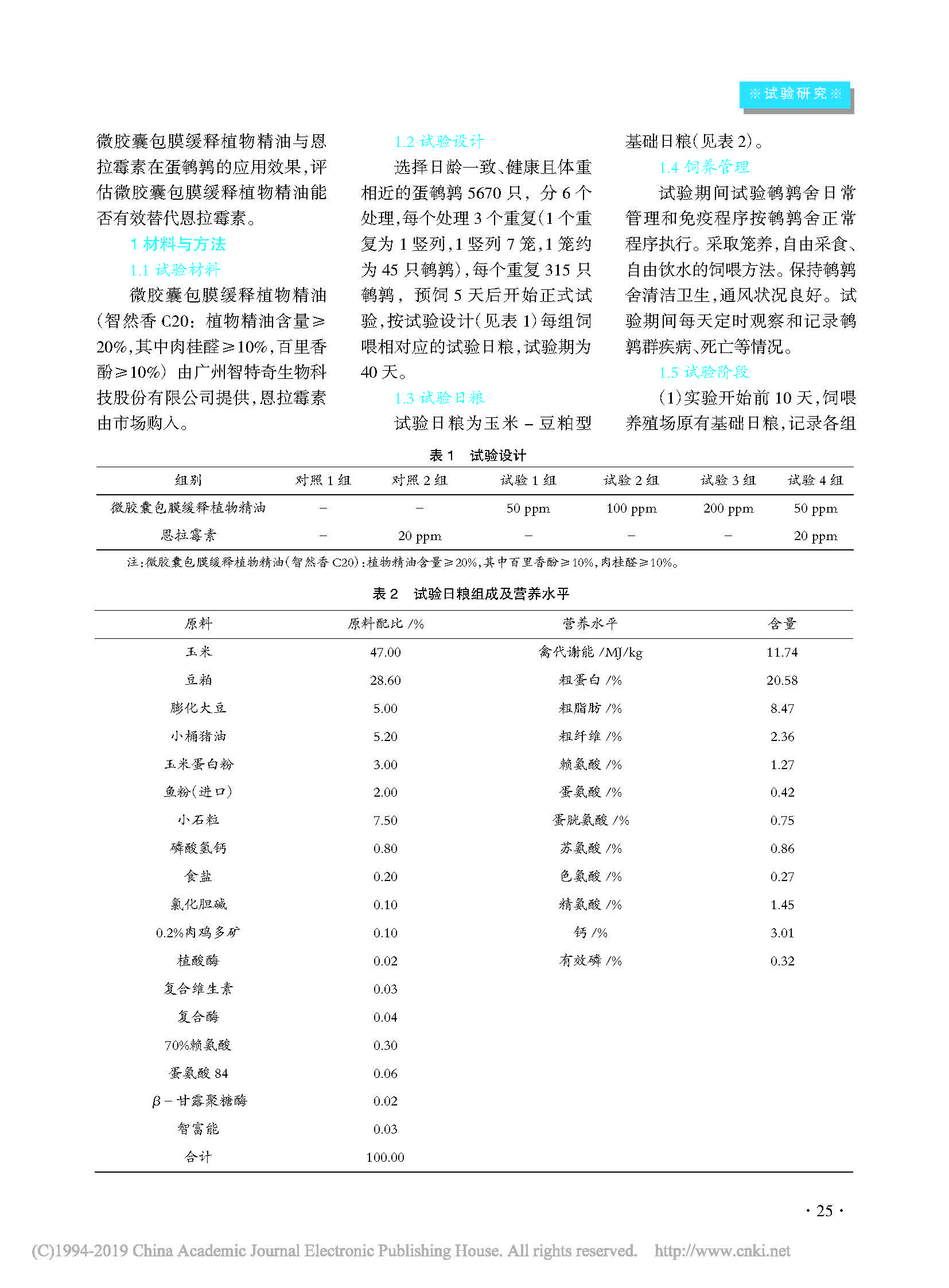 不同梯度微胶囊包膜缓释植物精油(智然香C20)在蛋鹌鹑上的应用效果及使用方案研究