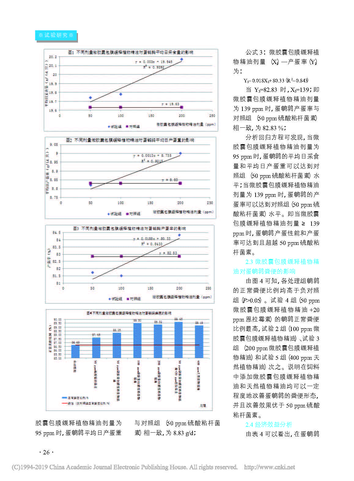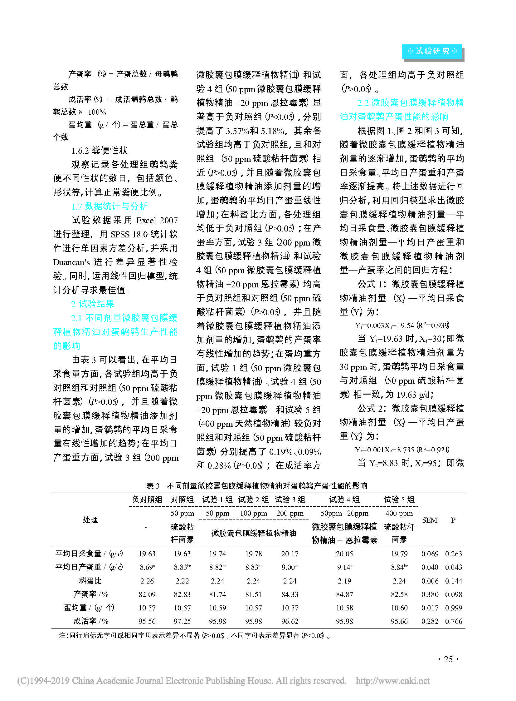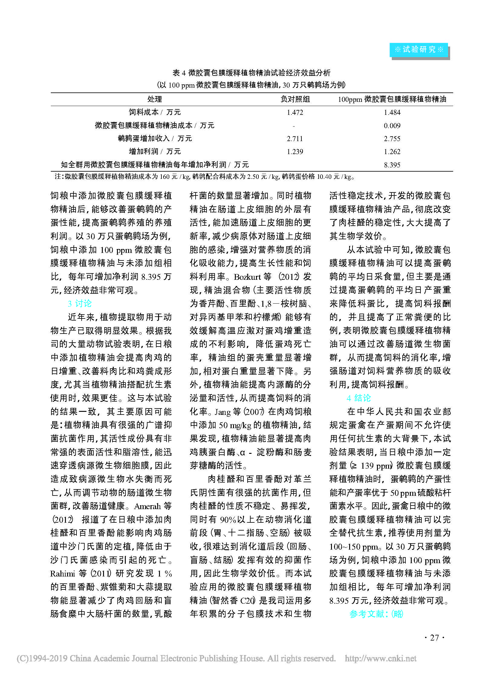不同梯度微胶囊包膜缓释植物精油(智然香C20)在蛋鹌鹑上的应用效果及使用方案研究