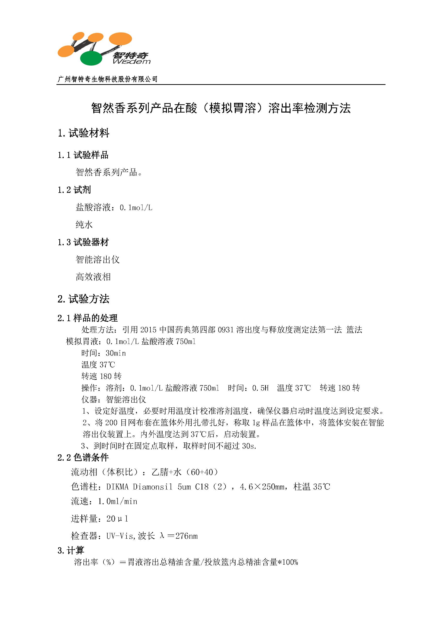 智然香系列产品在酸(模拟胃溶)溶出率检测方法