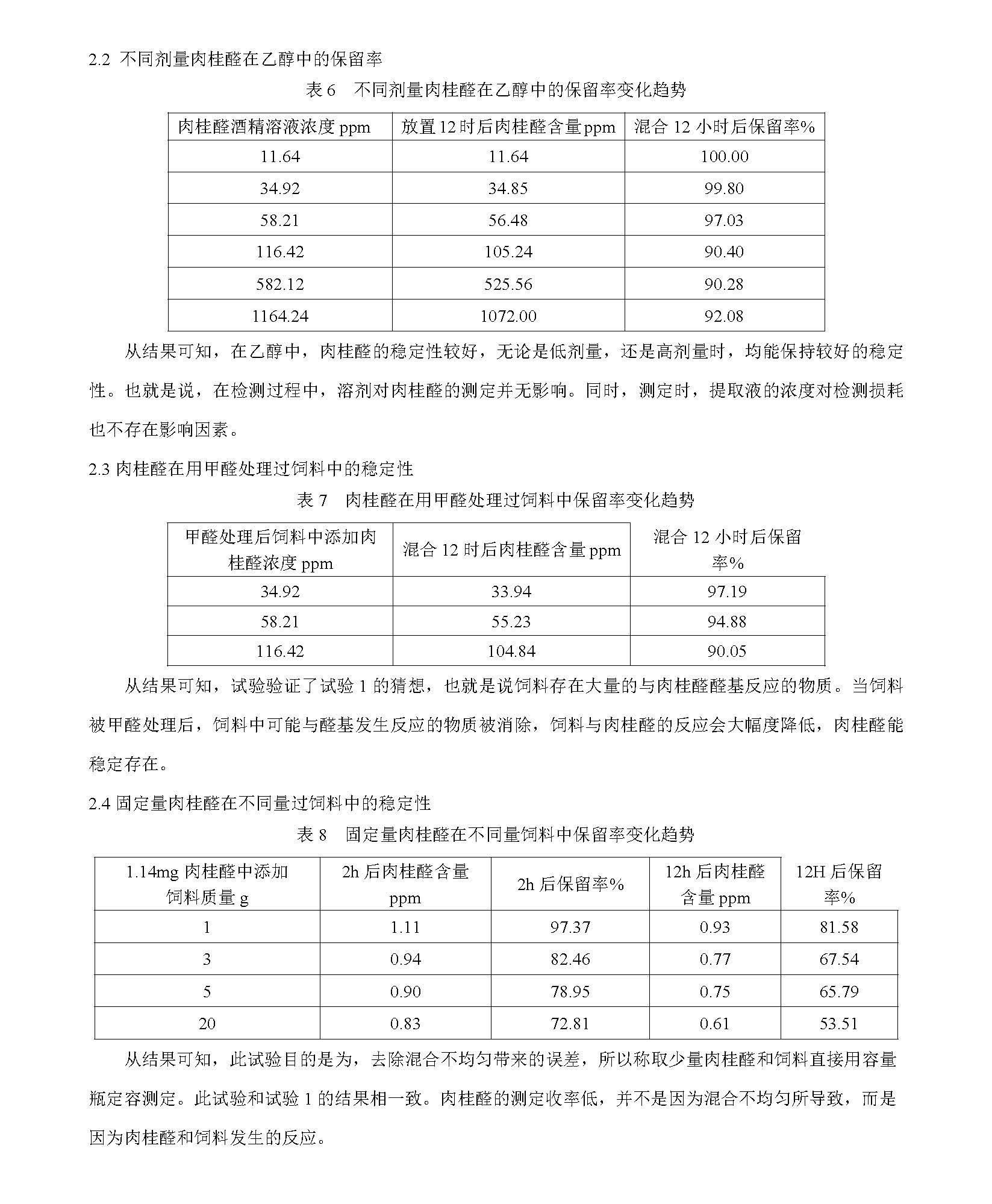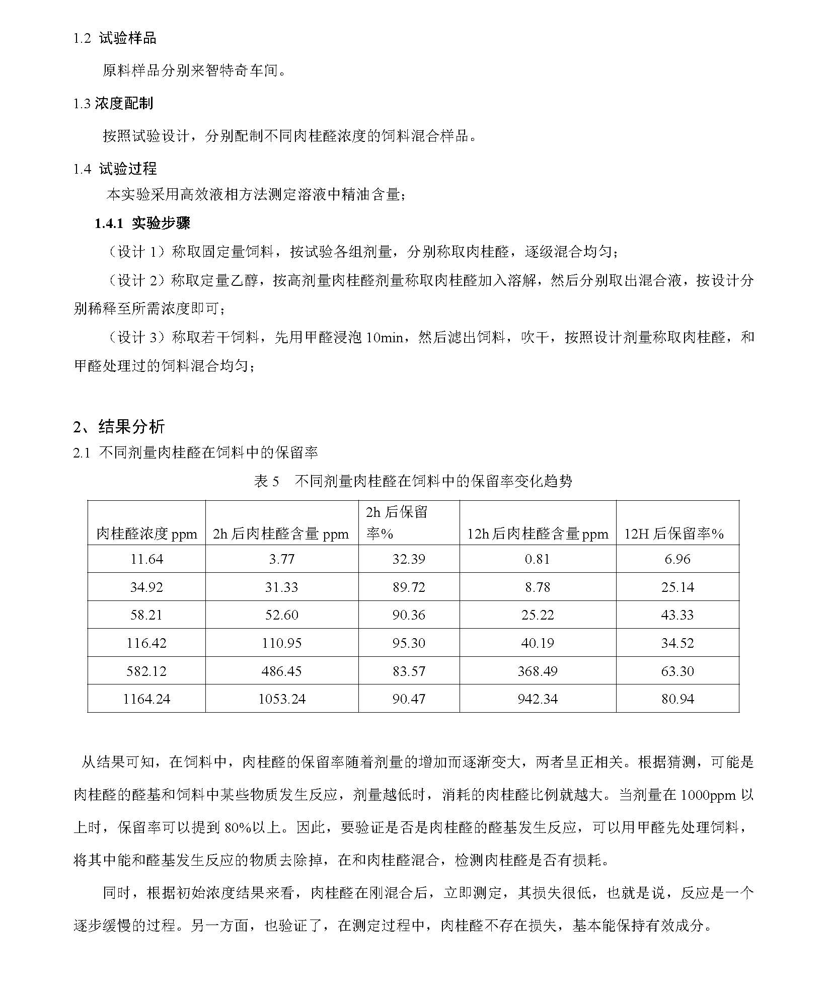探索肉桂醛在饲料中检测收率降低的原因