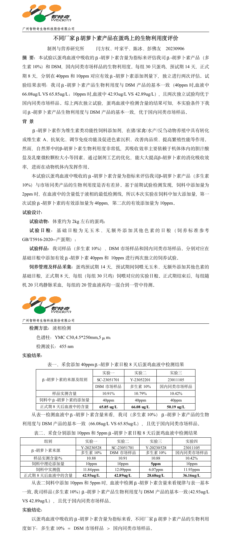 不同厂家β胡萝卜素产品在蛋鸡上的生物利用度评价