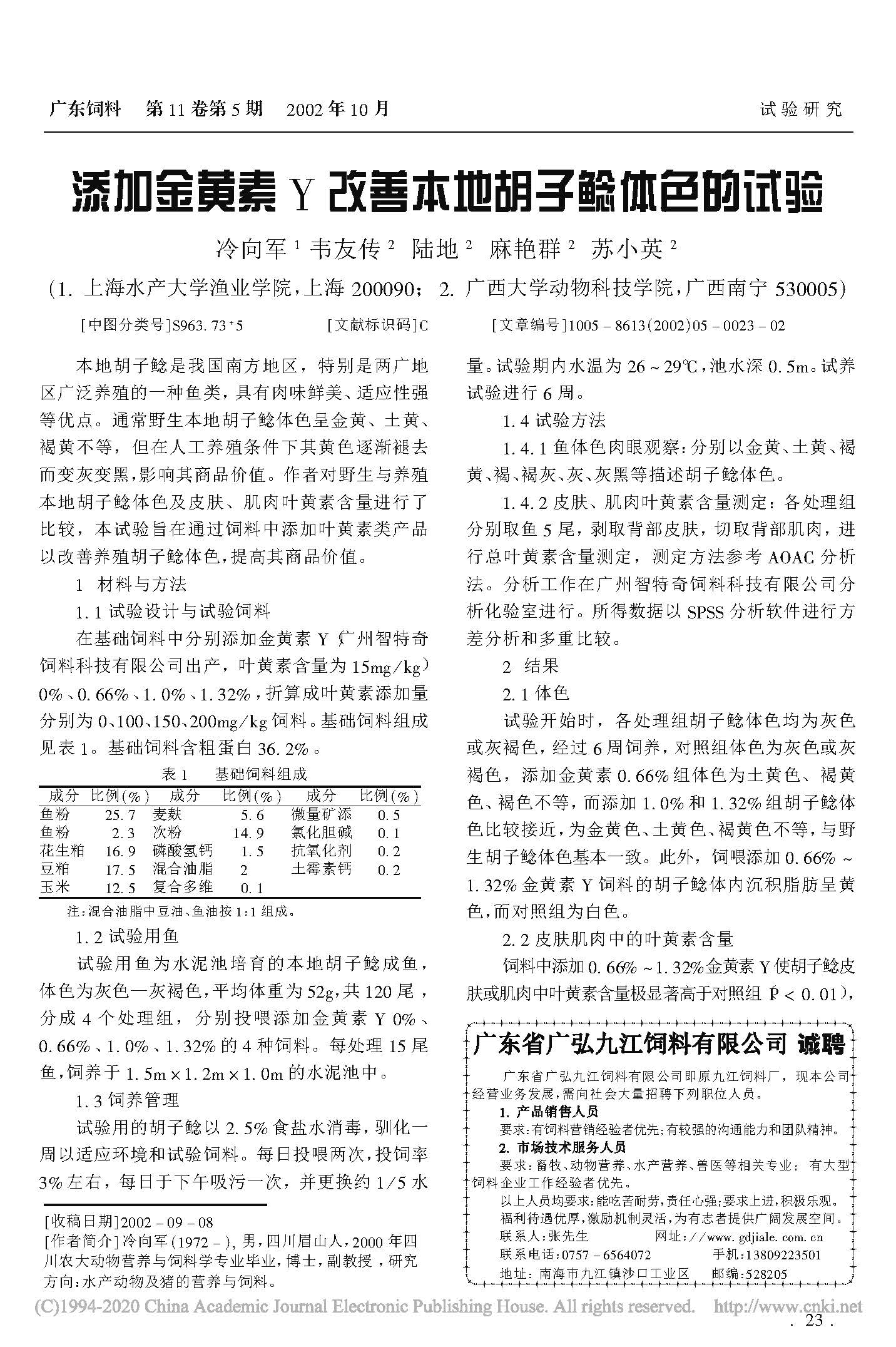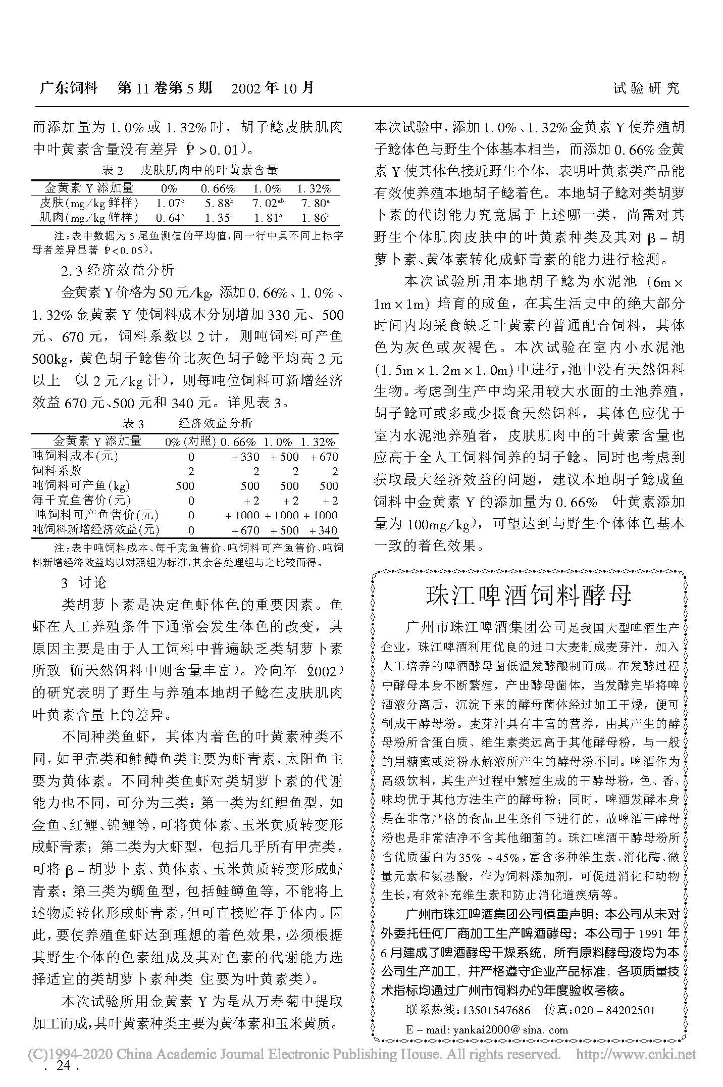 叶黄素添加和制粒方式对杂交鲶体色的研究