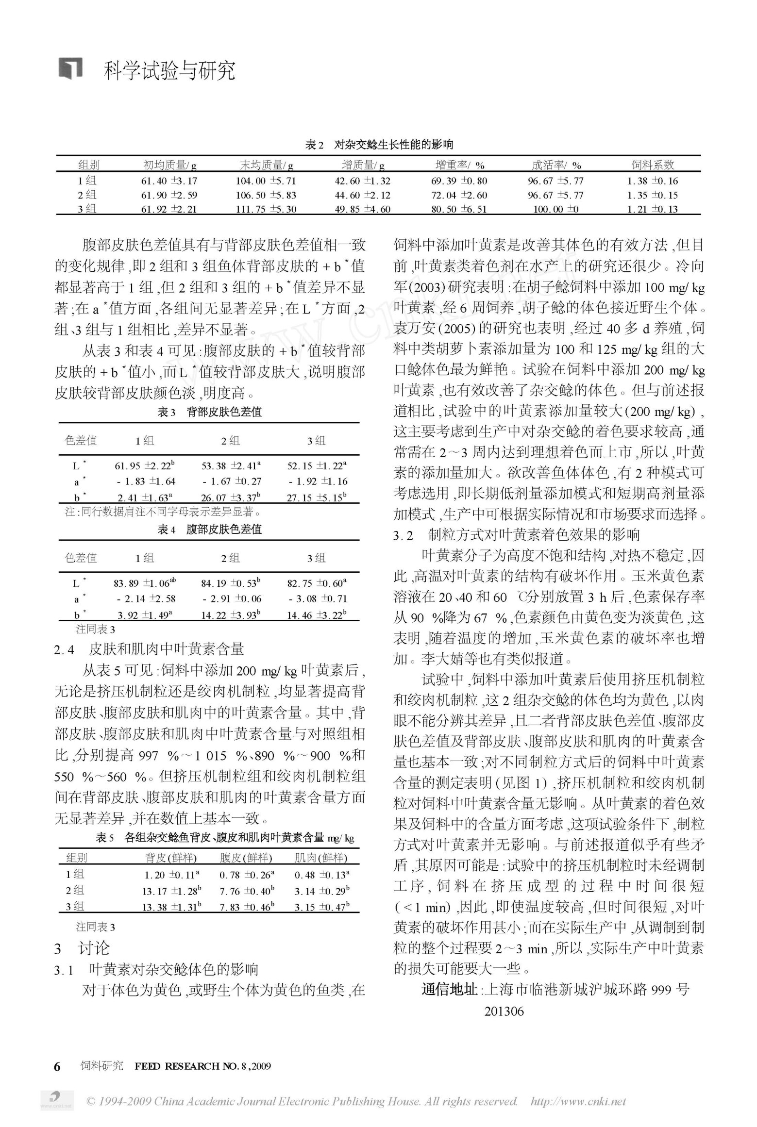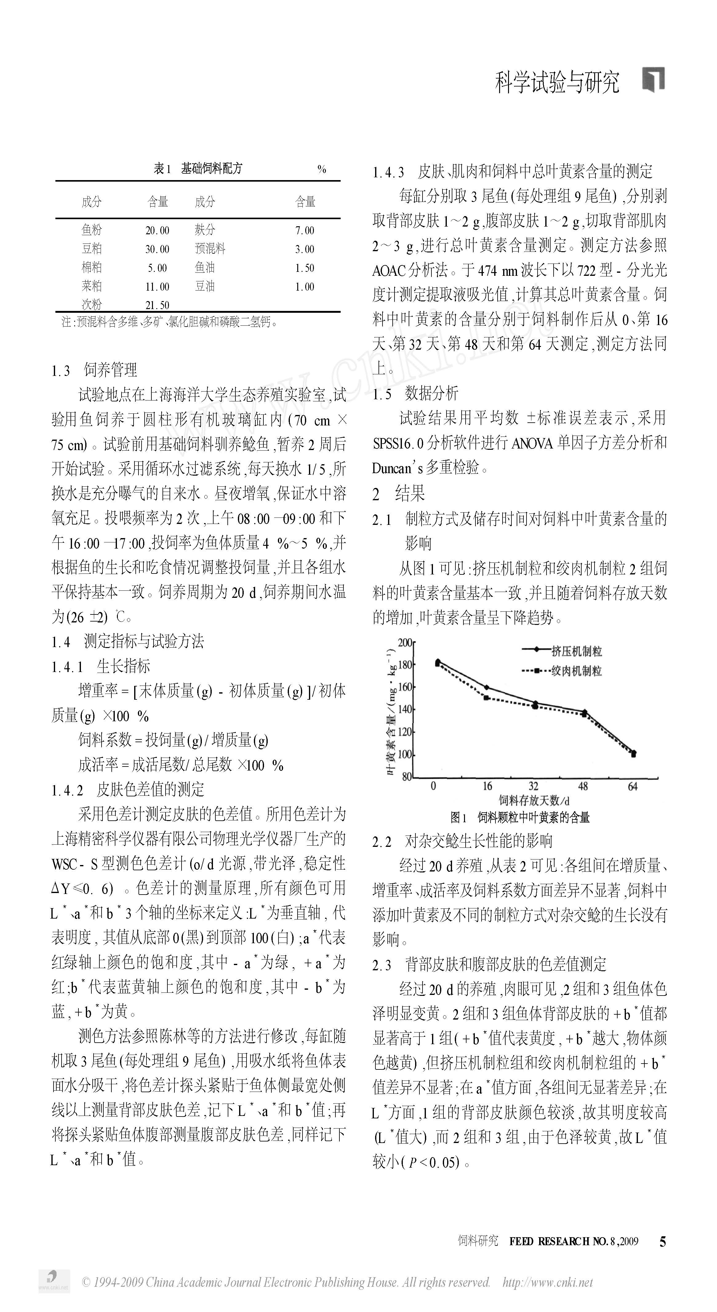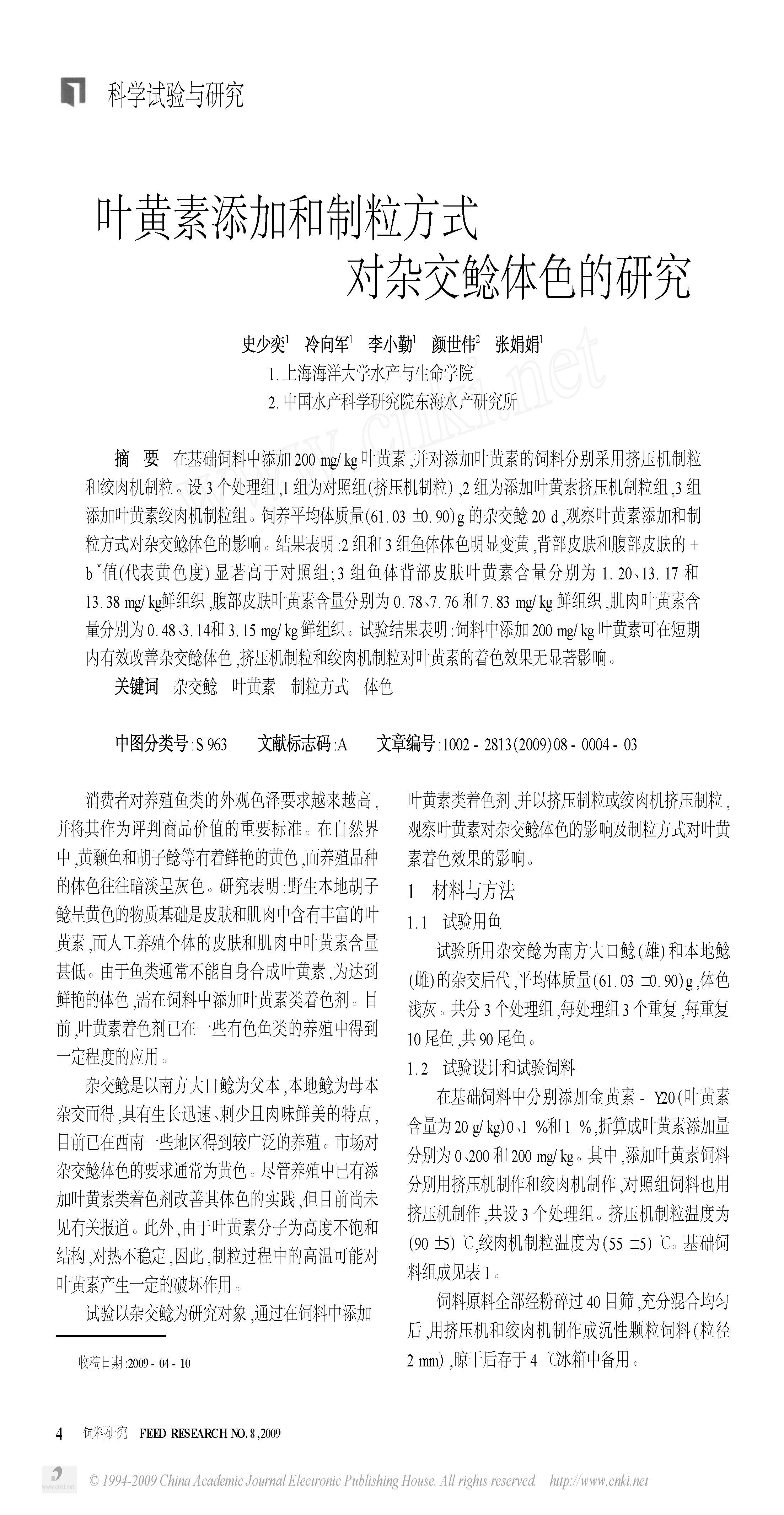 叶黄素添加和制粒方式对杂交鲶体色的研究