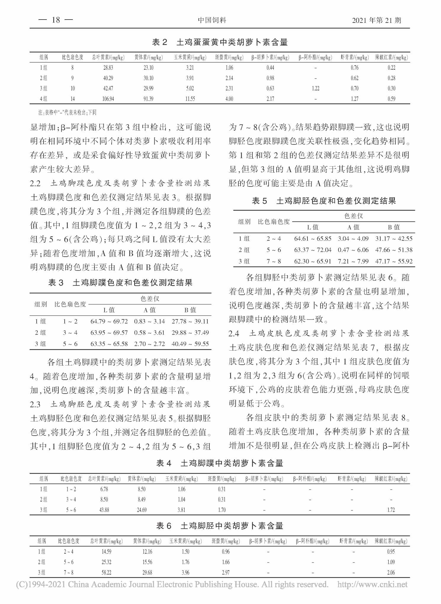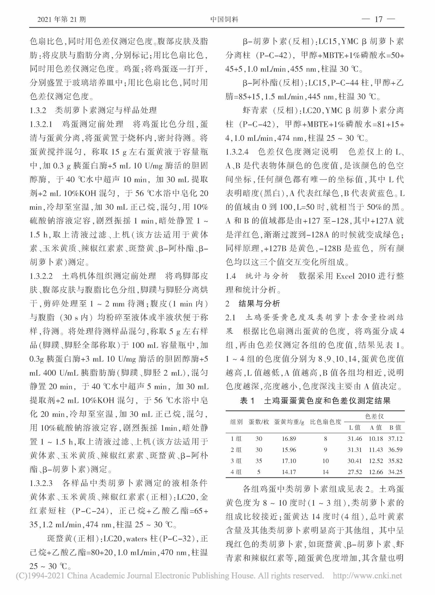 农村散养土鸡机体组织和鸡蛋中类胡萝卜素成分研究