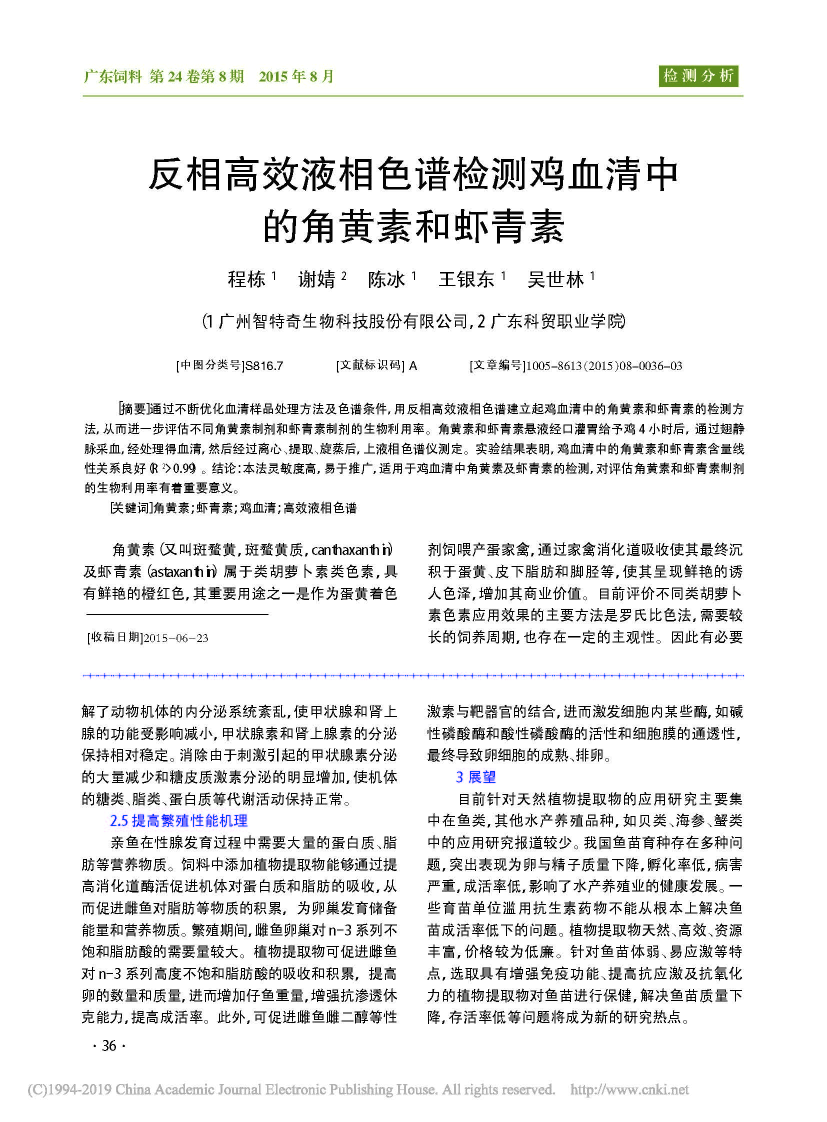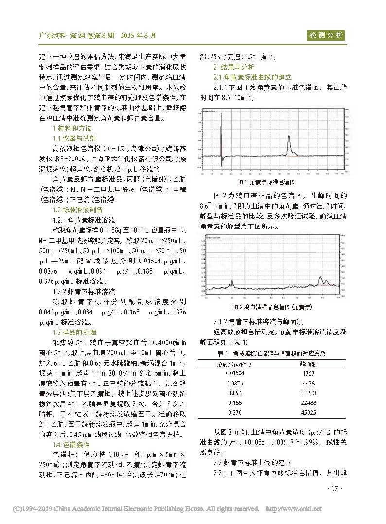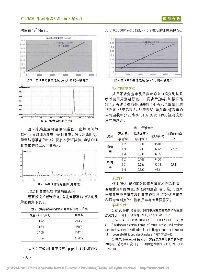 反相高效液相色谱检测鸡血清中的角黄素和虾青素