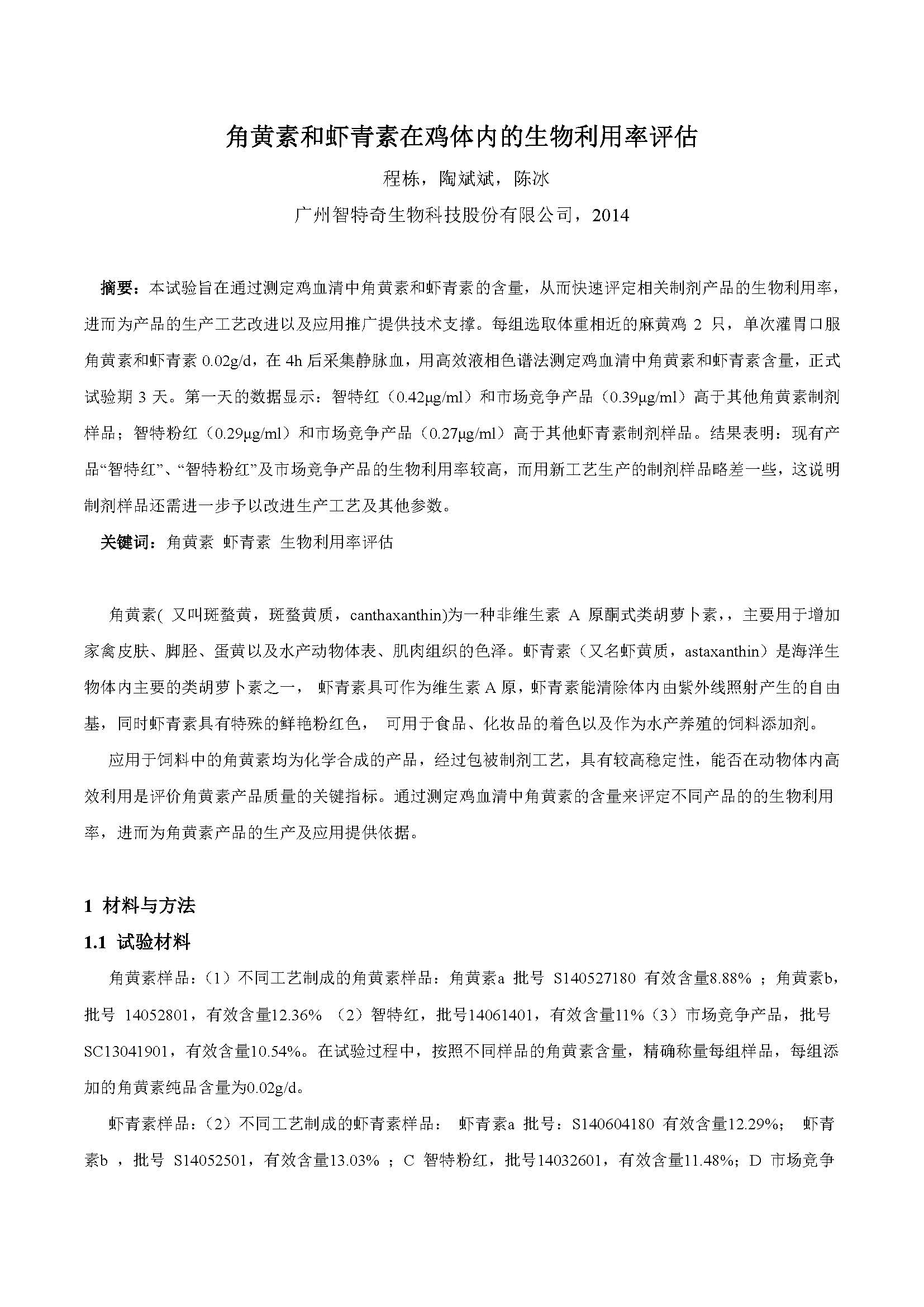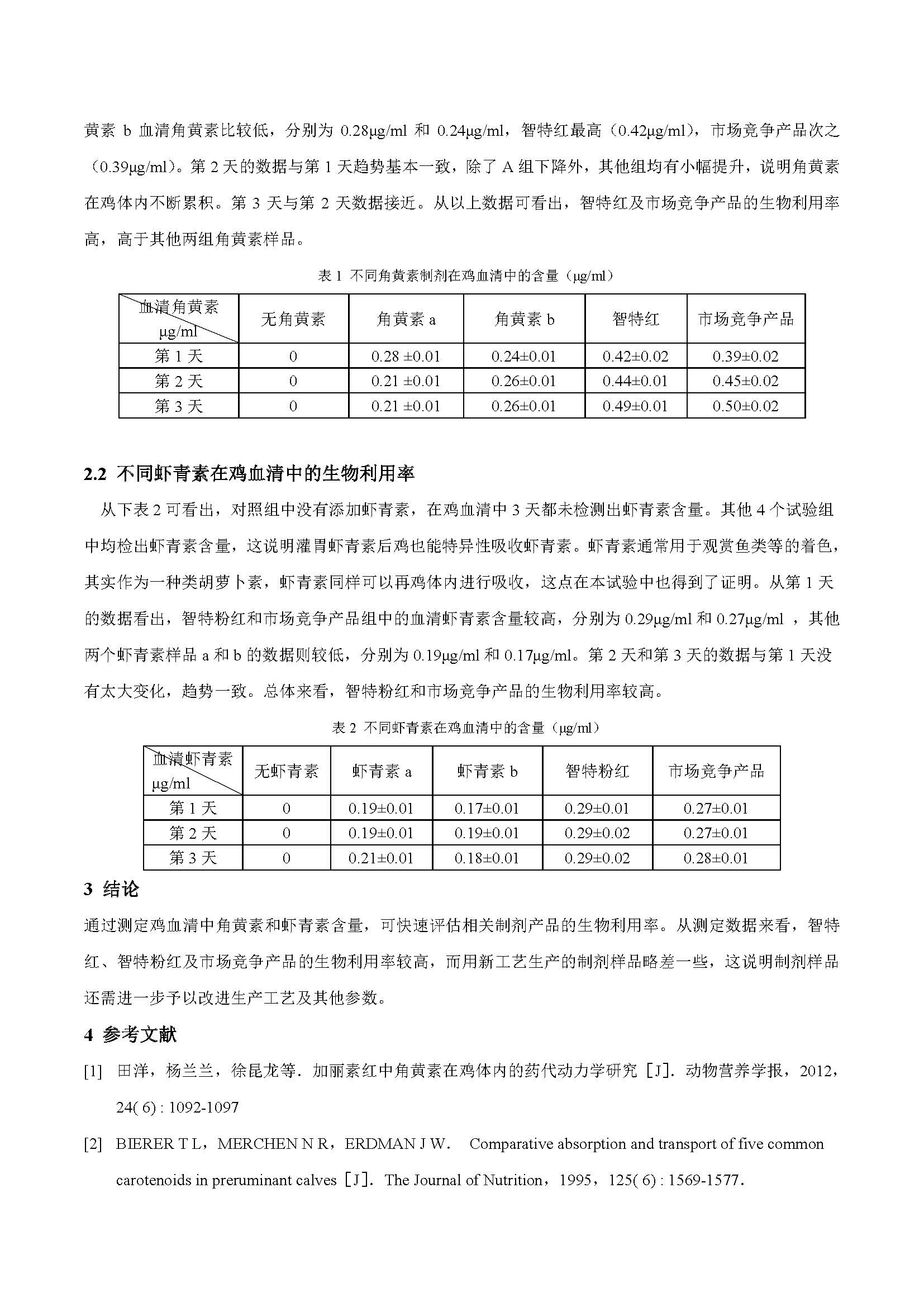 智特红在全价颗粒料中储存不同时间对脱温鸡着色效果的影响