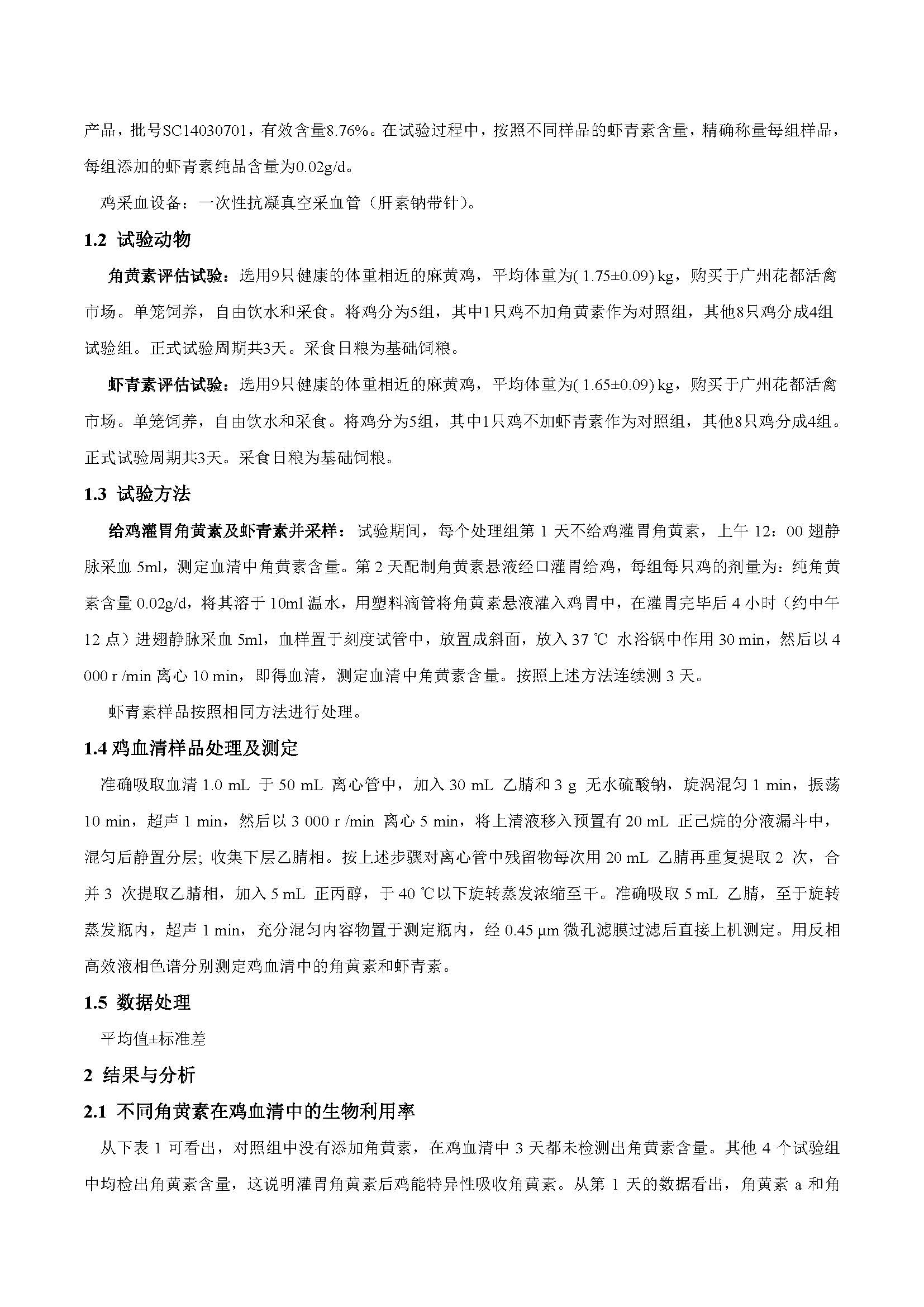 不同来源红色素对蛋黄的着色效果及与蛋鸡血清浓度的相关性研究