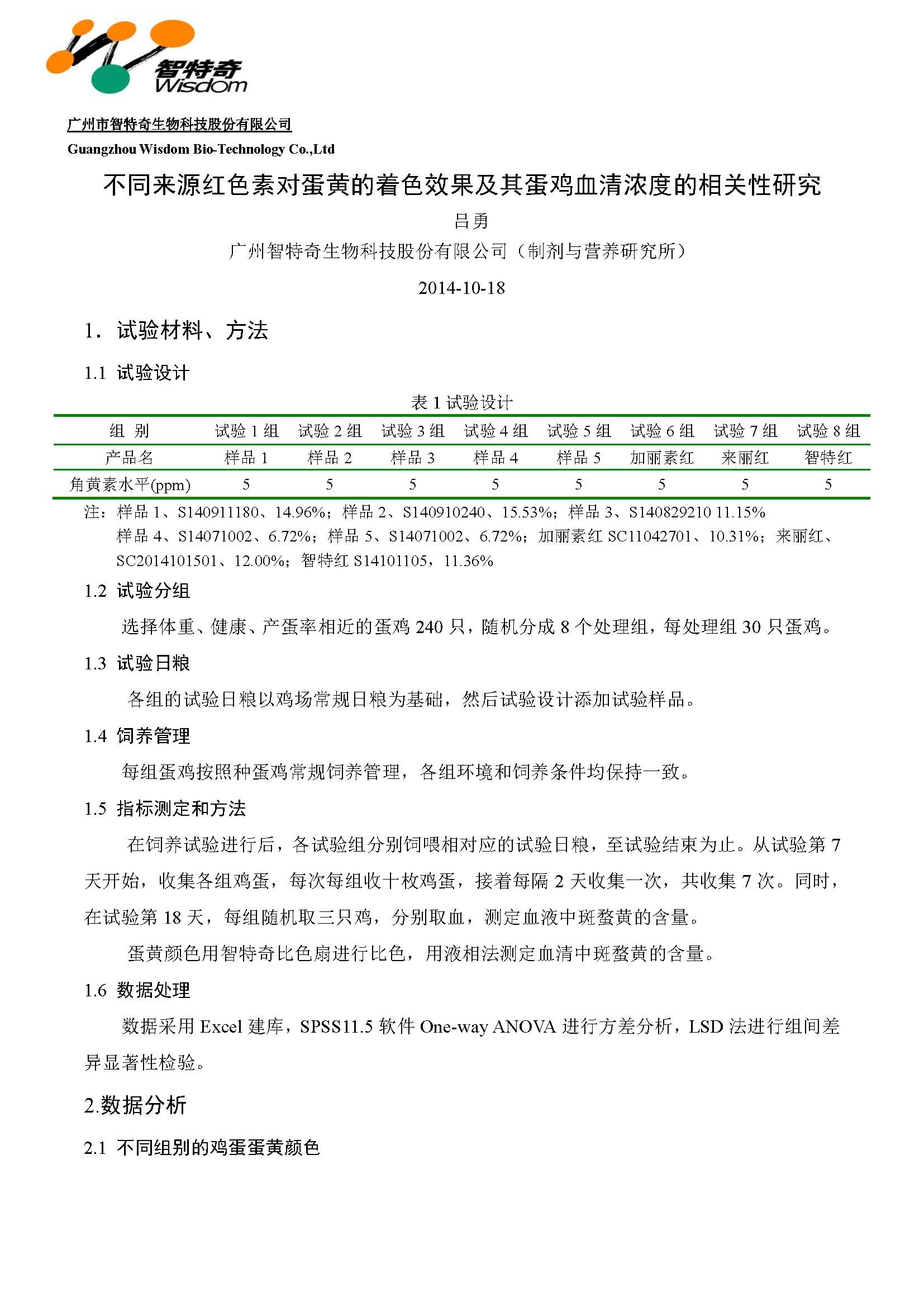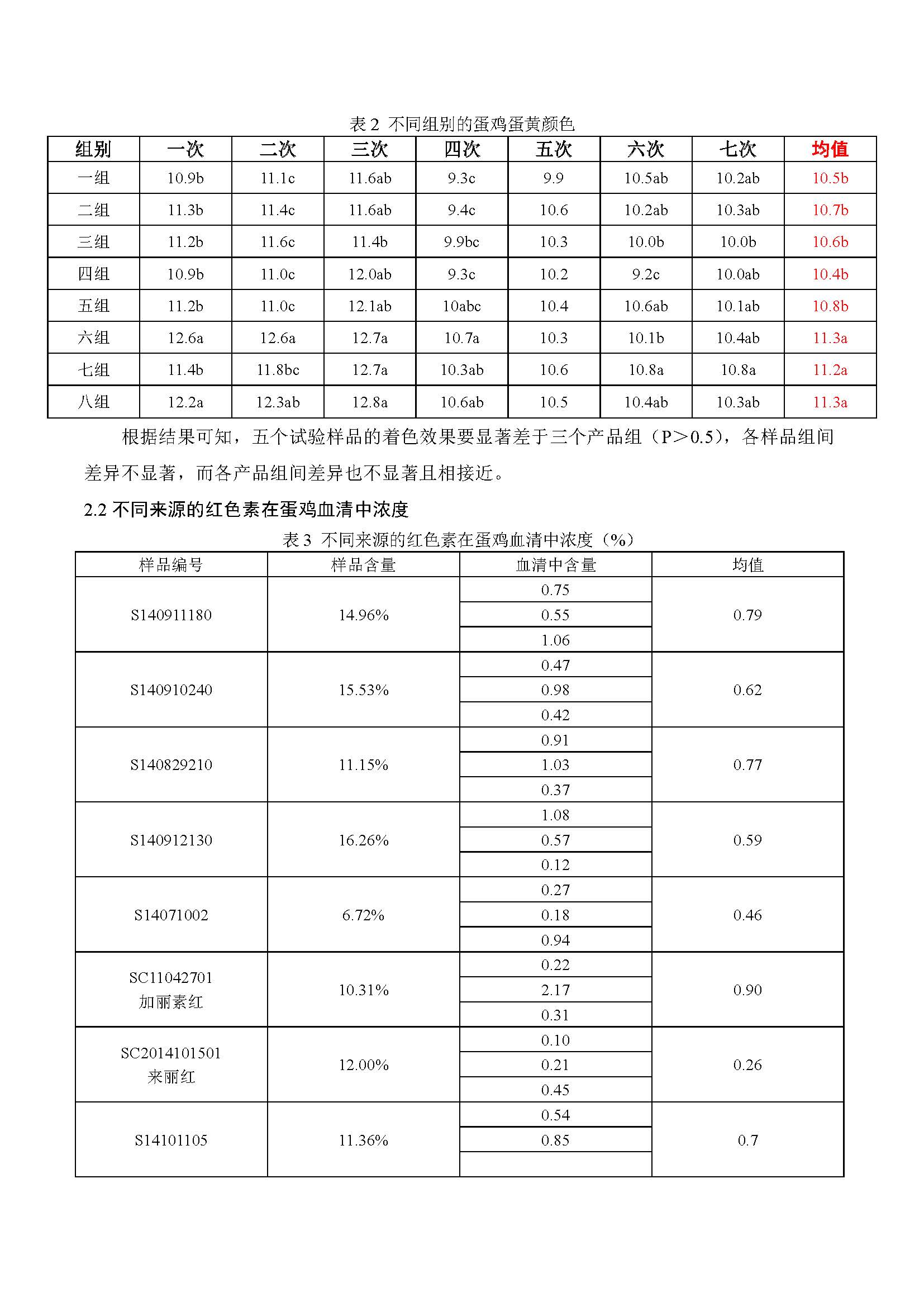 不同来源红色素对蛋黄的着色效果及与蛋鸡血清浓度的相关性研究