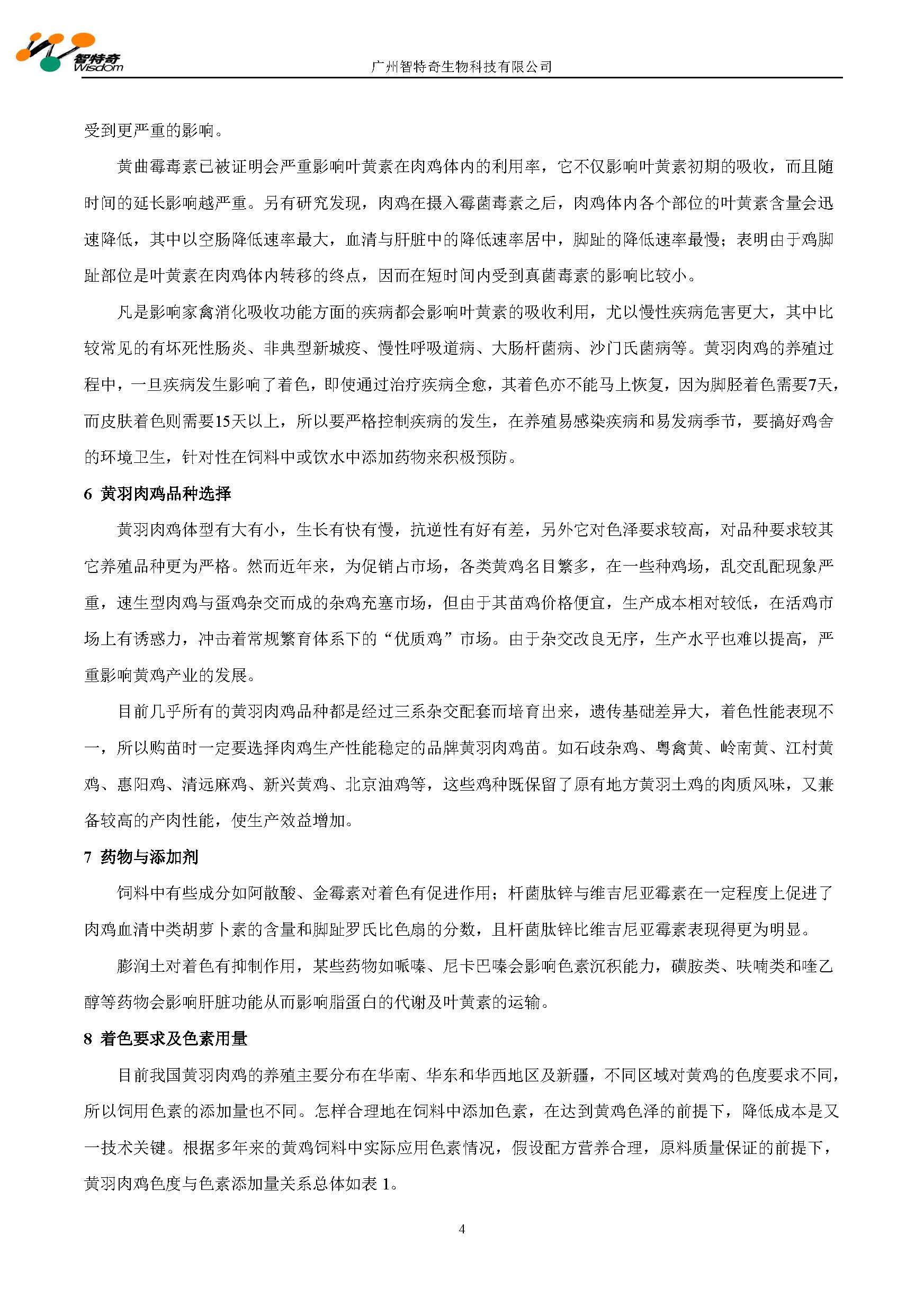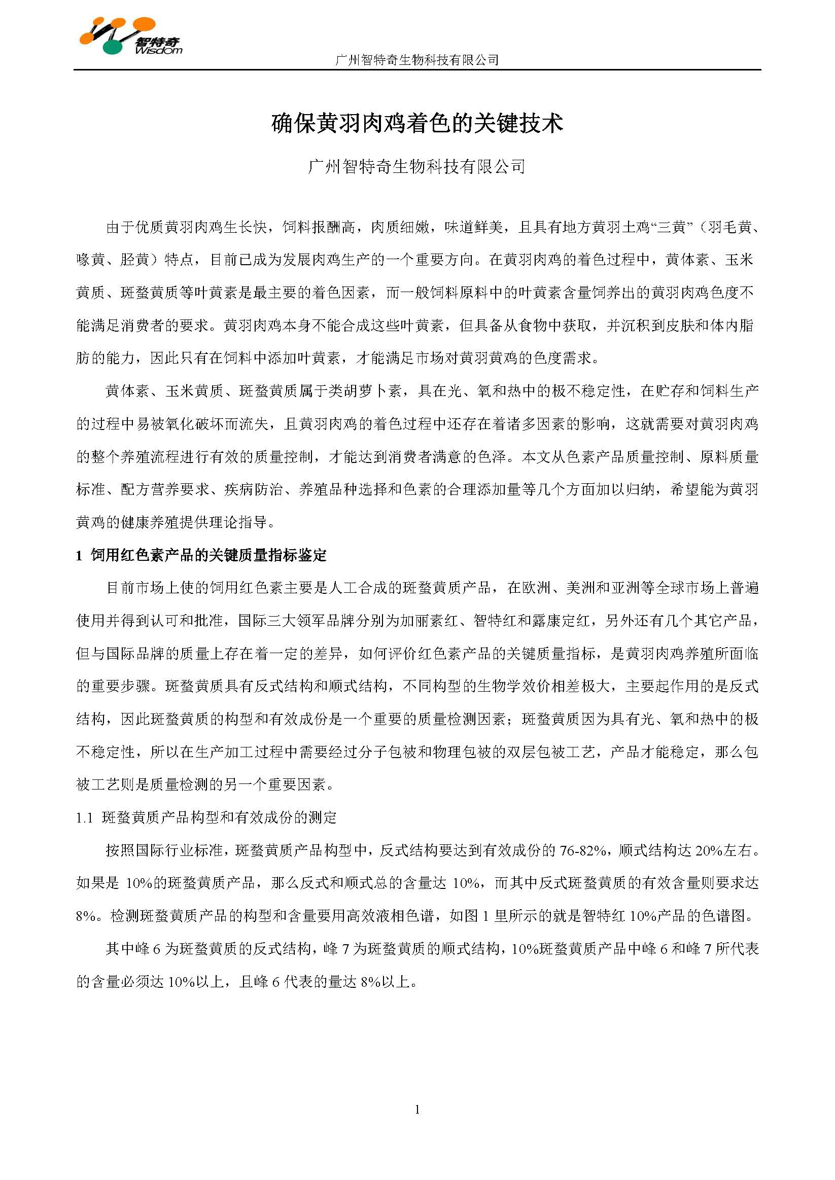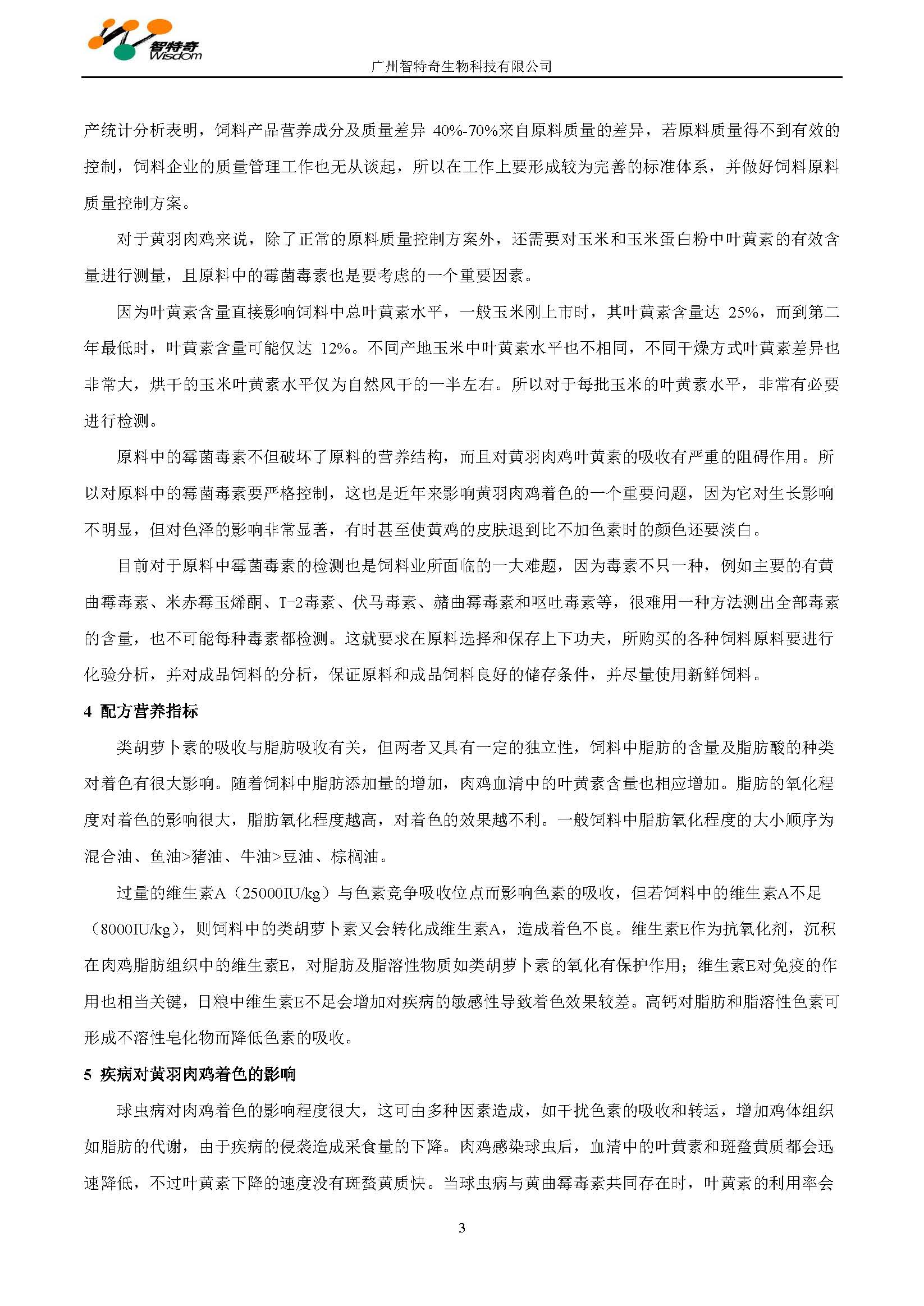 确保黄羽肉鸡着色的关键技术