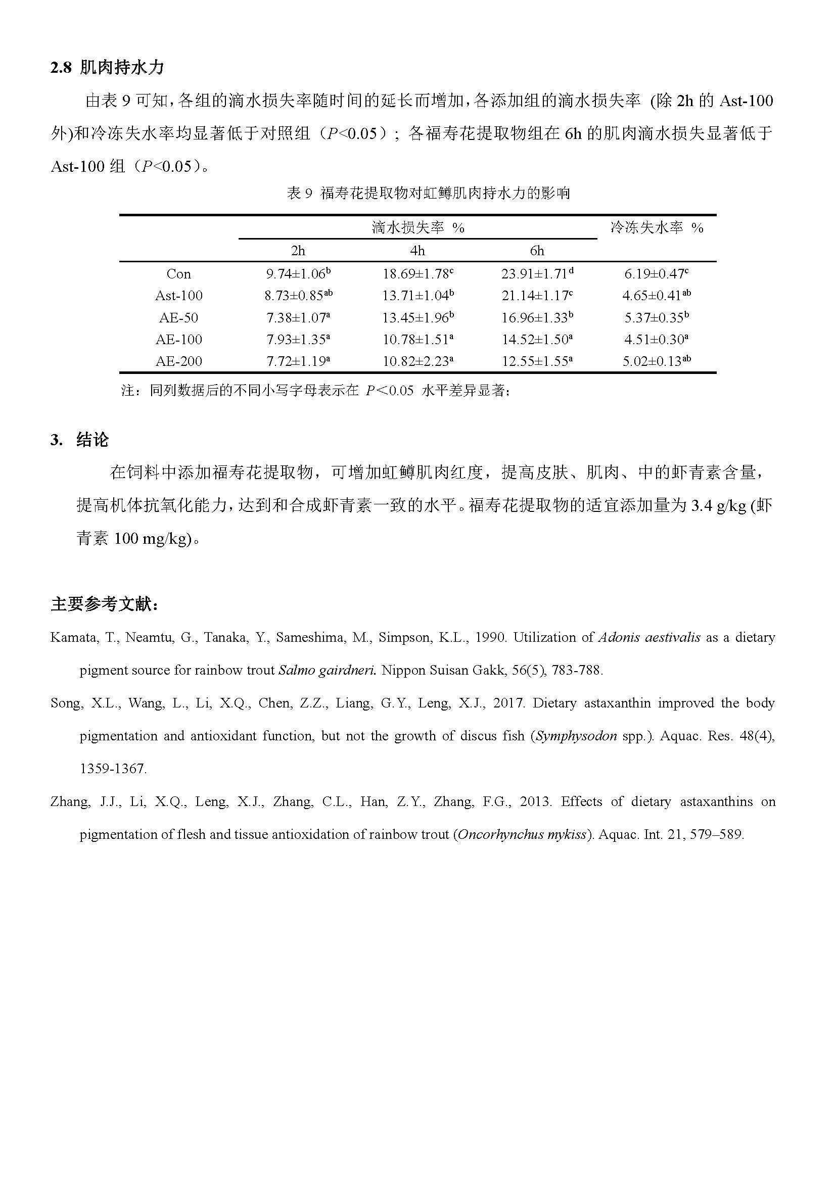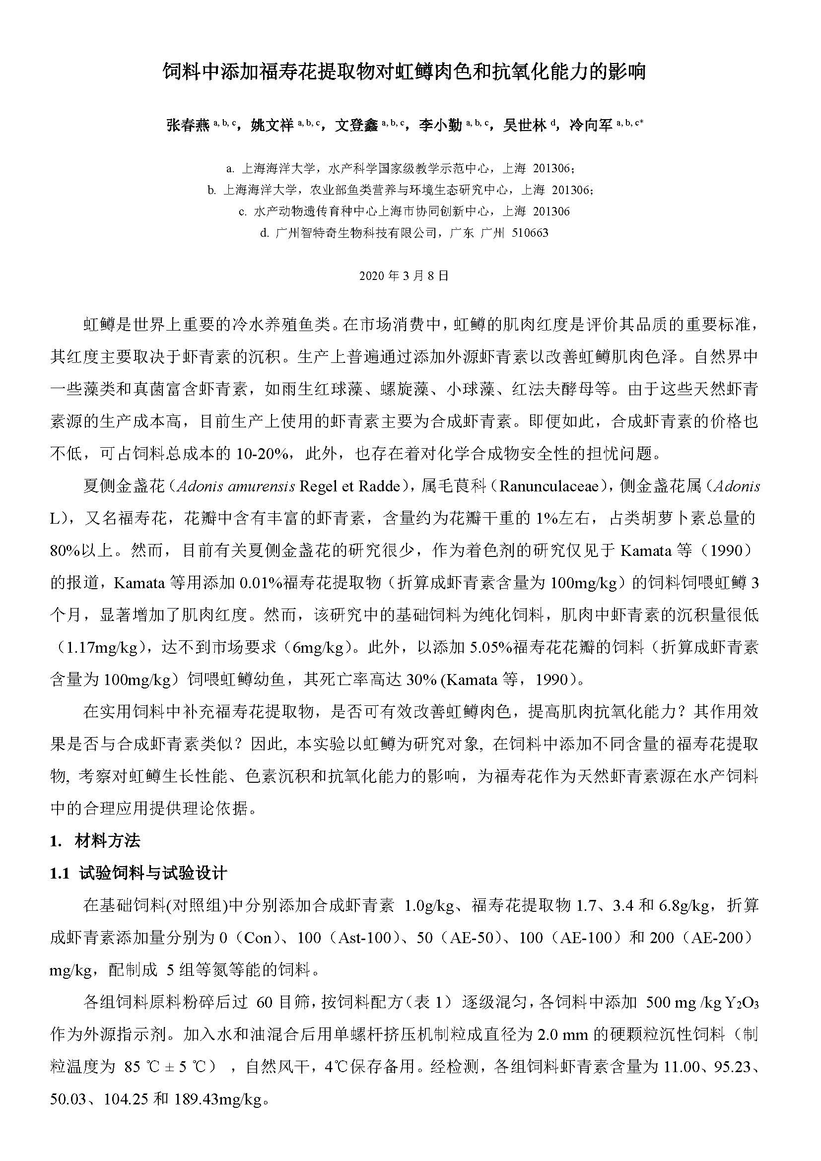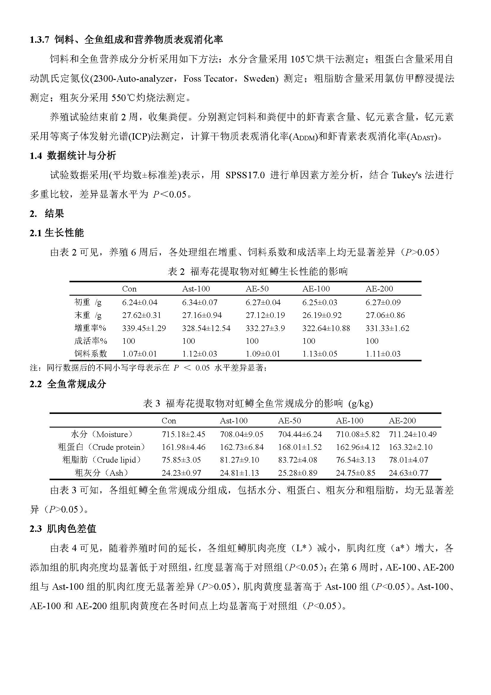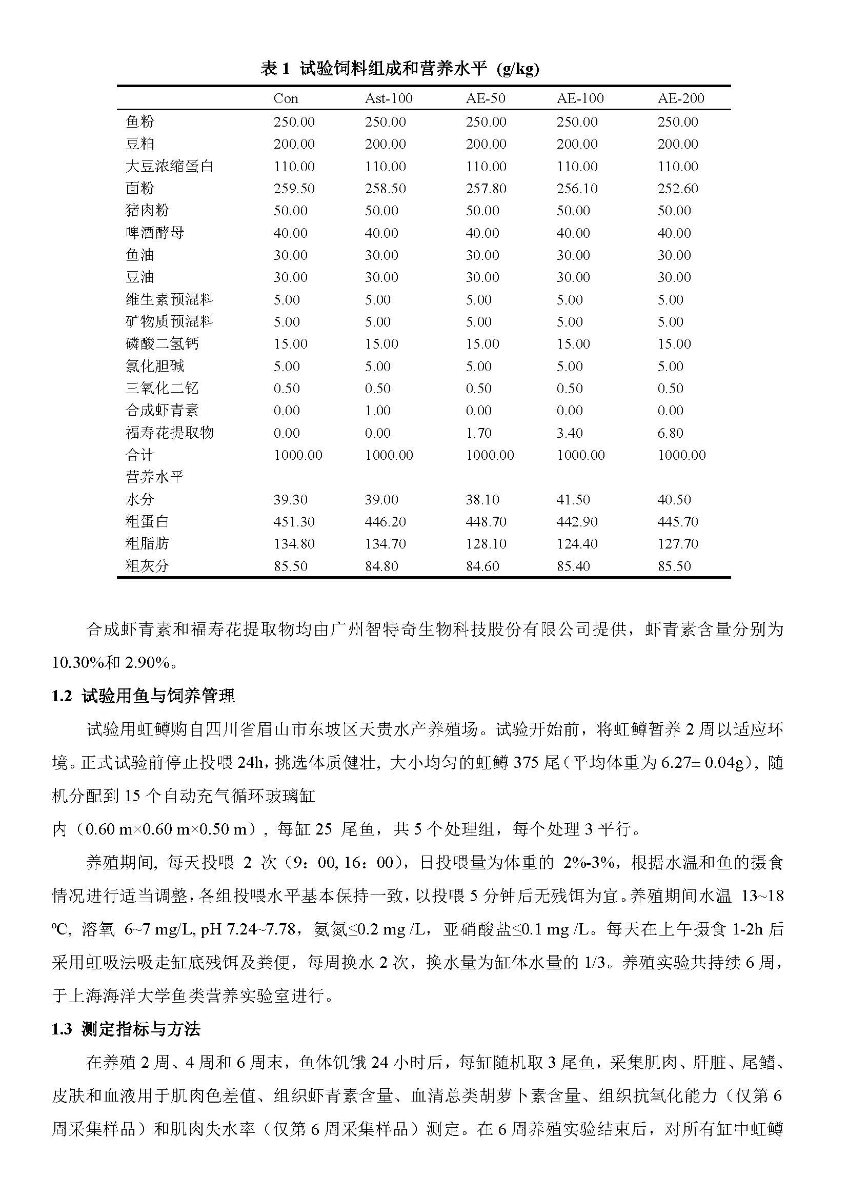 饲料中添加福寿花提取物对虹鳟肉色和抗氧化能力的影响
