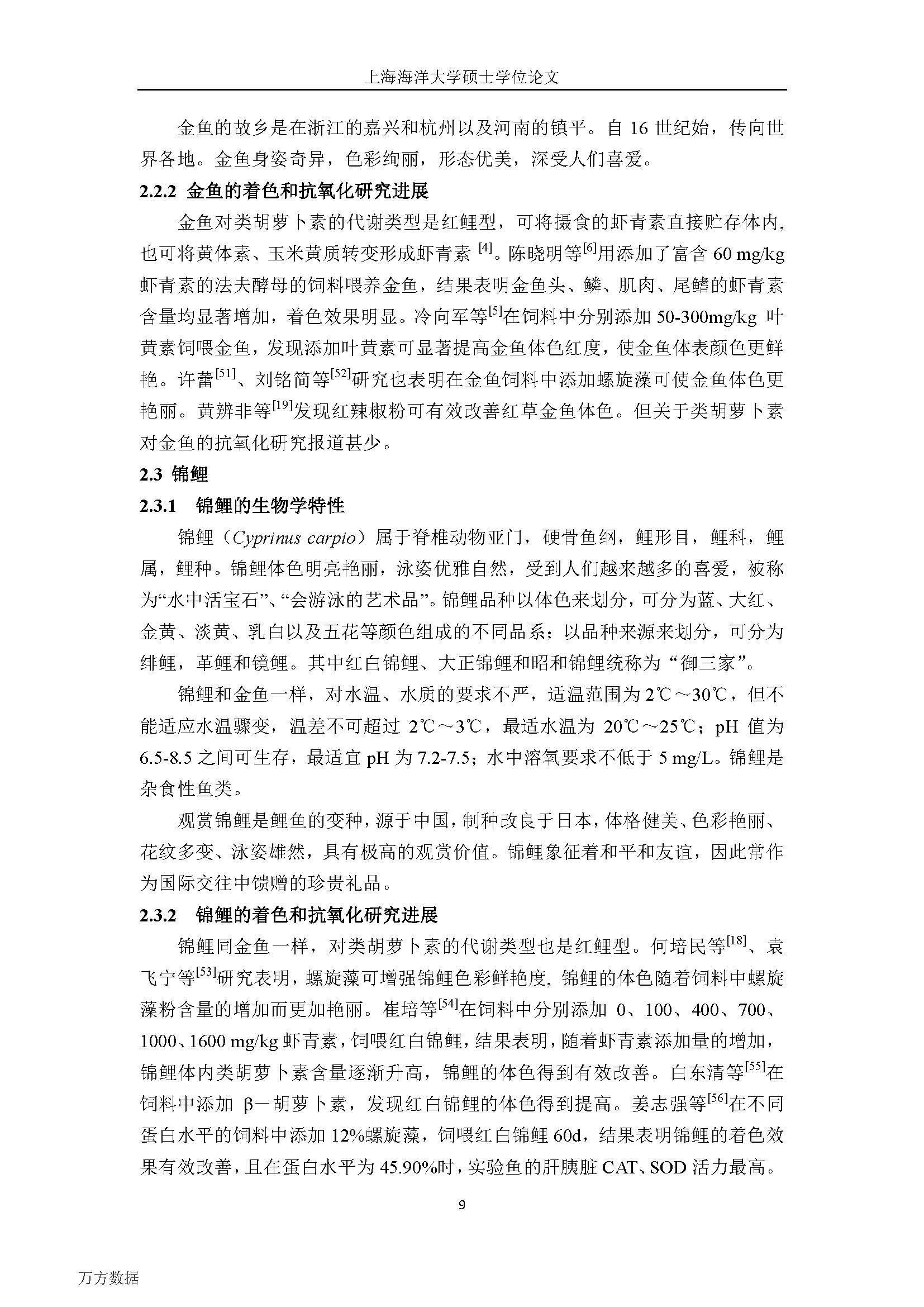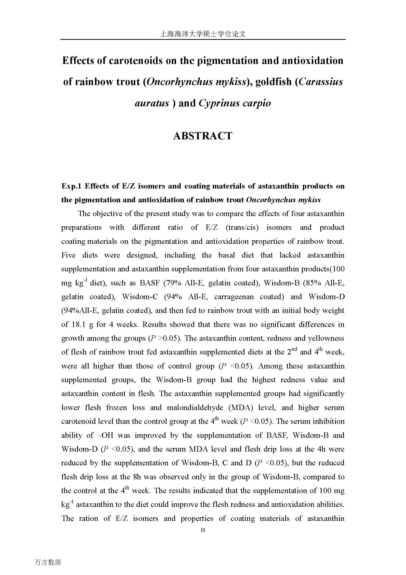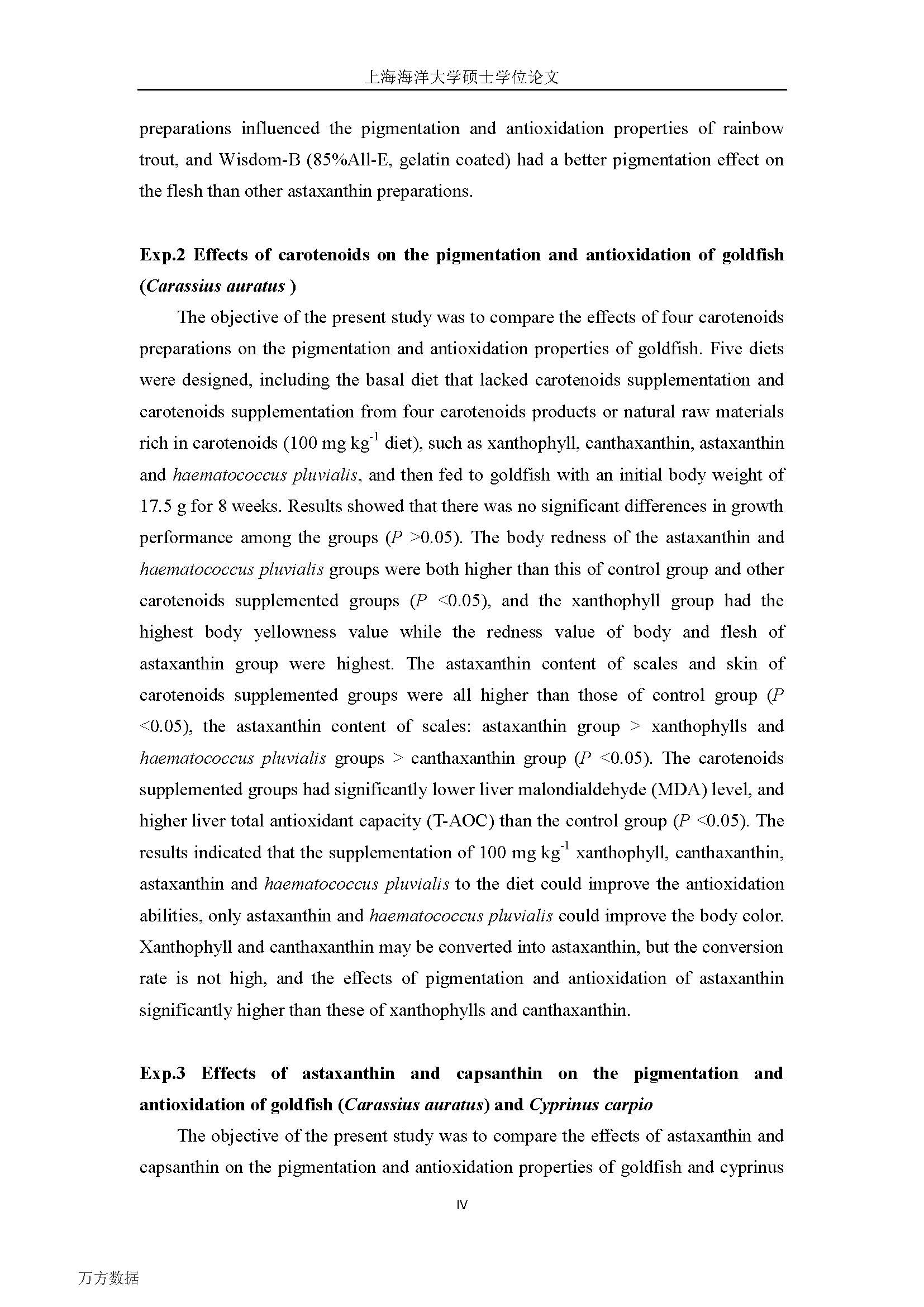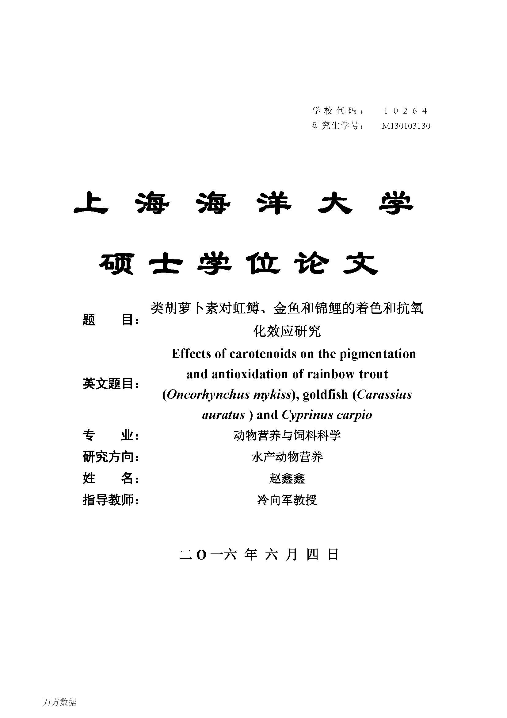 类胡萝卜素对虹鳟、金鱼和锦鲤的着色和抗氧化效应研究