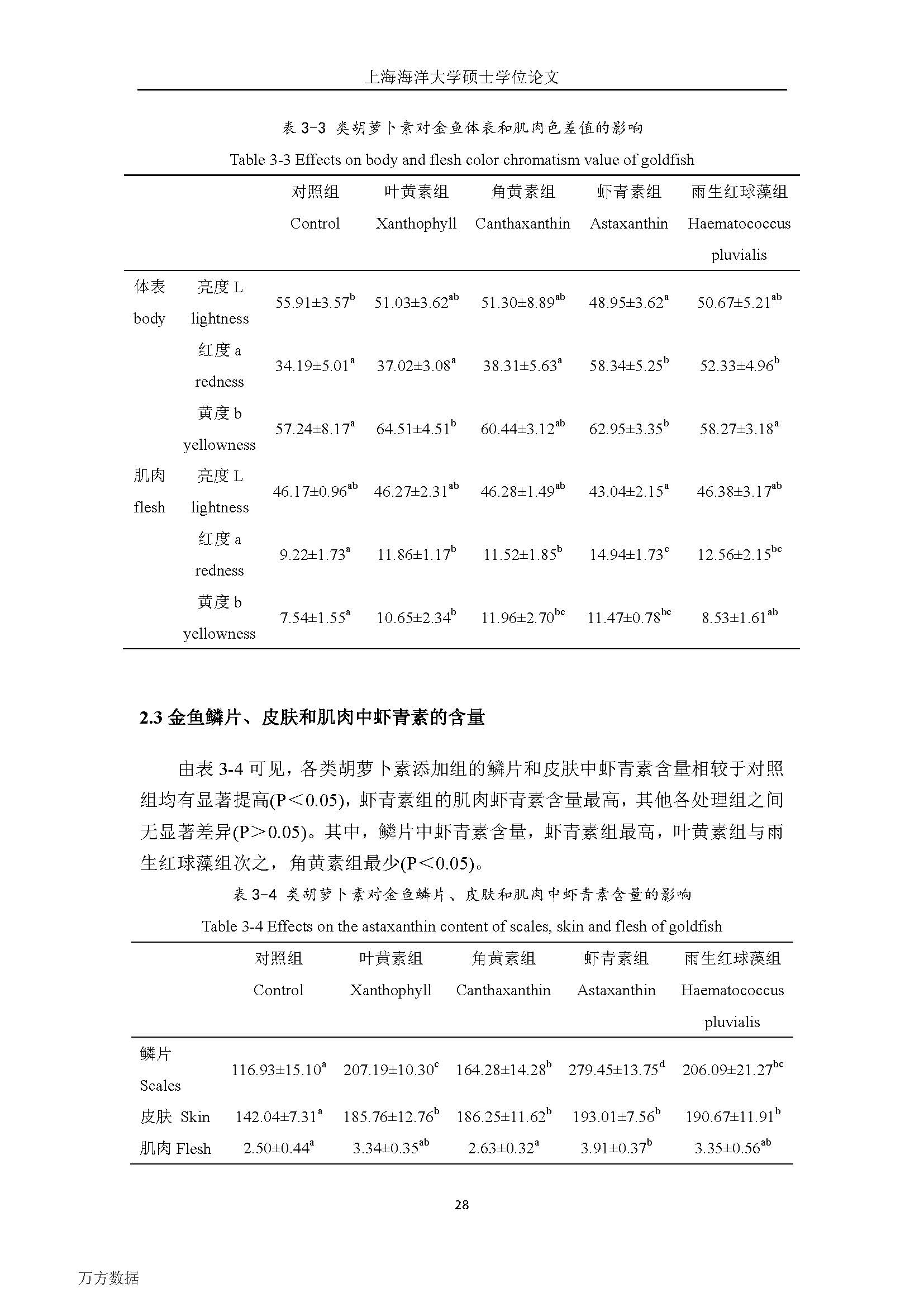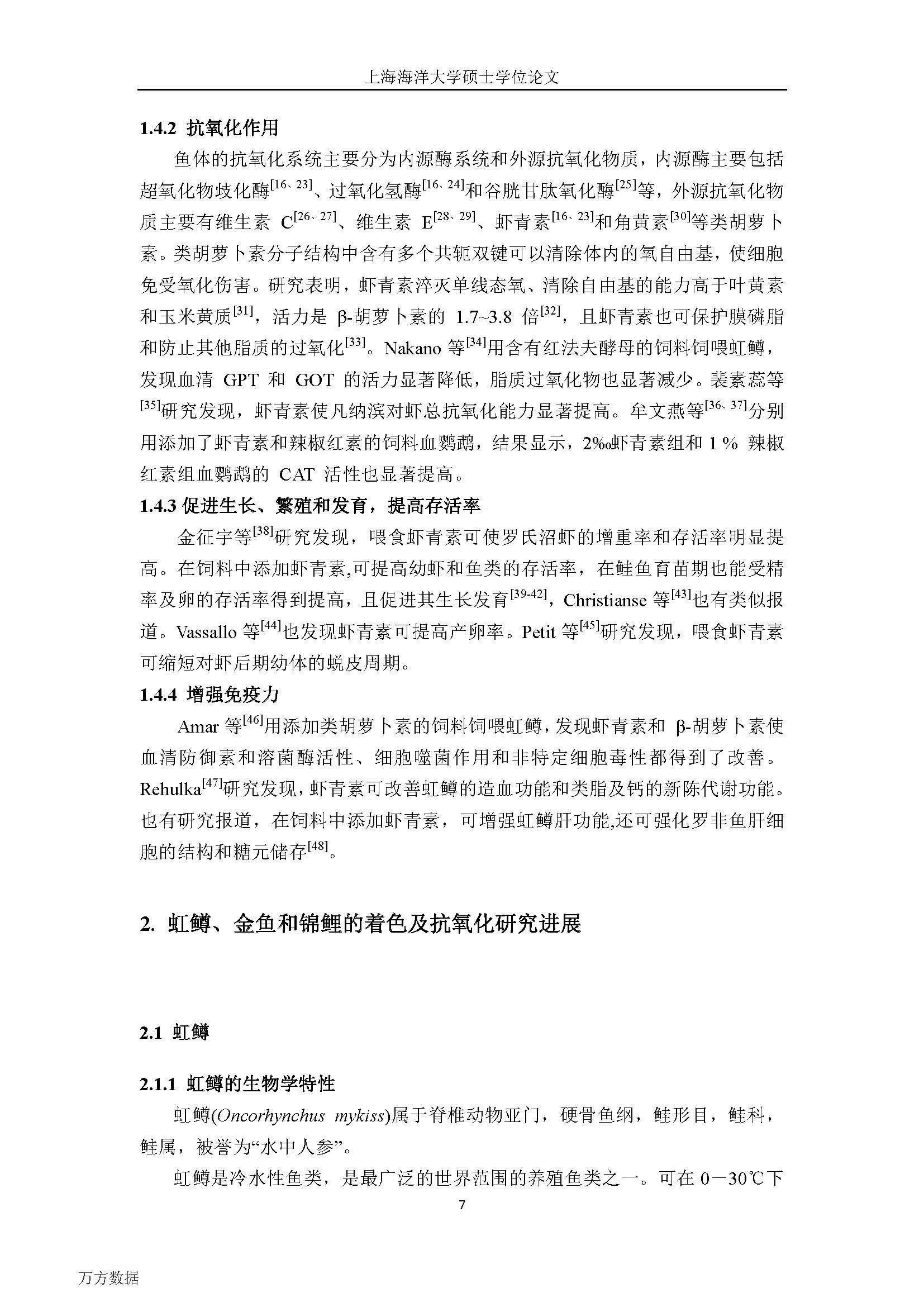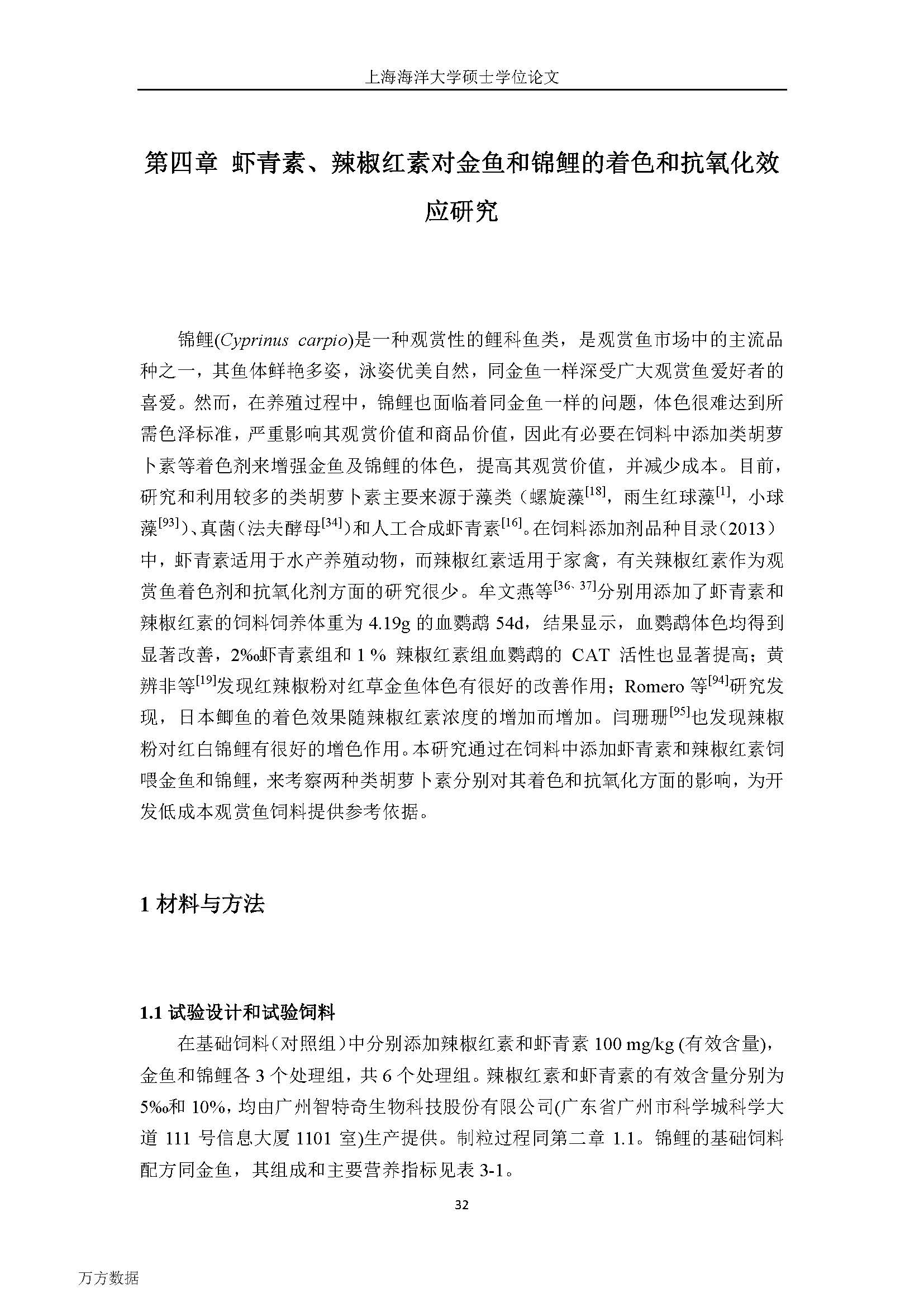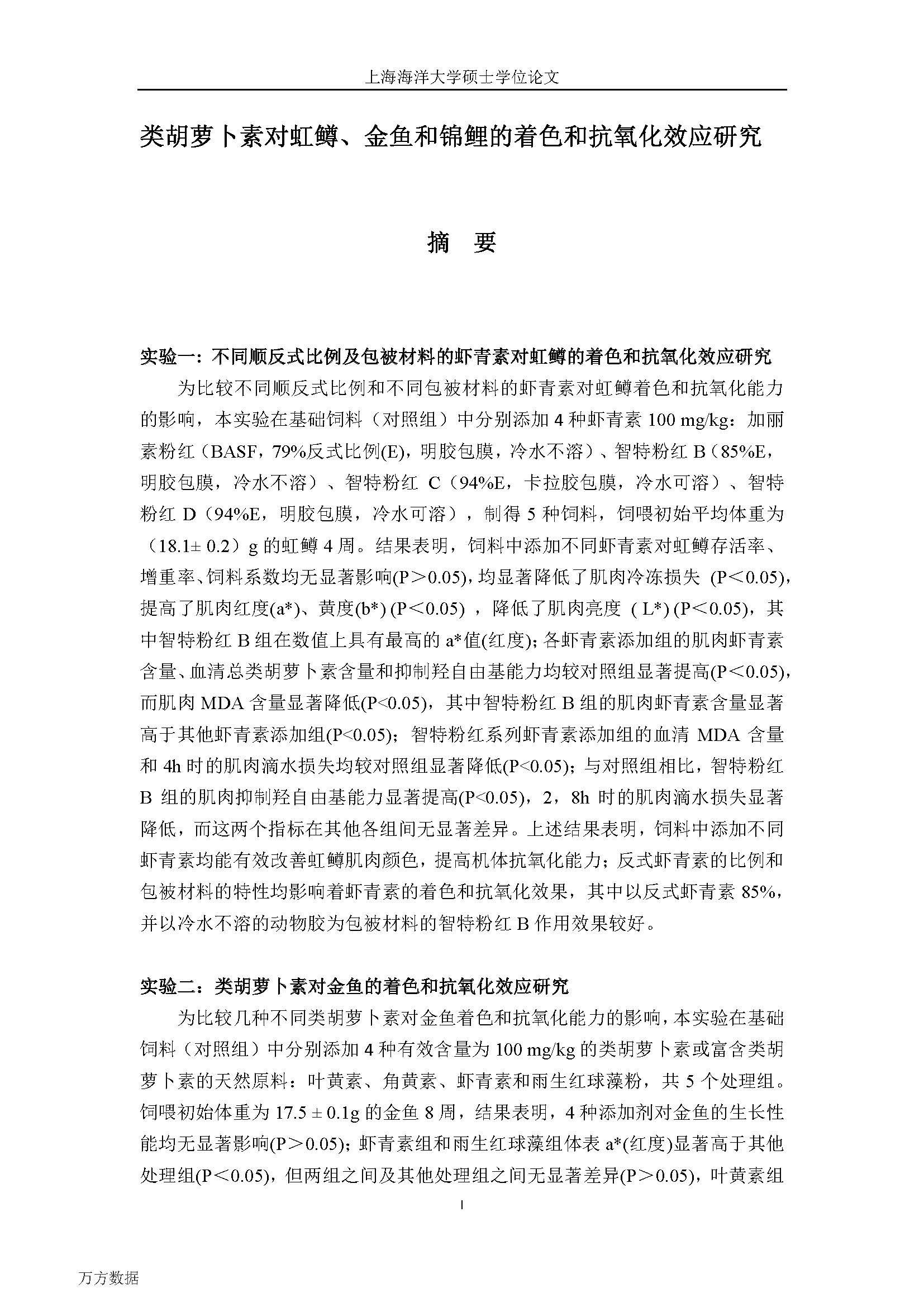 类胡萝卜素对虹鳟、金鱼和锦鲤的着色和抗氧化效应研究