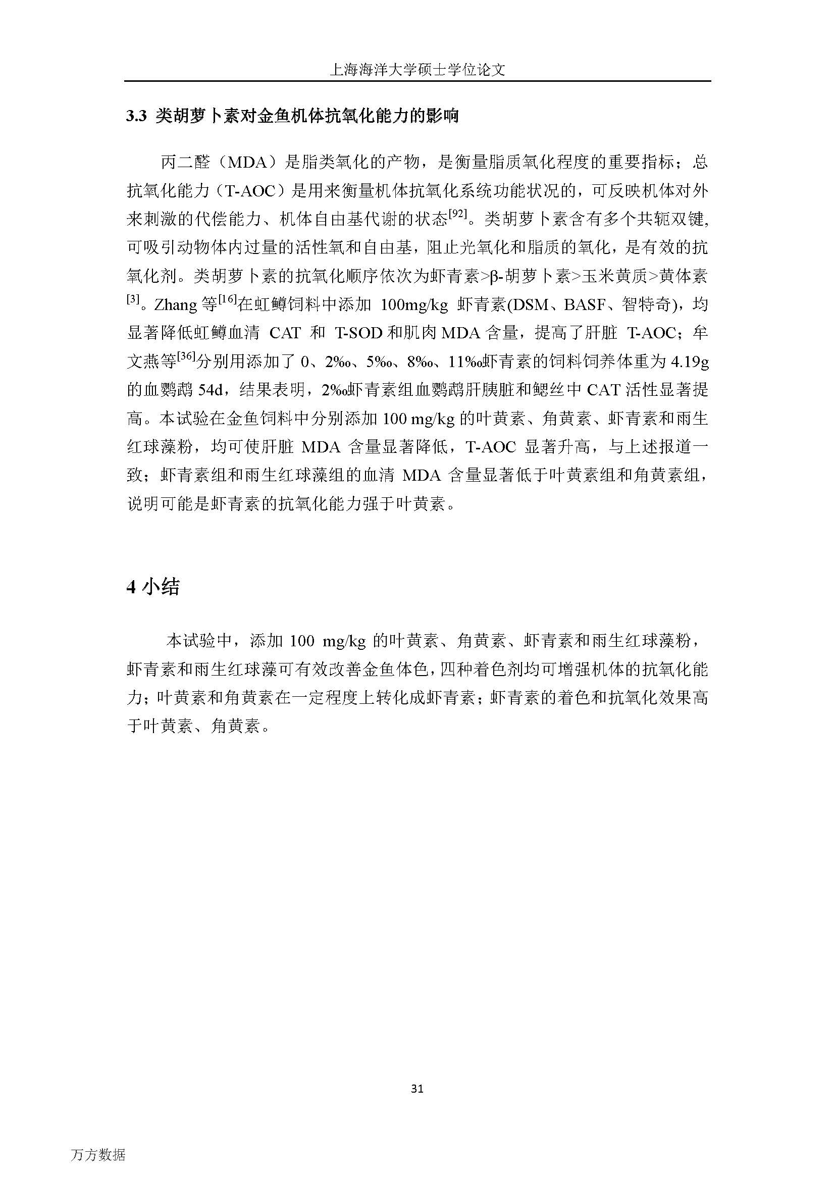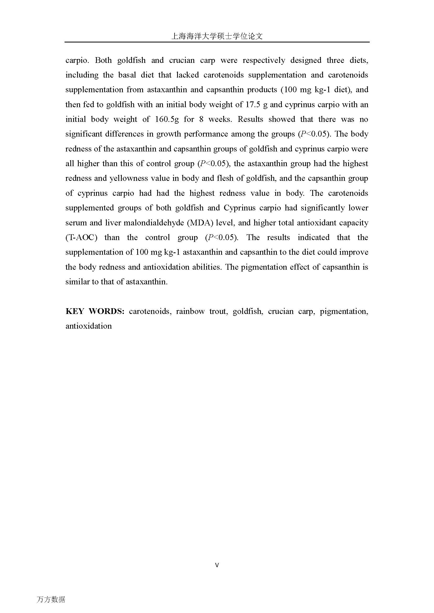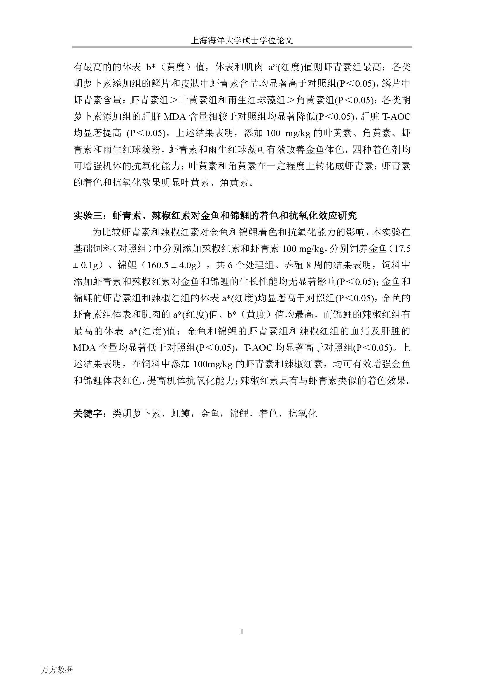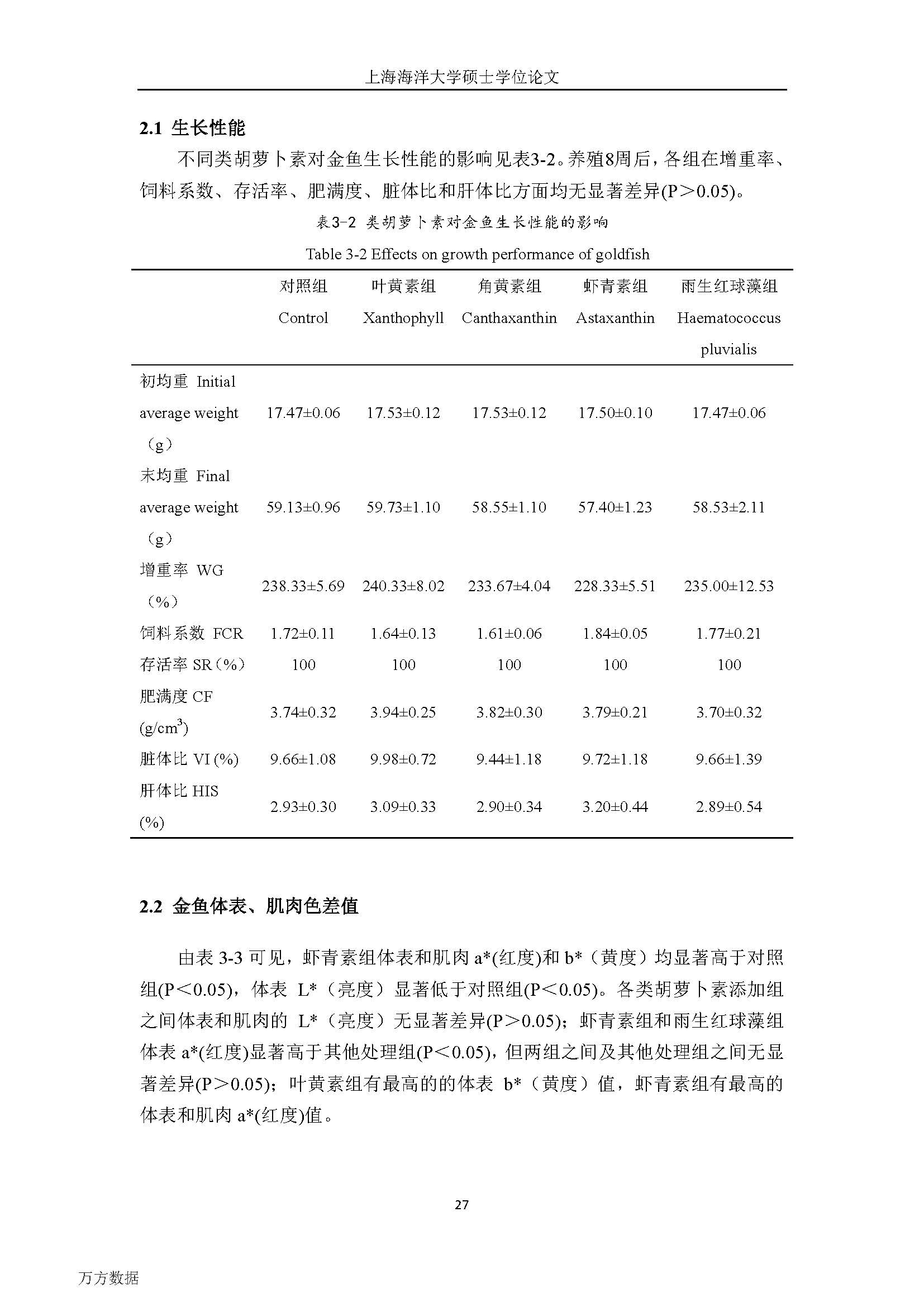 类胡萝卜素对虹鳟、金鱼和锦鲤的着色和抗氧化效应研究