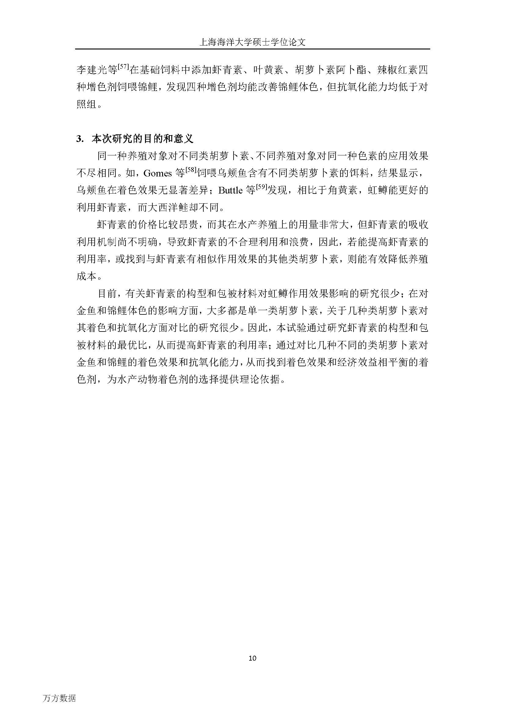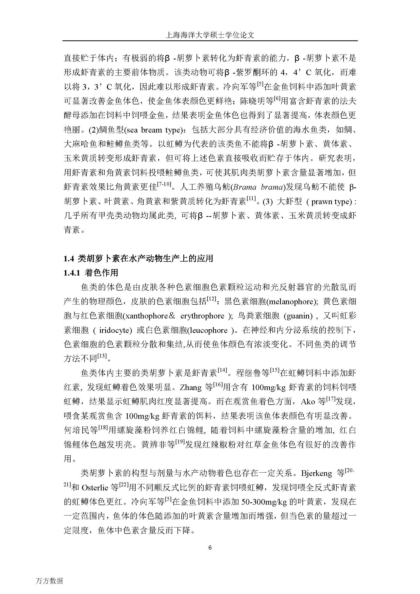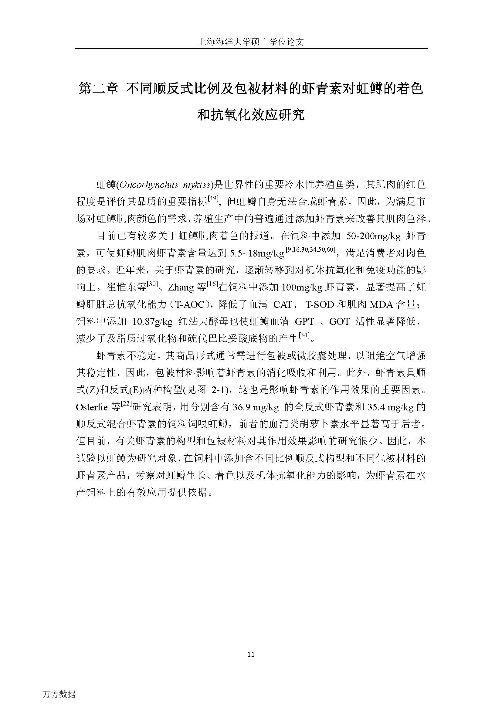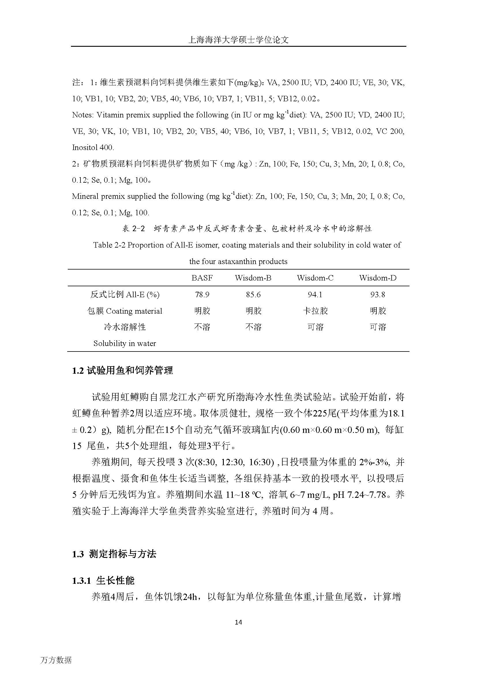 类胡萝卜素对虹鳟、金鱼和锦鲤的着色和抗氧化效应研究