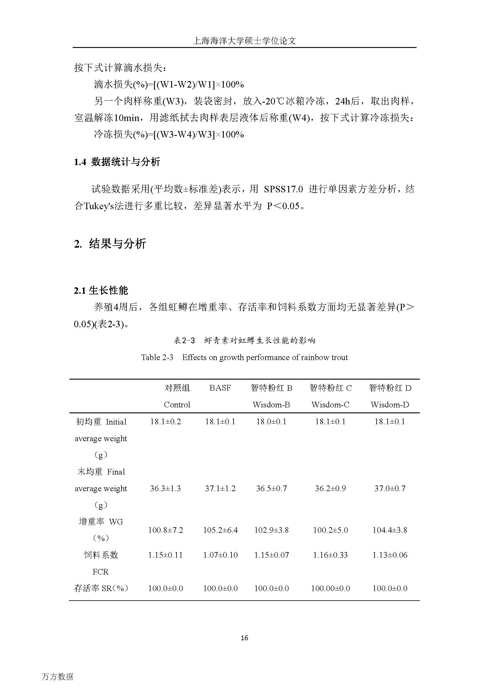 饲料中添加福寿花提取物对虹鳟肉色和抗氧化能力的影响