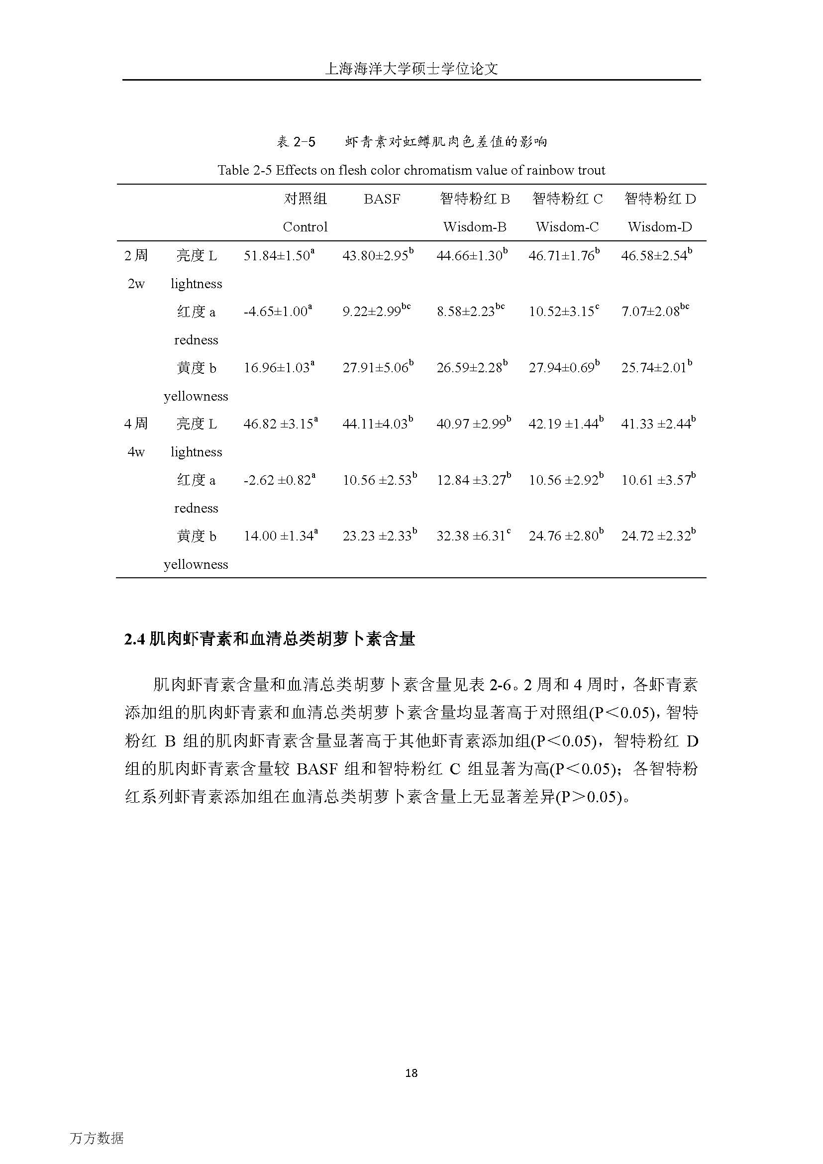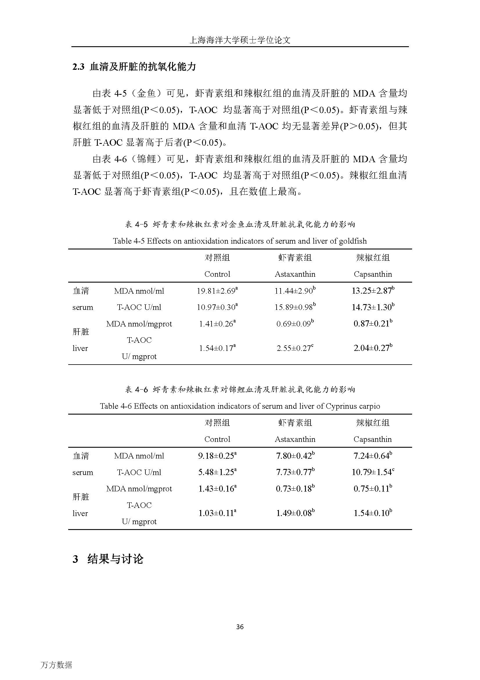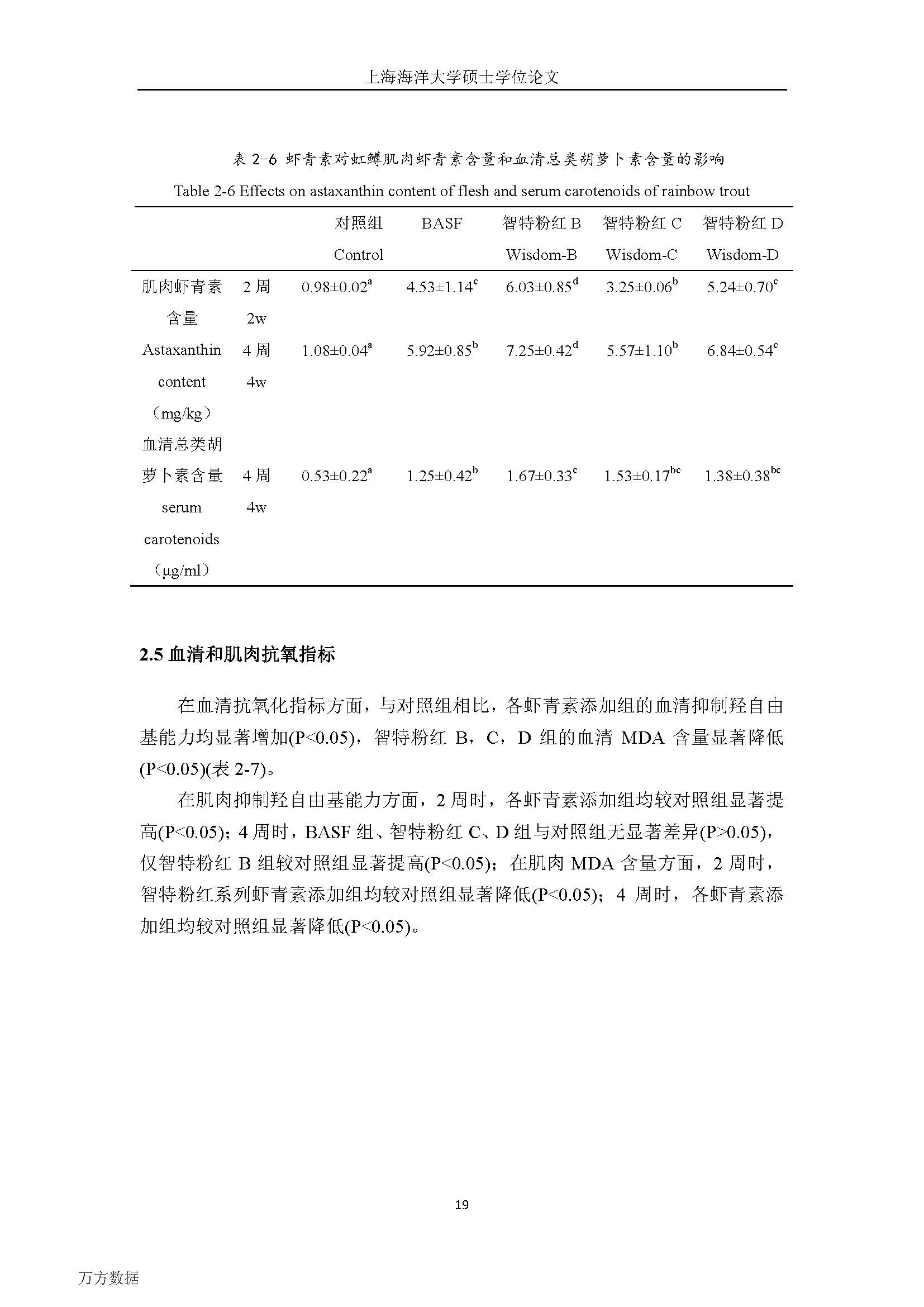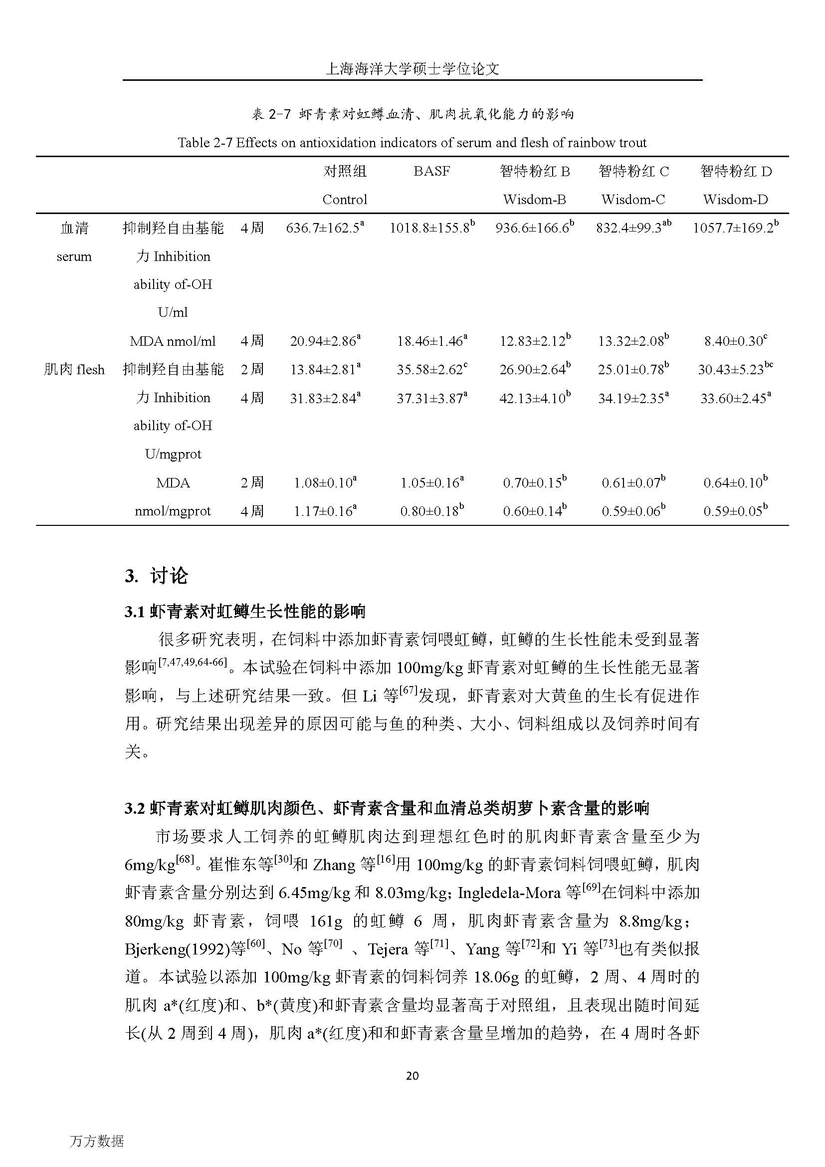 虾青素和角黄素对虹蹲肌肉着色和肝脏总抗氧化能力的影晌