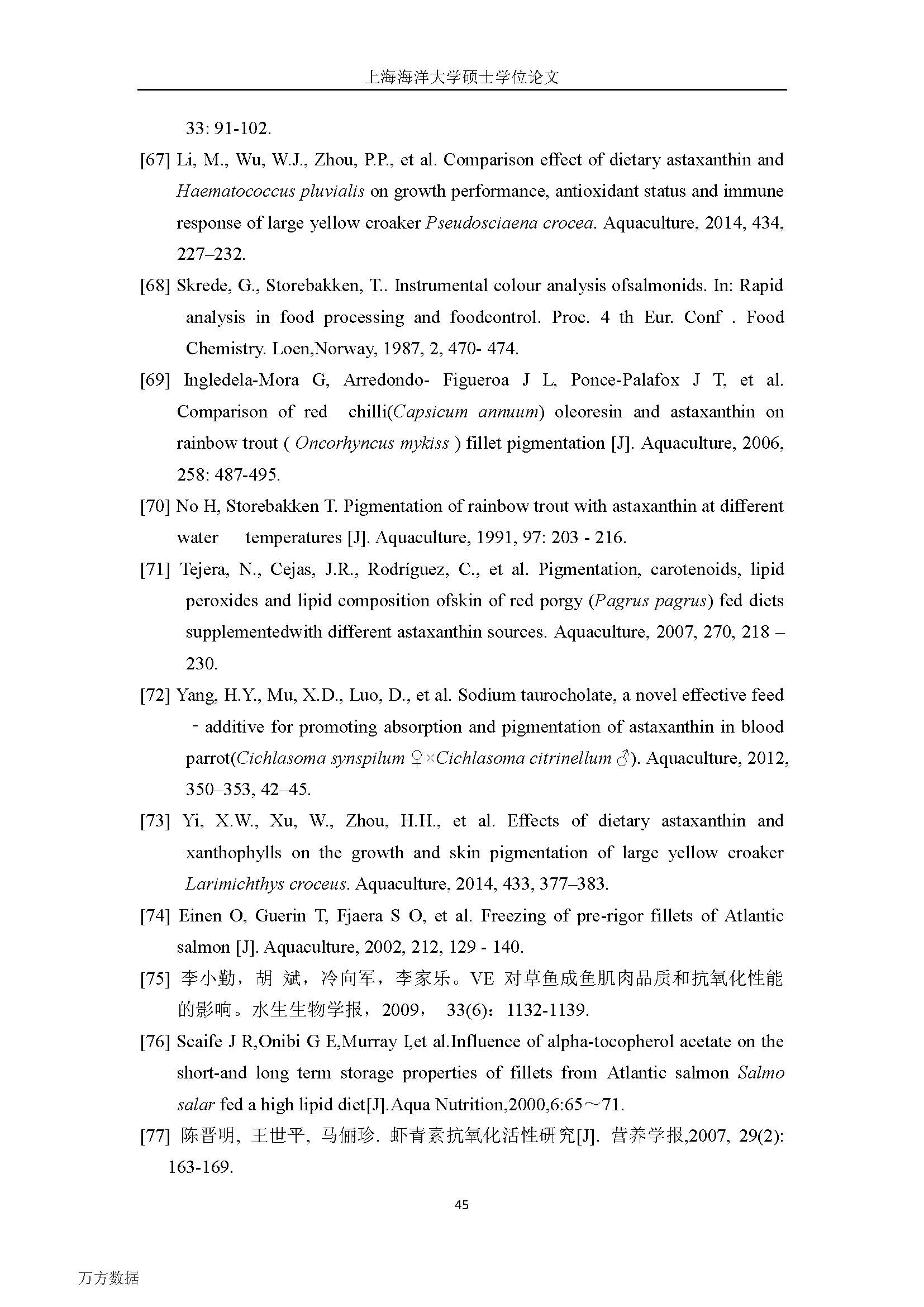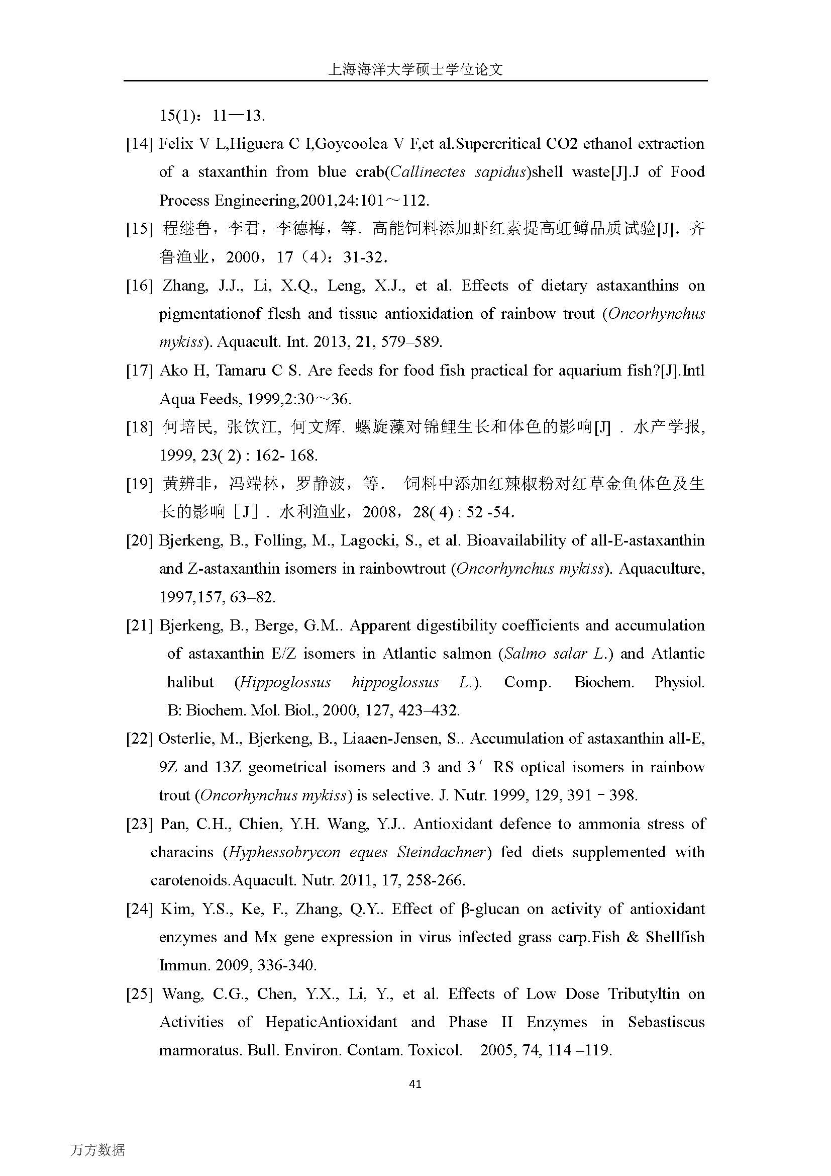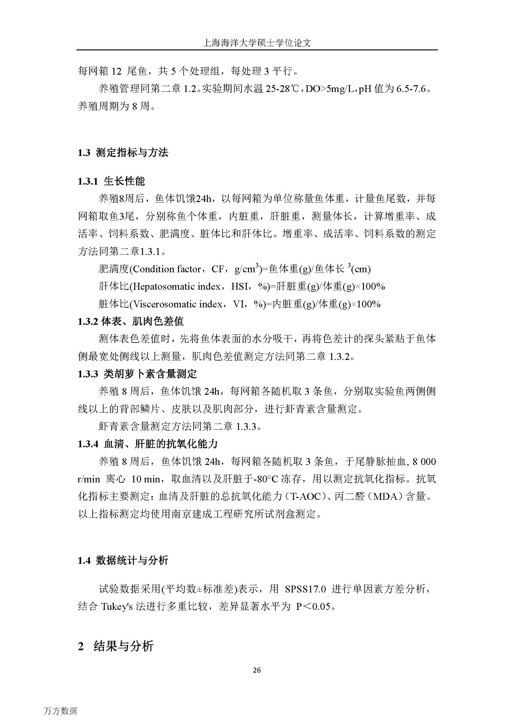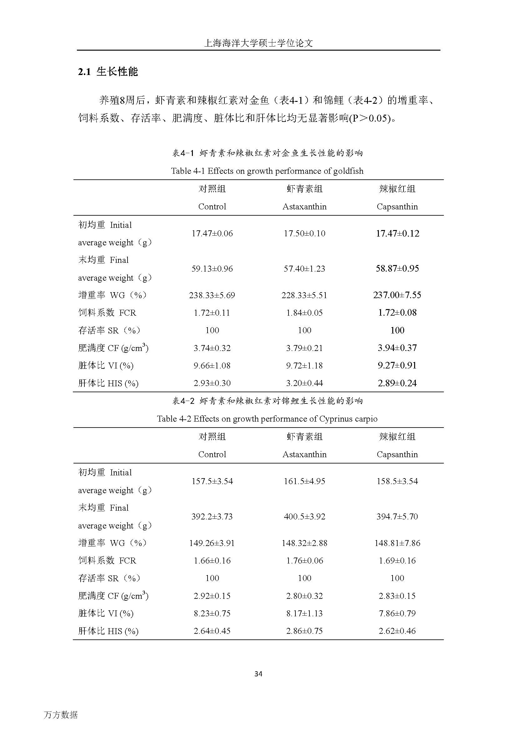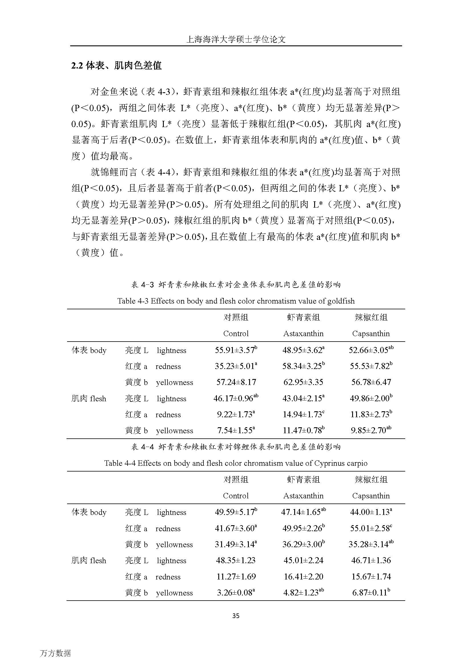 虾青素和角黄素对虹蹲肌肉着色和肝脏总抗氧化能力的影晌